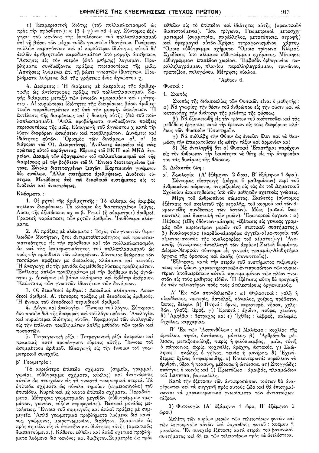 Δ. 651 Περί του ωρολογίου και αναλυτικού προγράμματος της Α' τάξεως του Γυμνασίου της πρώτης βαθμίδος