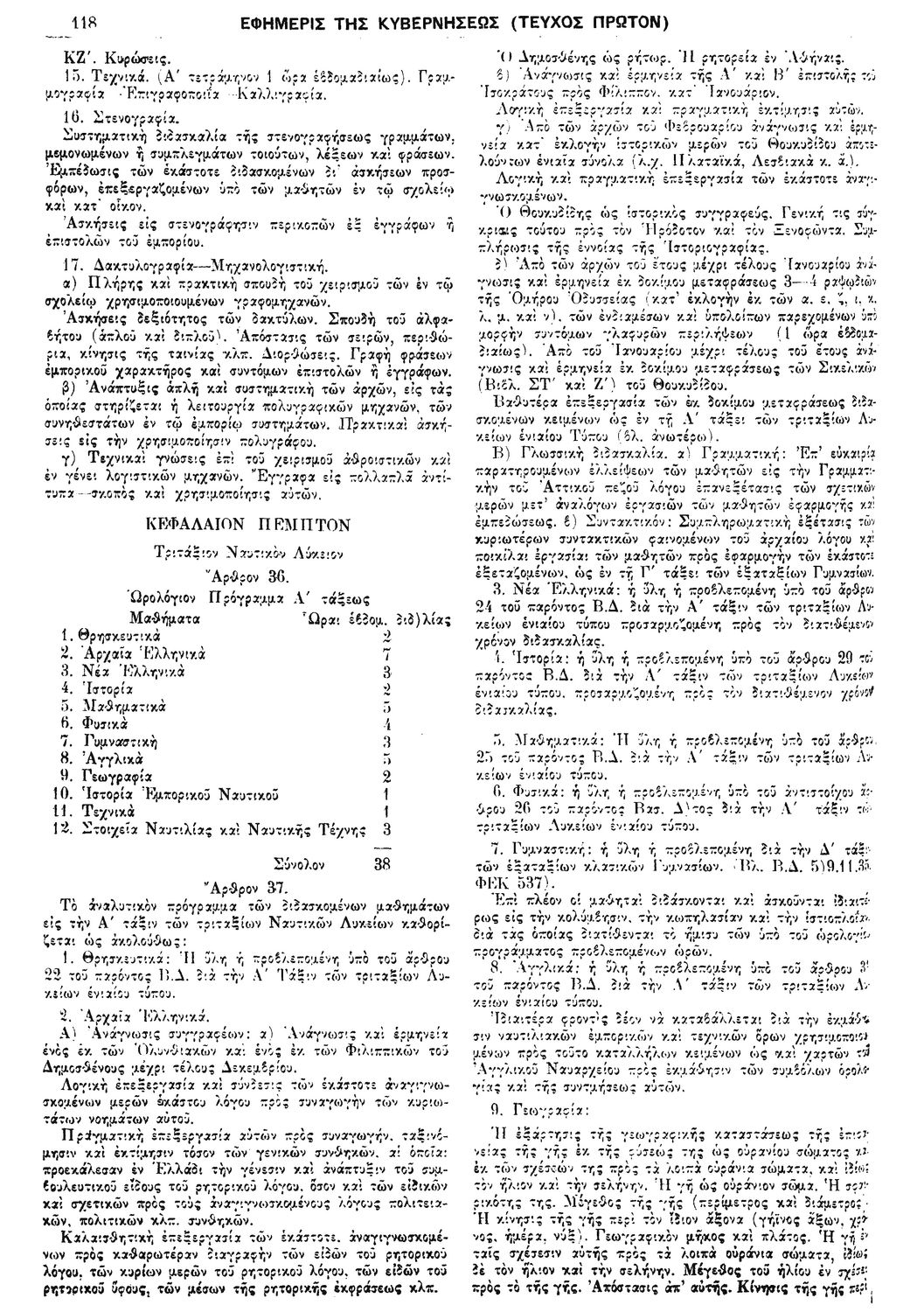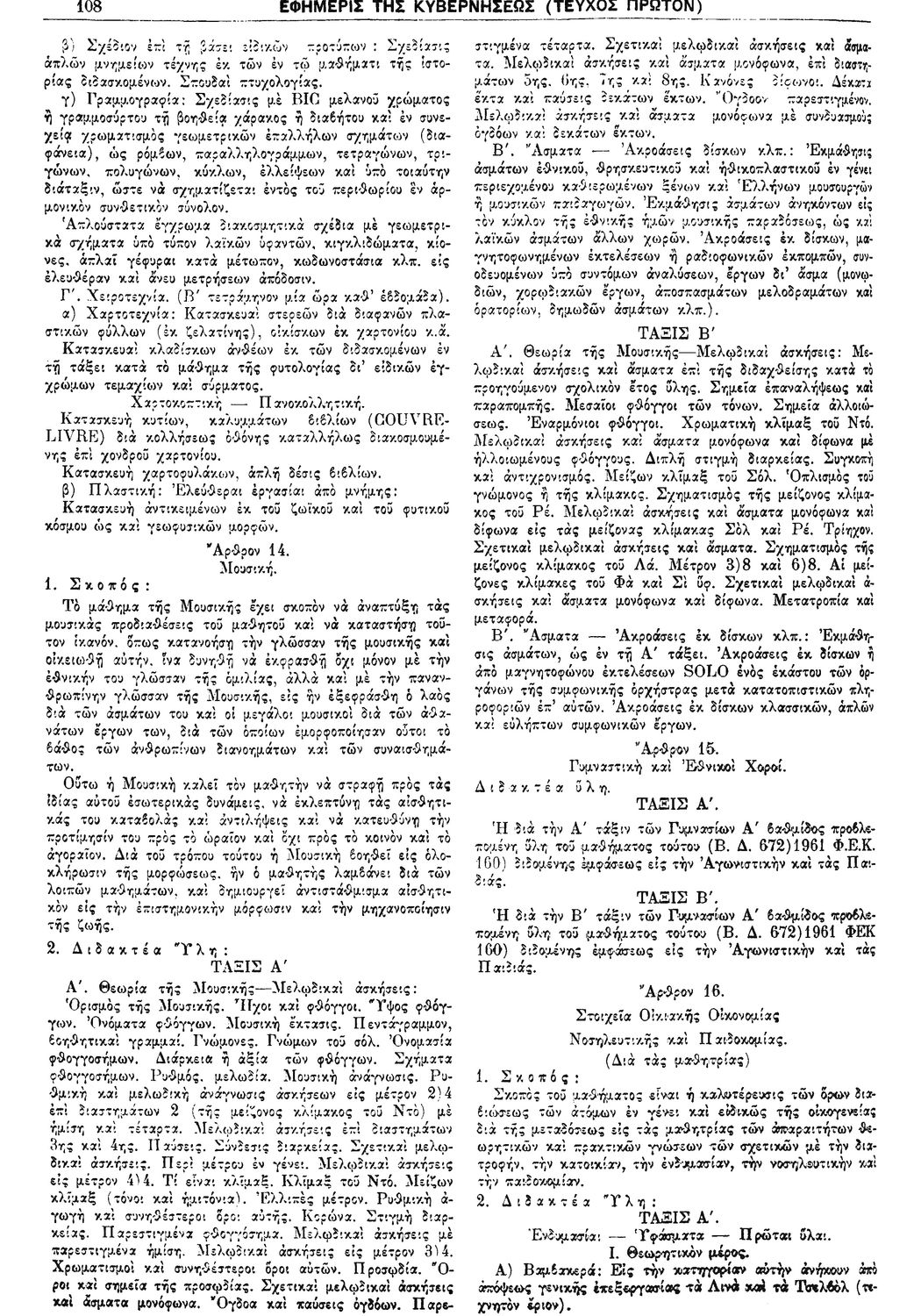 Δ. 72 Περί ωρολογίων και αναλυτικών προγραμμάτων τάξεων τινων σχολείων Δευτεροβάθμιας (Μέσης) Εκπαιδεύσεως