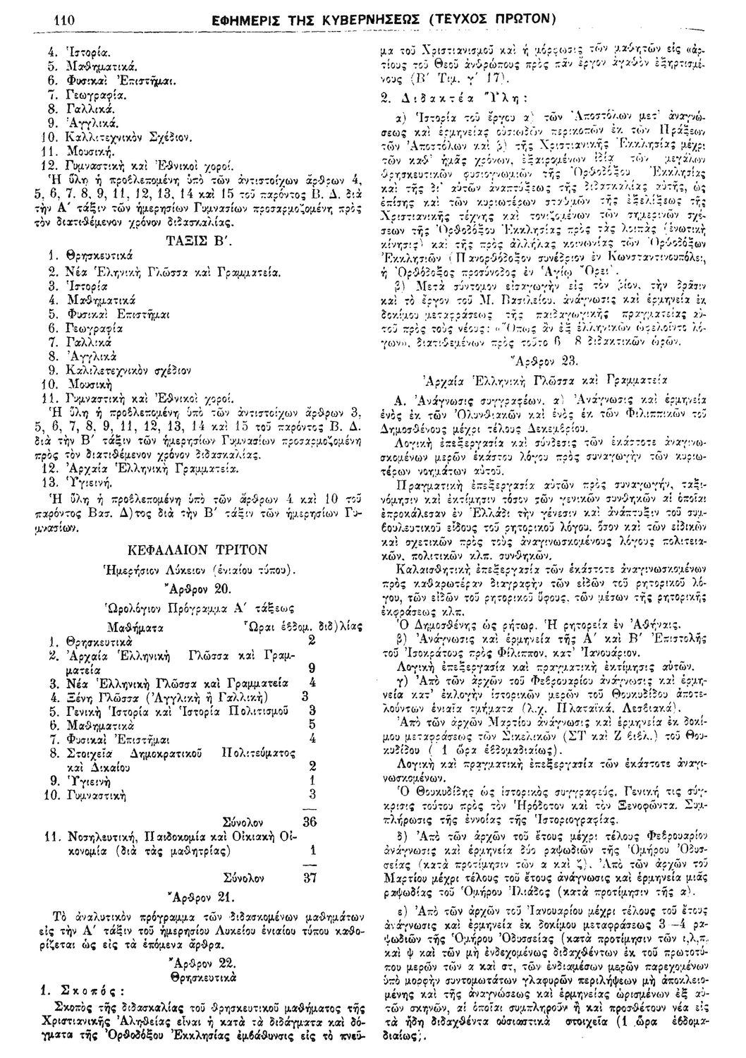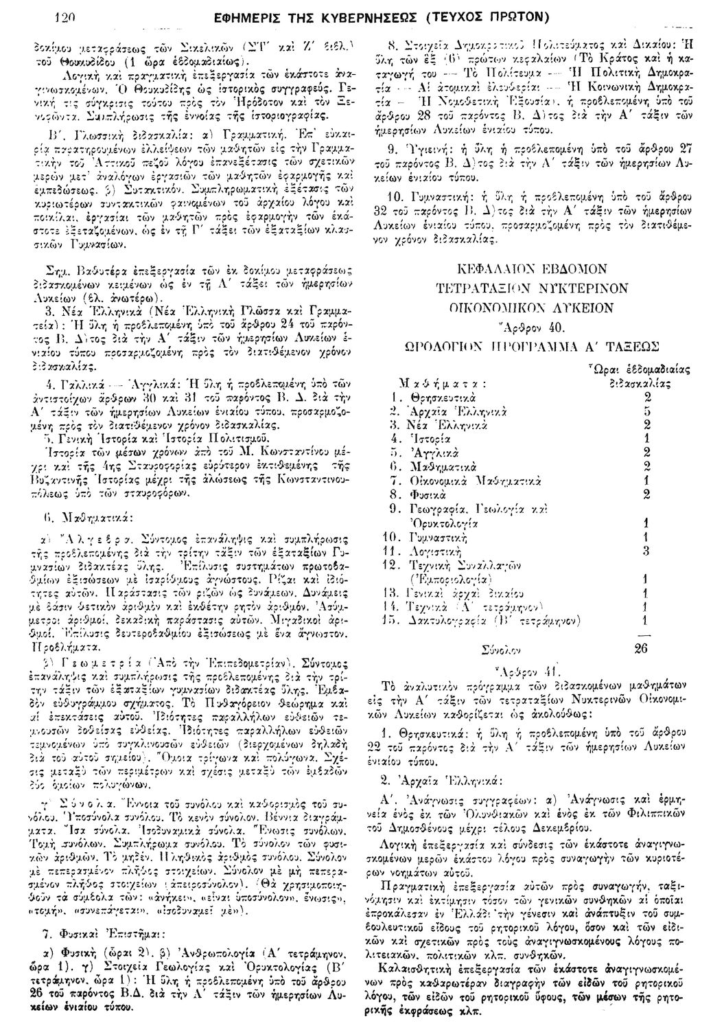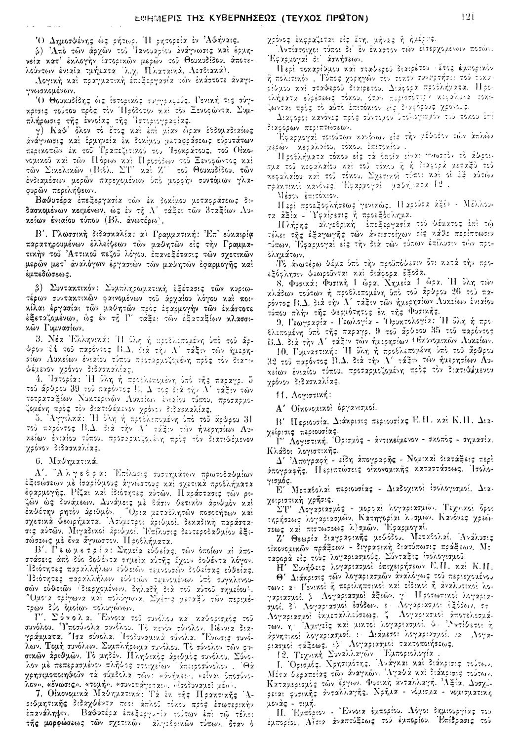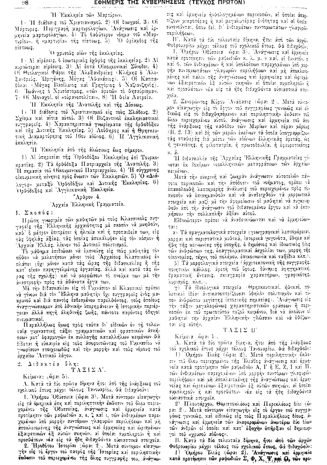 Παρουσίαση περιεχομένου: Δ. 72 Περί ωρολογίων και αναλυτικών προγραμμάτων τάξεων τινων σχολείων Δευτεροβάθμιας (Μέσης) Εκπαιδεύσεως Σχετικές σελίδες: 1, 6-32 |