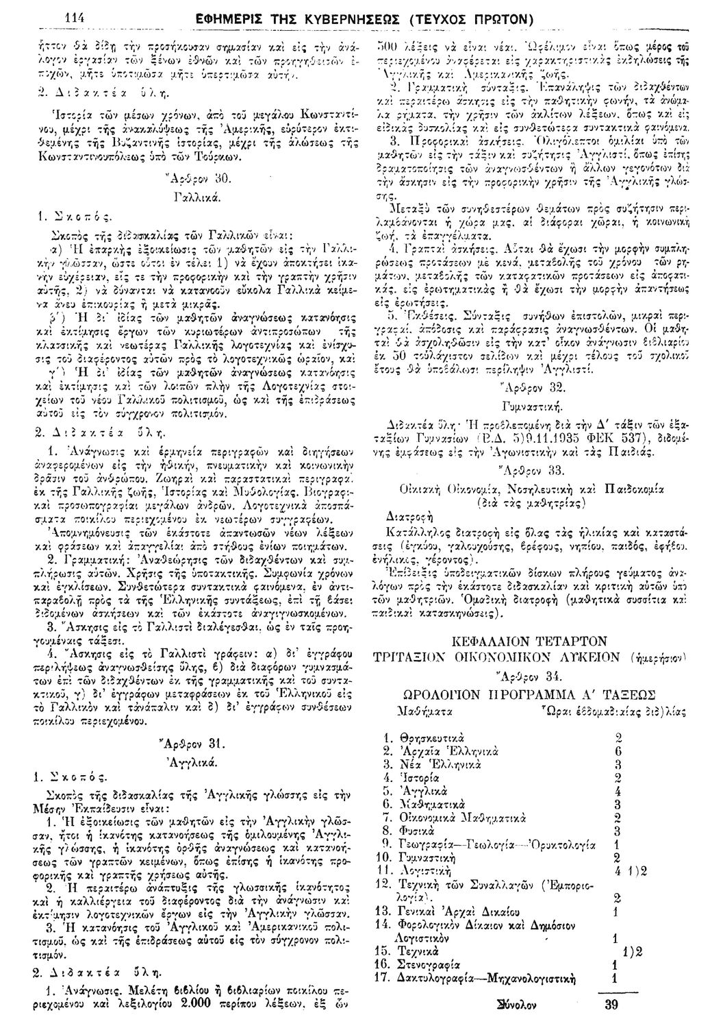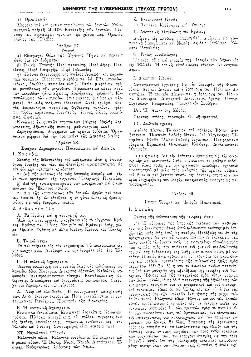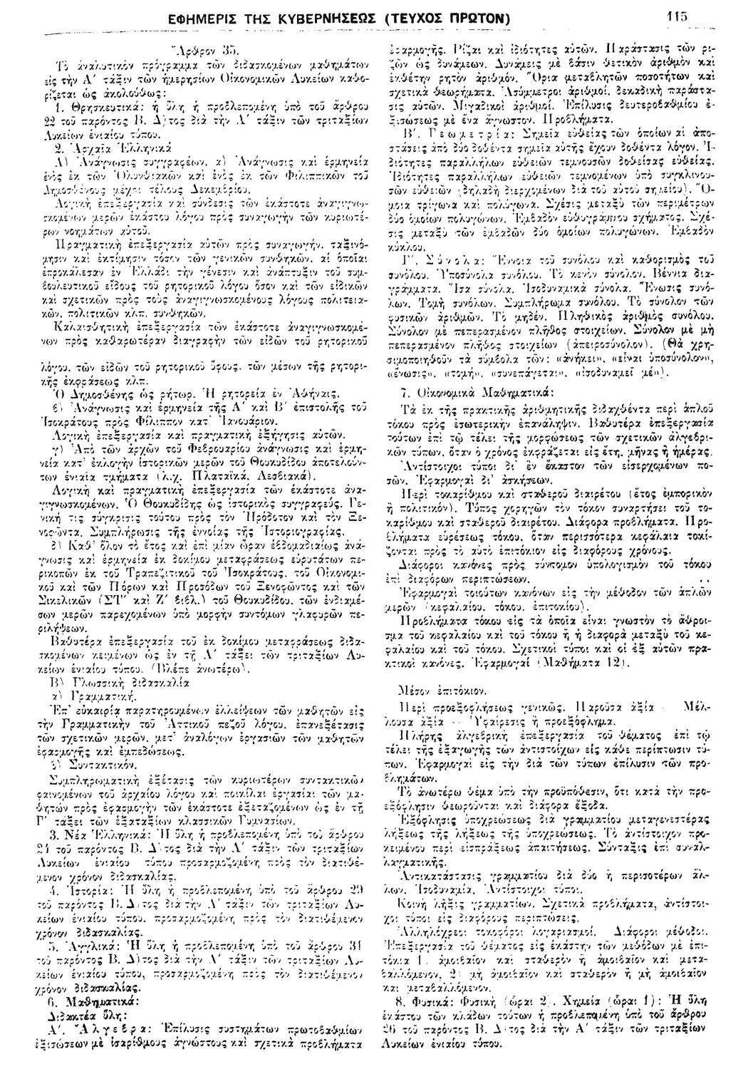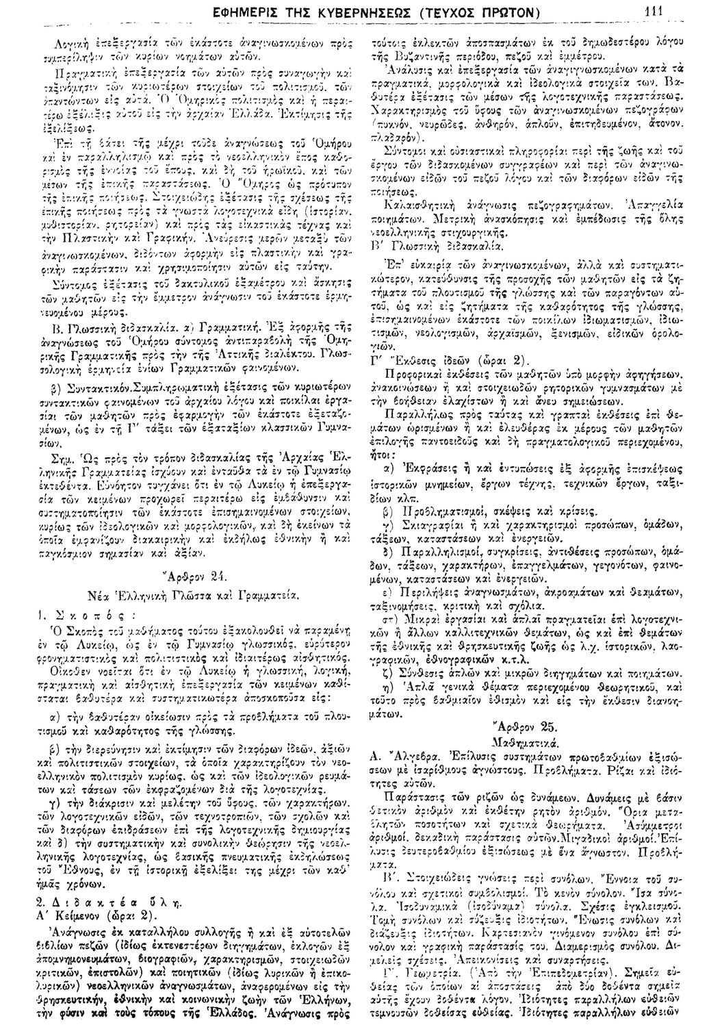 Παρουσίαση περιεχομένου: Δ. 72 Περί ωρολογίων και αναλυτικών προγραμμάτων τάξεων τινων σχολείων Δευτεροβάθμιας (Μέσης) Εκπαιδεύσεως Σχετικές σελίδες: 1, 6-32 |