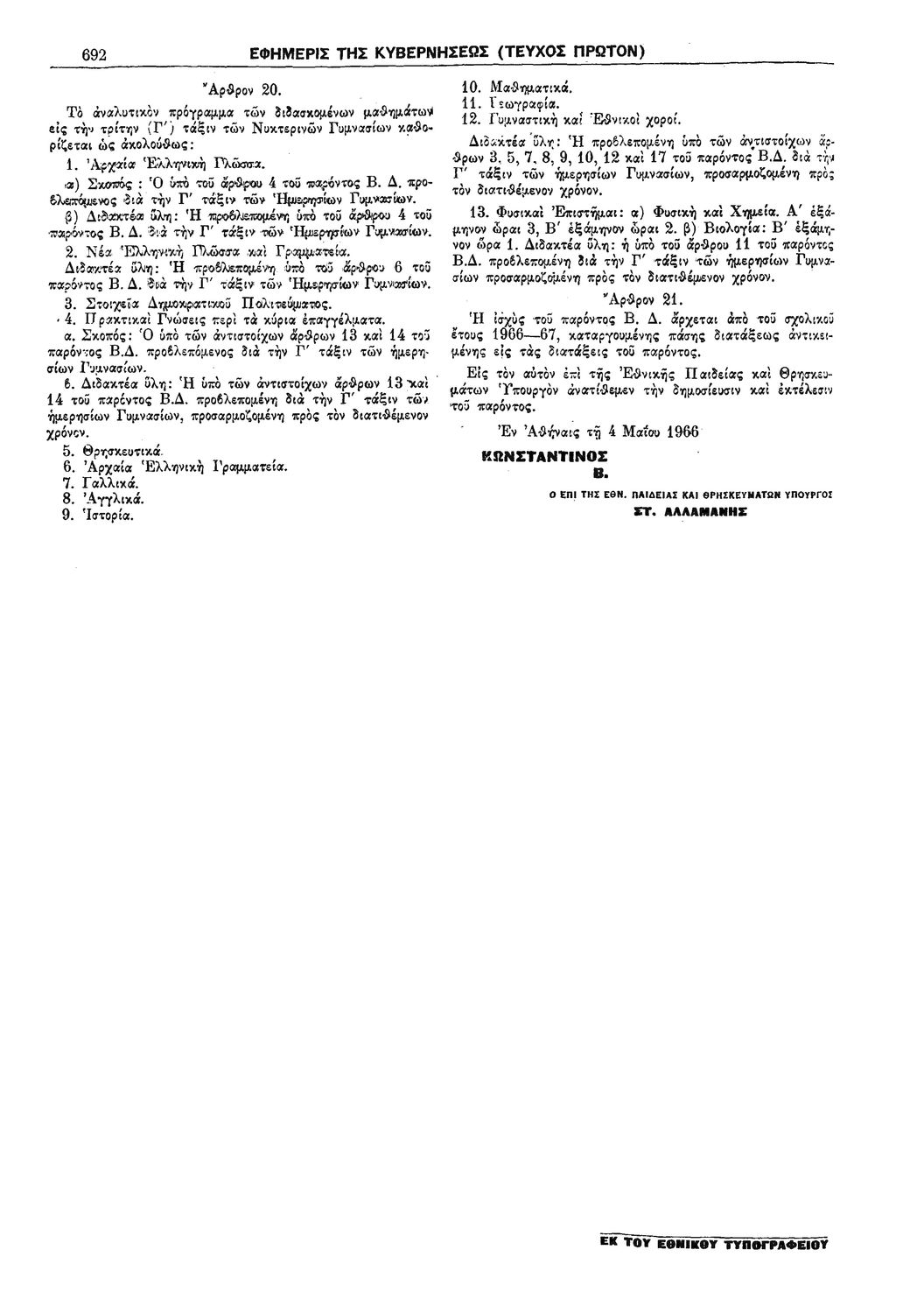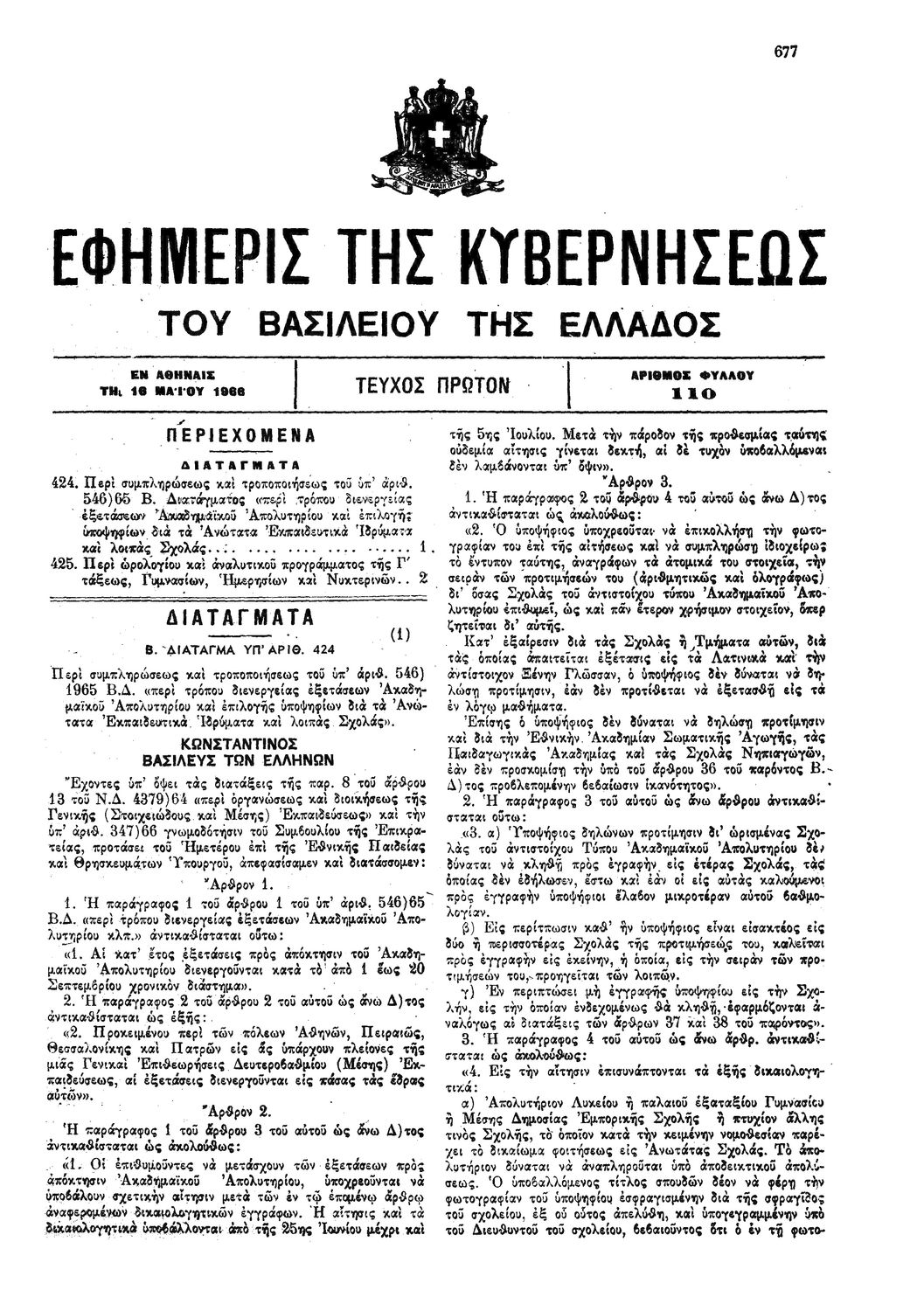 Κωδικός αναγνώρισης: 1966-110A Τίτλος: ΦΕΚ 110/16.05.1966, Τεύχος Α Μέγεθος και υπόστρωμα: Φεκ προγραμμάτων σπουδών, 10 σελίδες. |