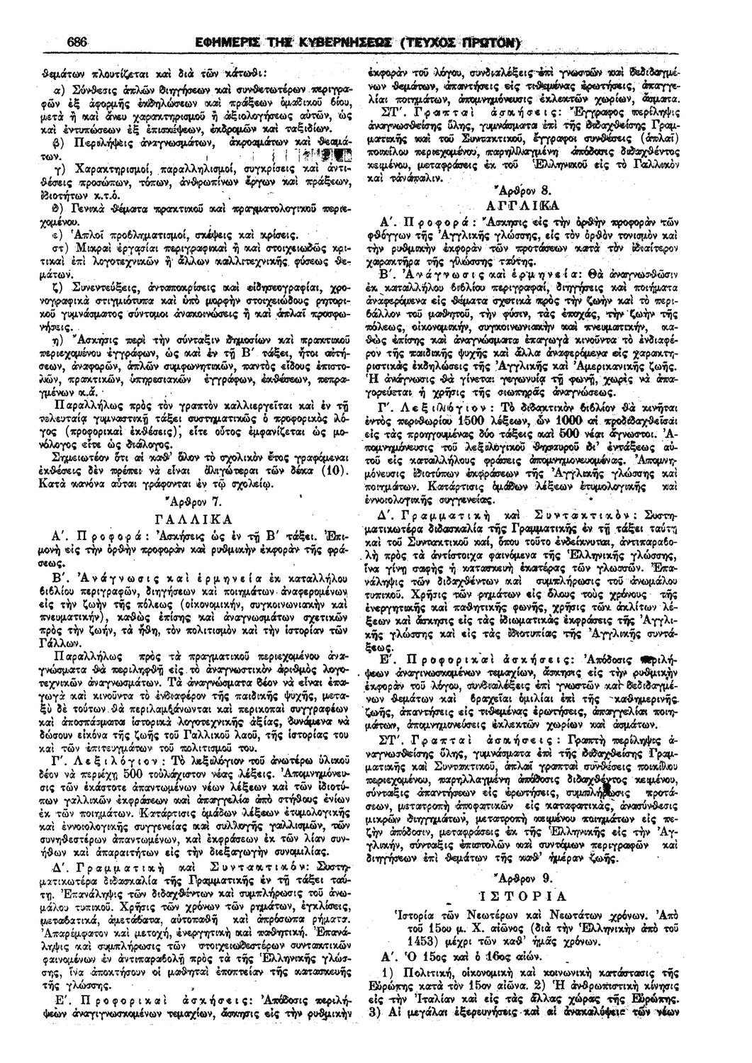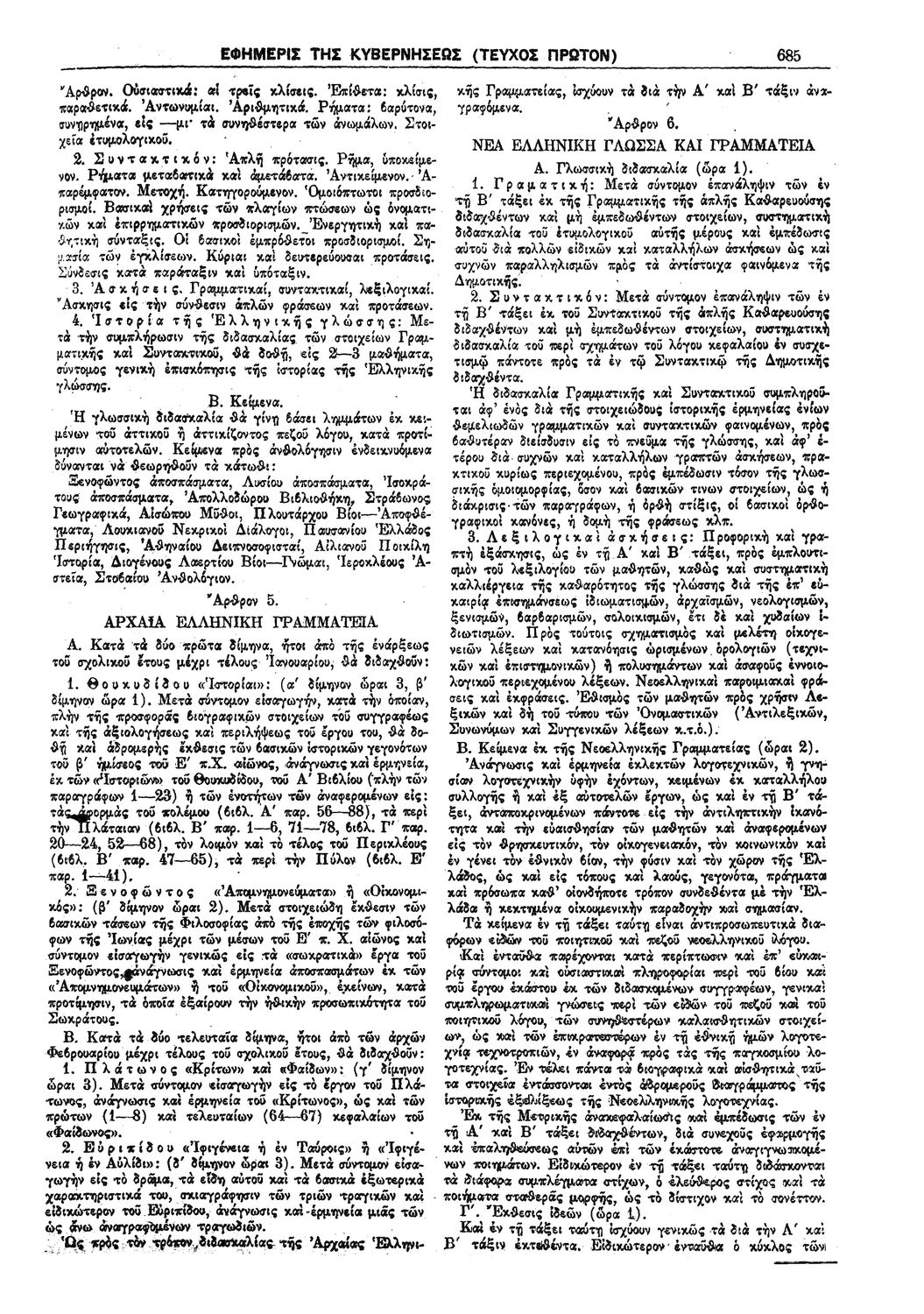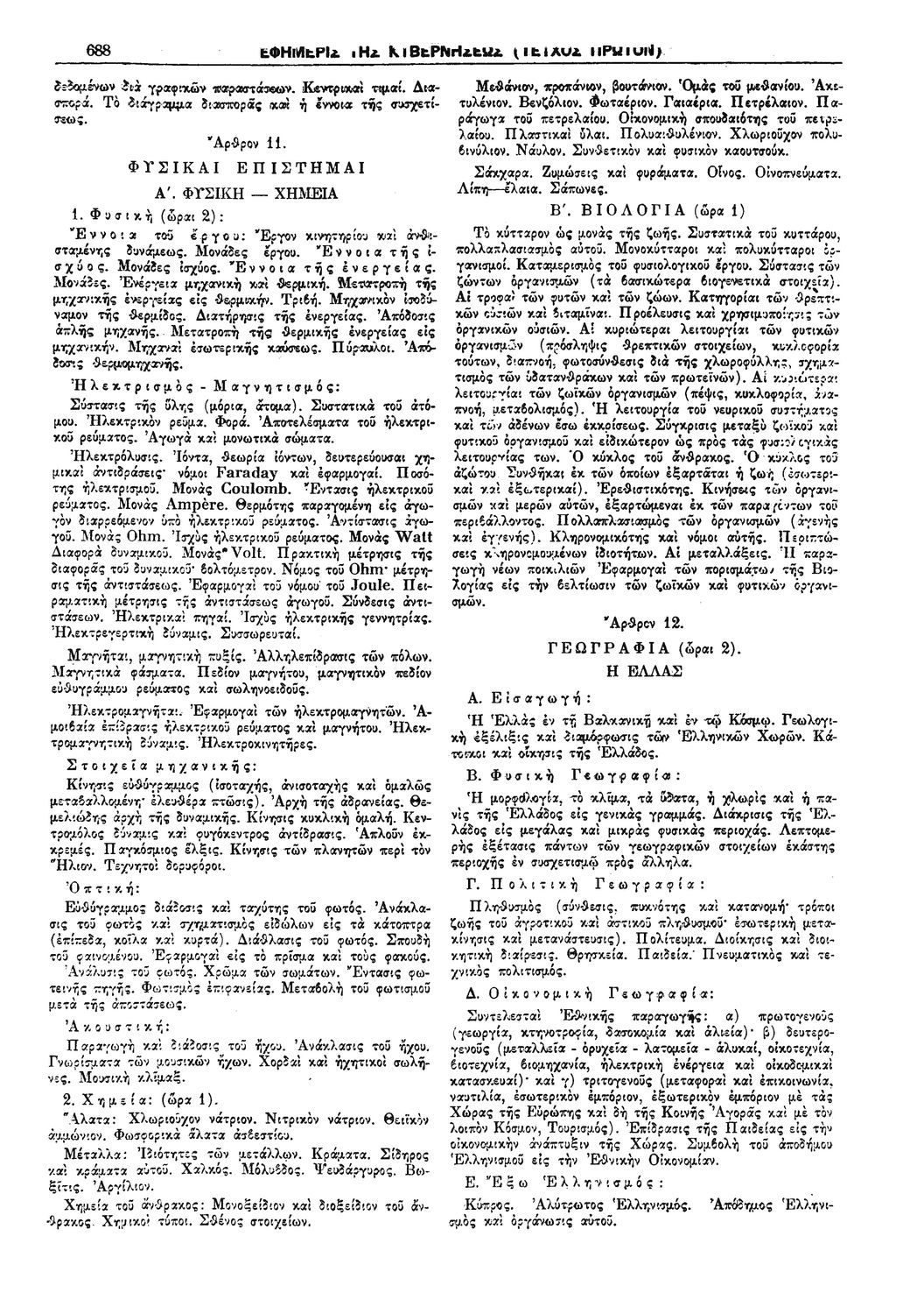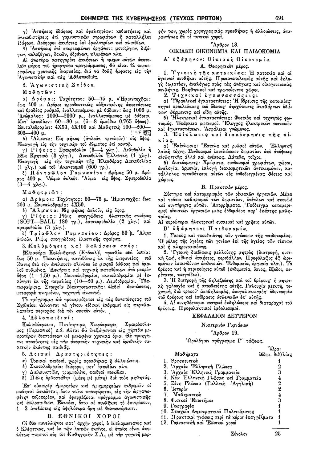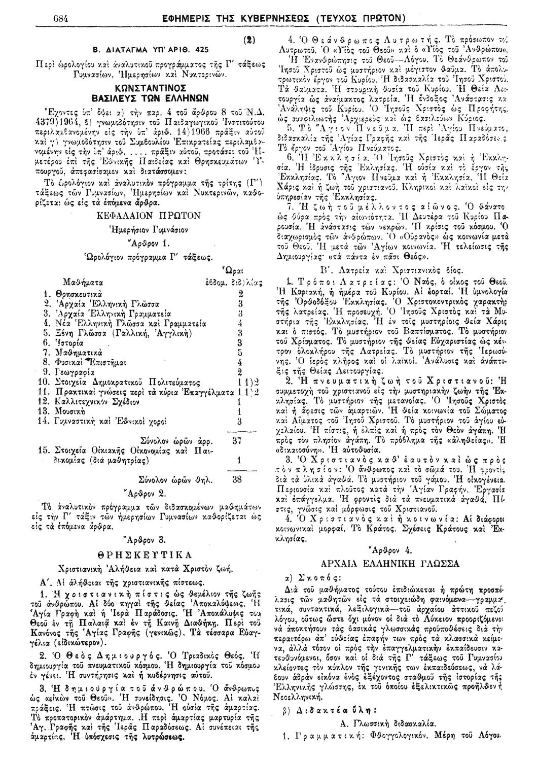 Δ. 425 Περί ωρολογίου και αναλυτικού προγράμματος της Γ' τάξεως Γυμνασίων, Ημερησίων και Νυκτερινών.