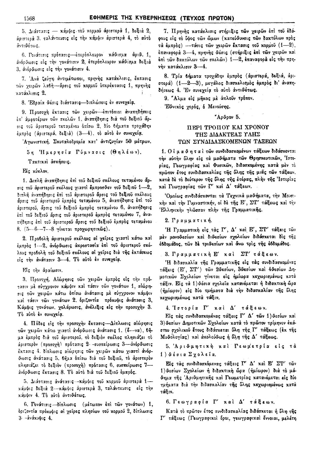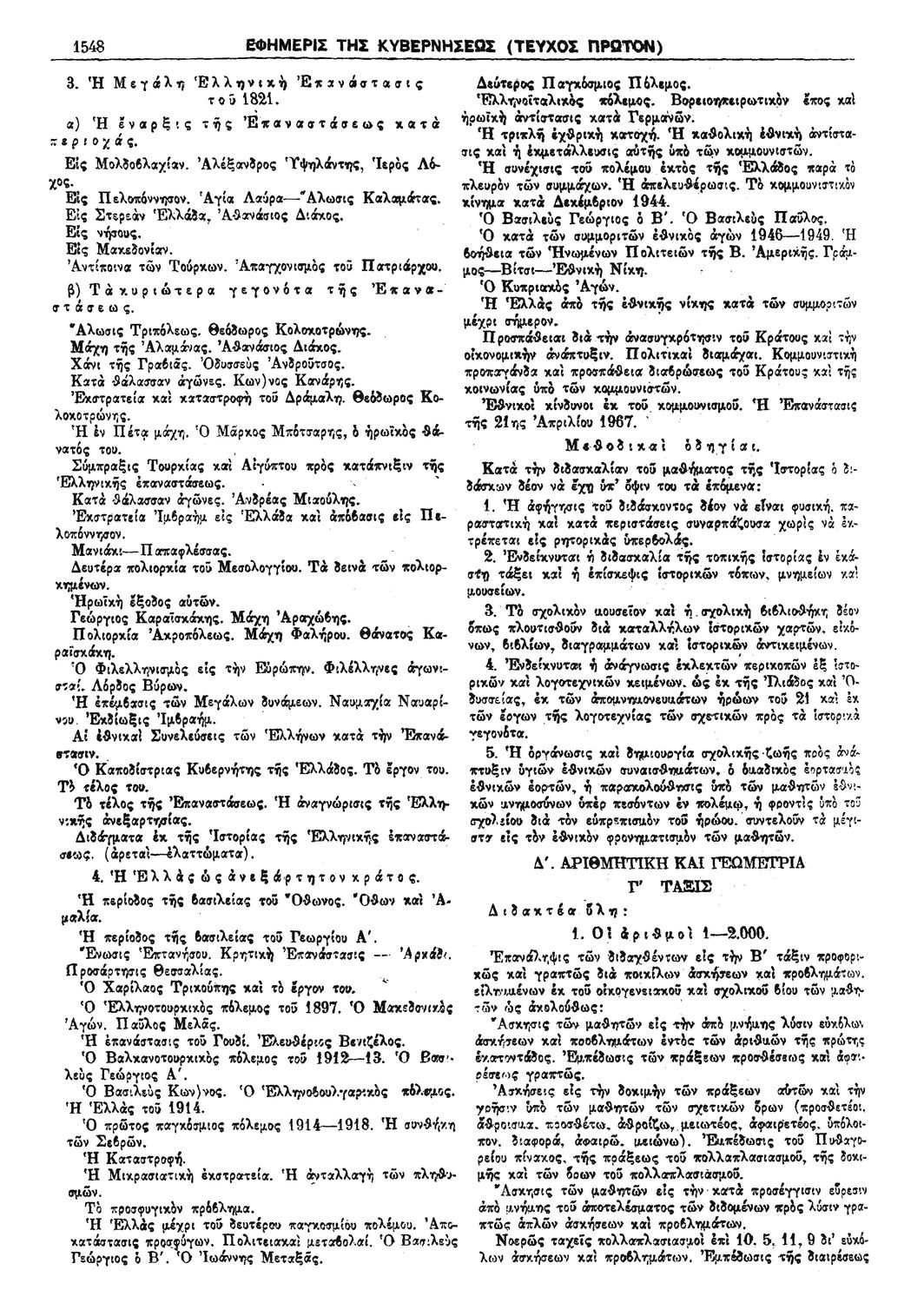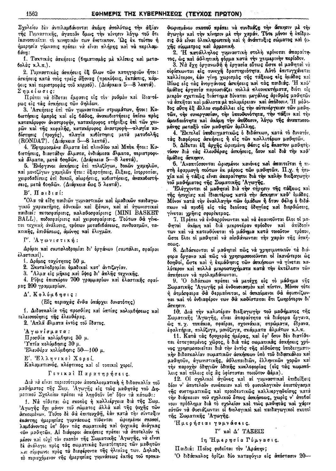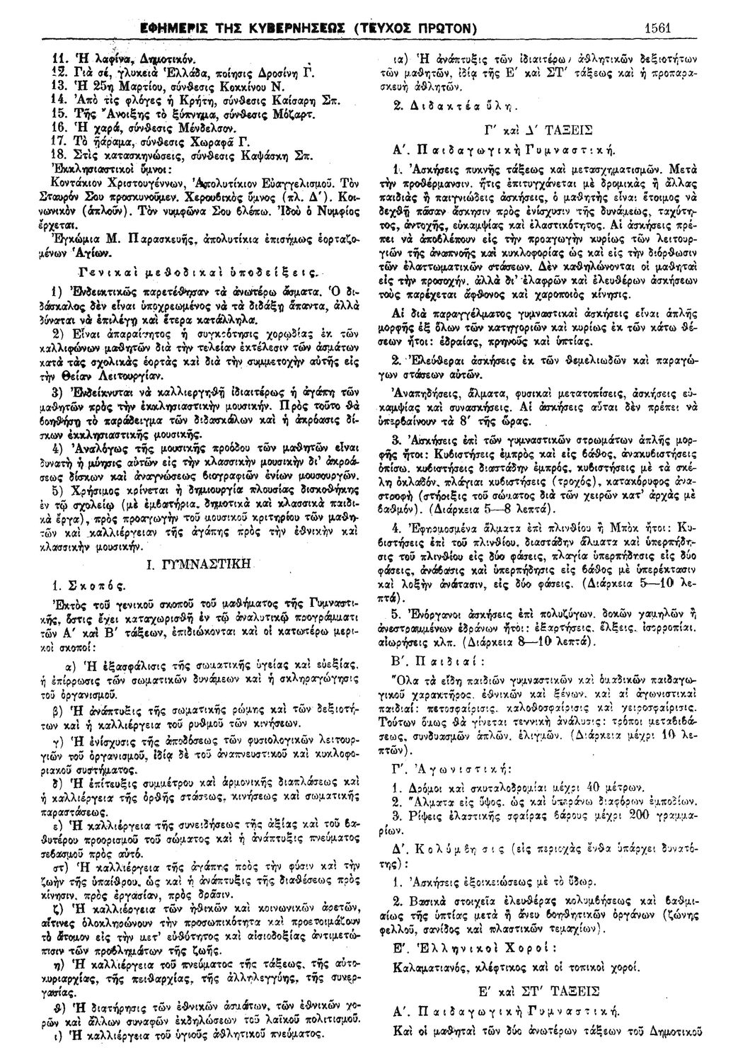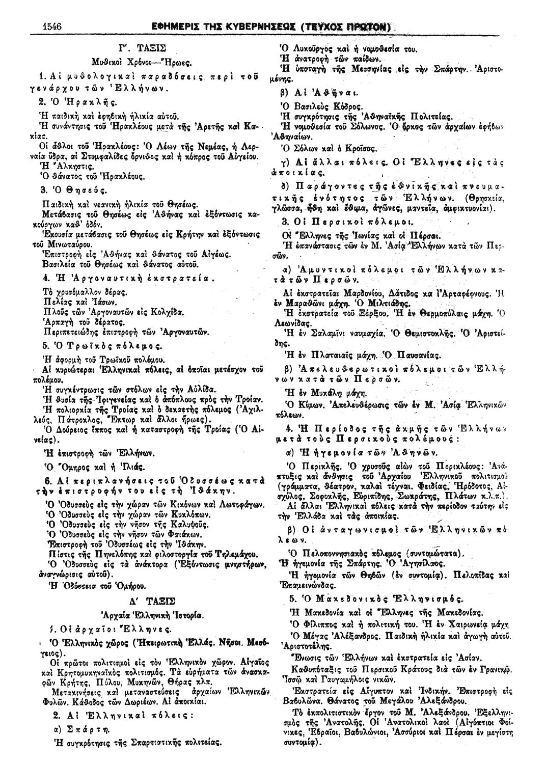 Β.Δ. 702 Περί των ωρολογίου και αναλυτικού προγράμματος των μαθημάτων του Δημοτικού Σχολείου