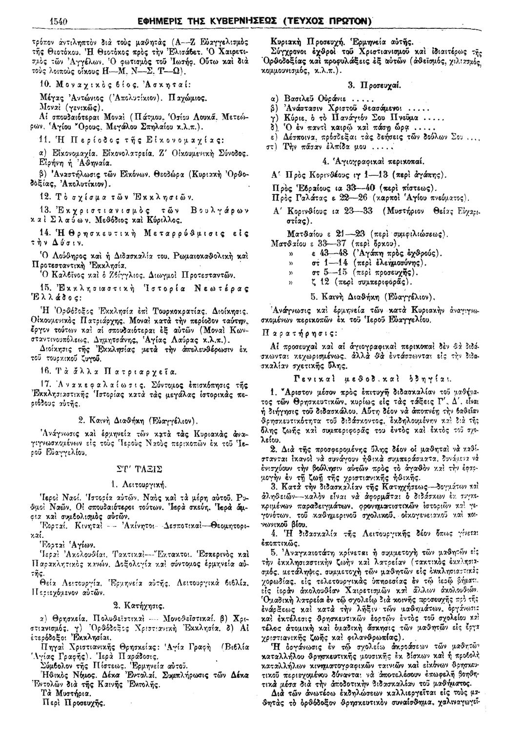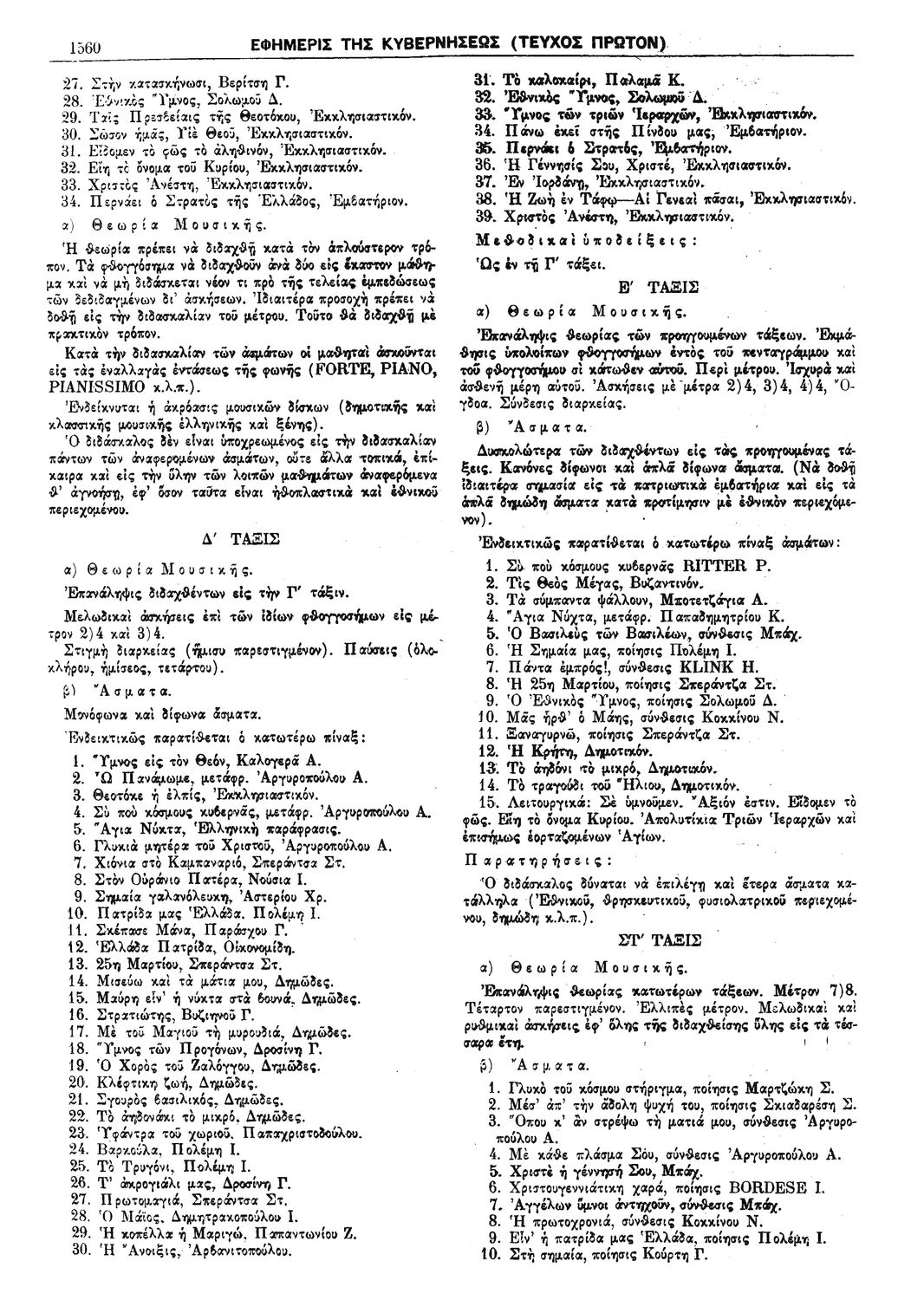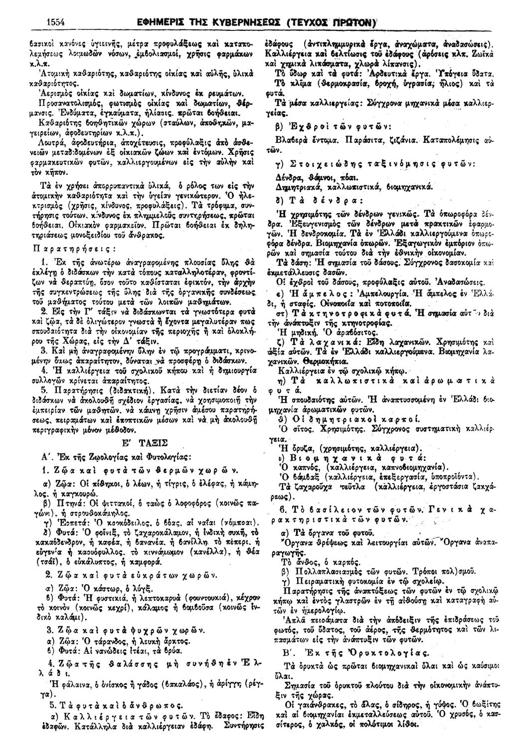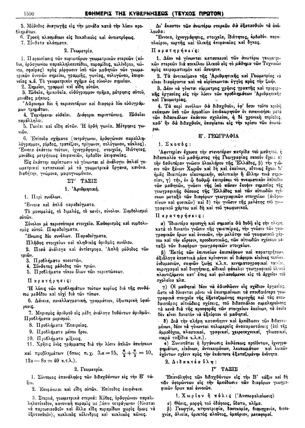 Β.Δ. 702 Περί των ωρολογίου και αναλυτικού προγράμματος των μαθημάτων του Δημοτικού Σχολείου