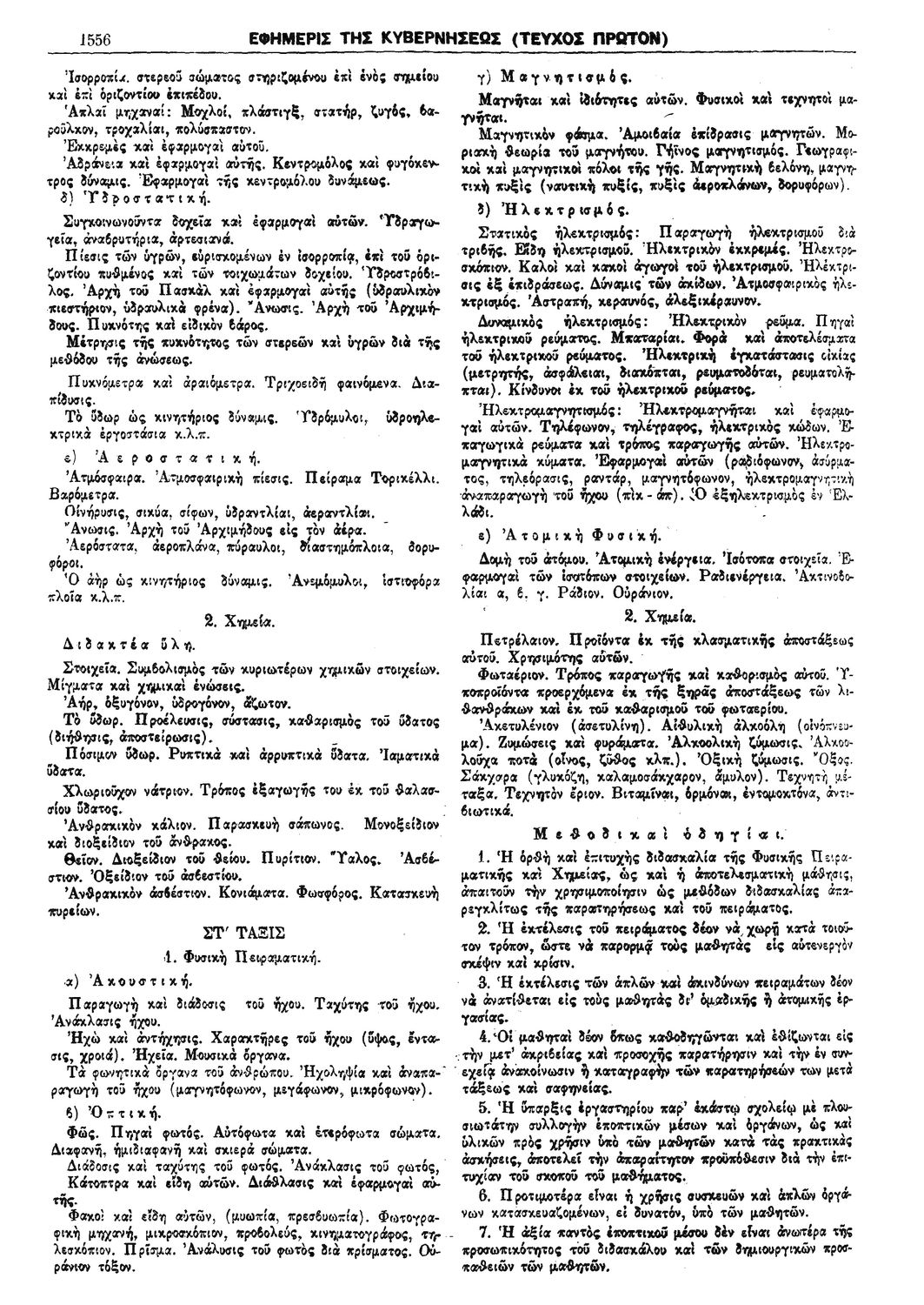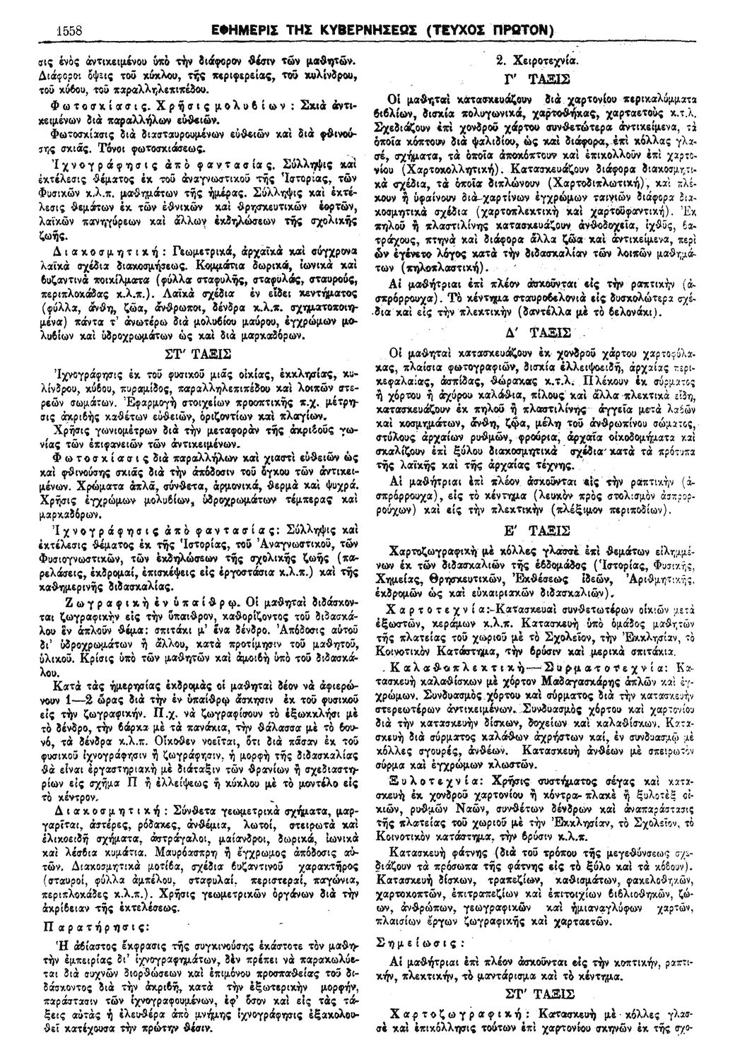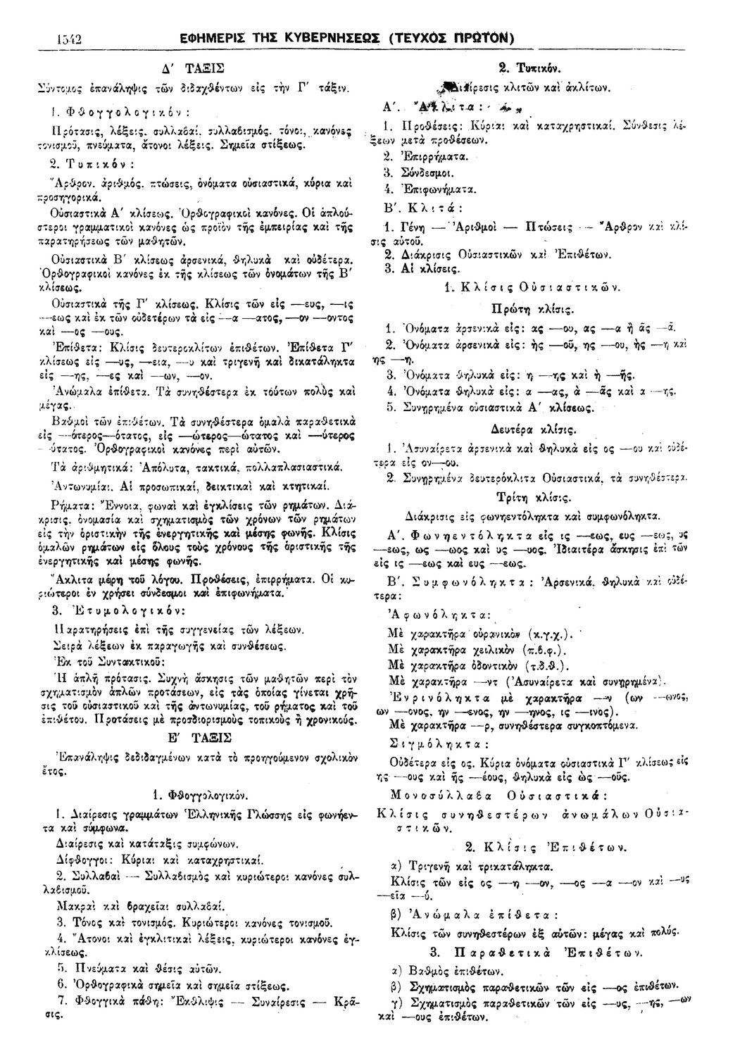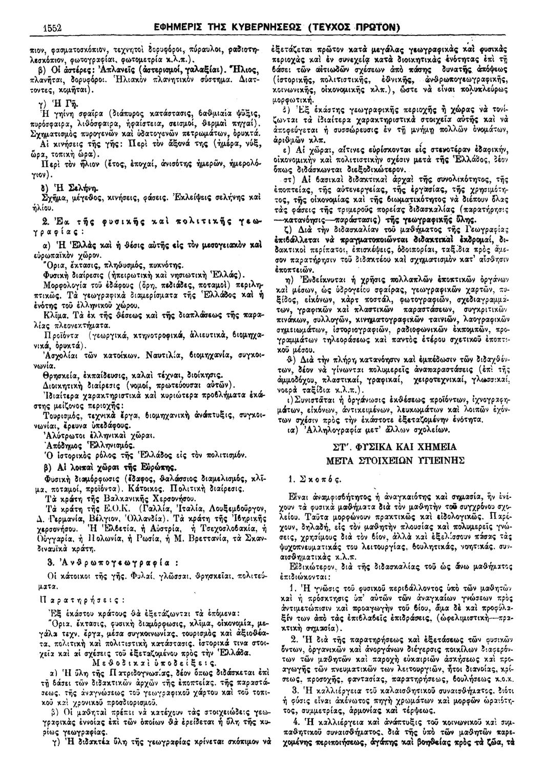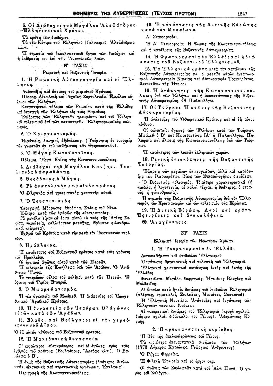 Β.Δ. 702 Περί των ωρολογίου και αναλυτικού προγράμματος των μαθημάτων του Δημοτικού Σχολείου