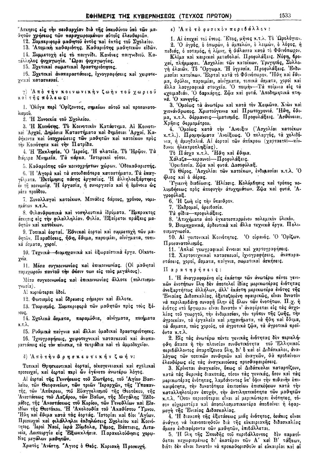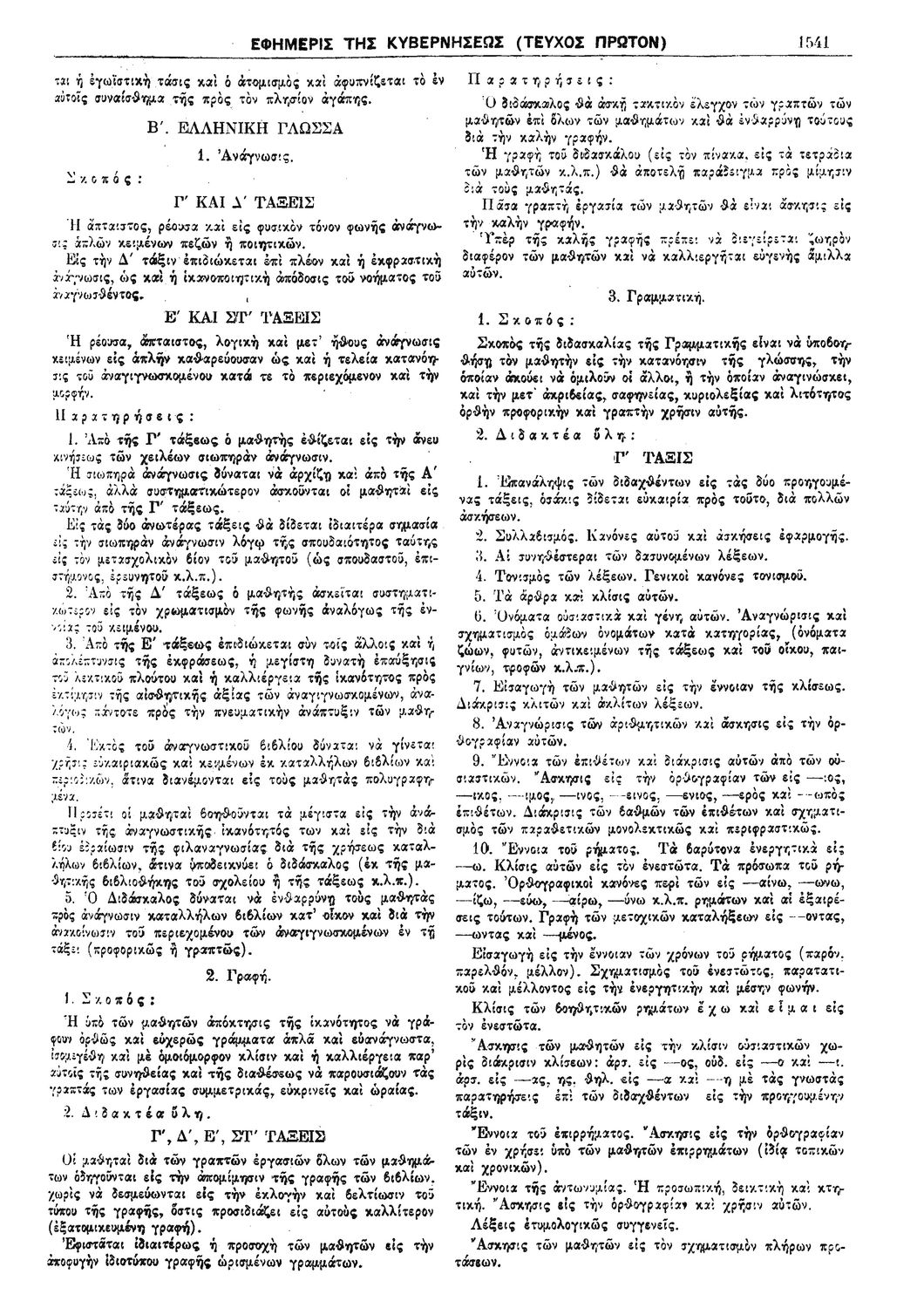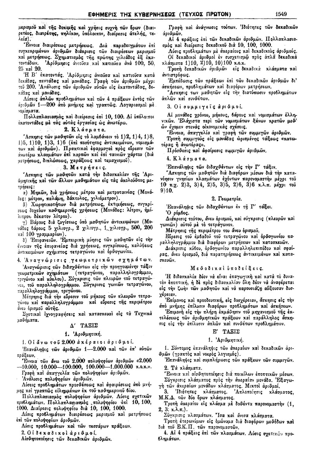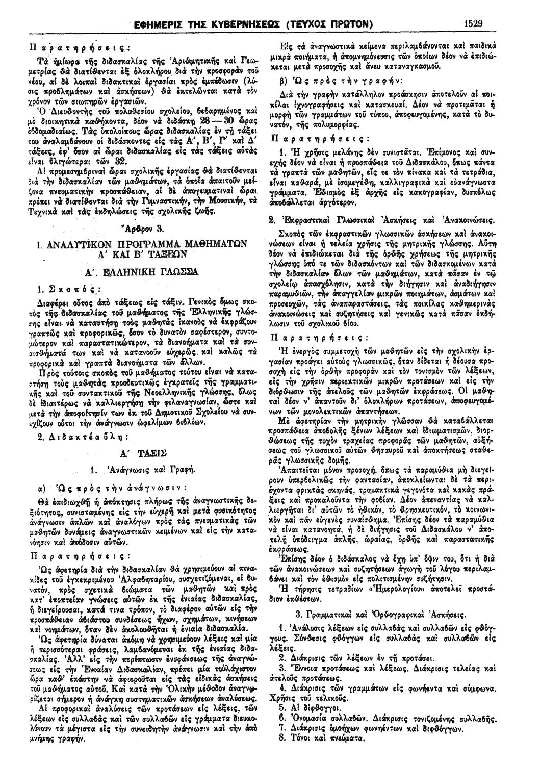 Παρουσίαση περιεχομένου: Β.Δ. 702 Περί των ωρολογίου και αναλυτικού προγράμματος των μαθημάτων του Δημοτικού Σχολείου Σχετικές σελίδες: 1-43 |