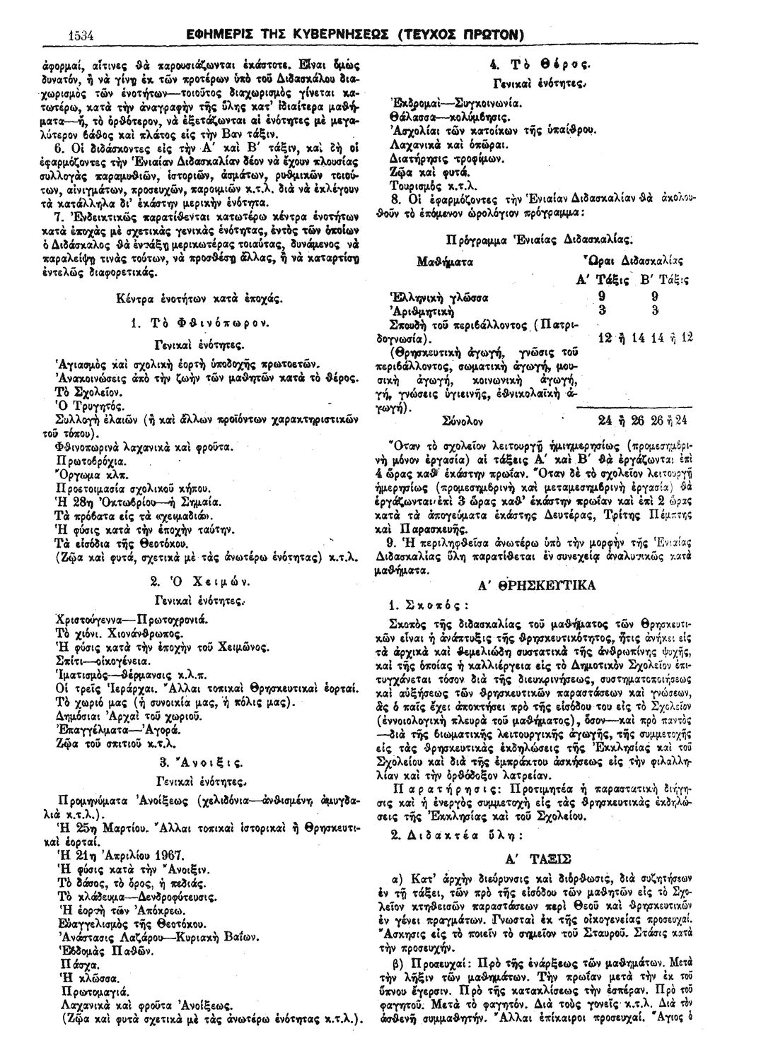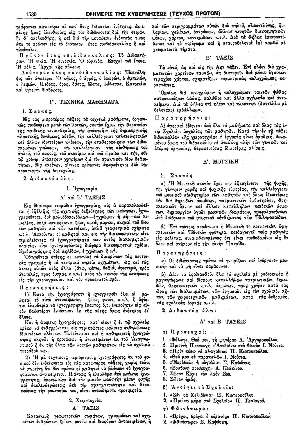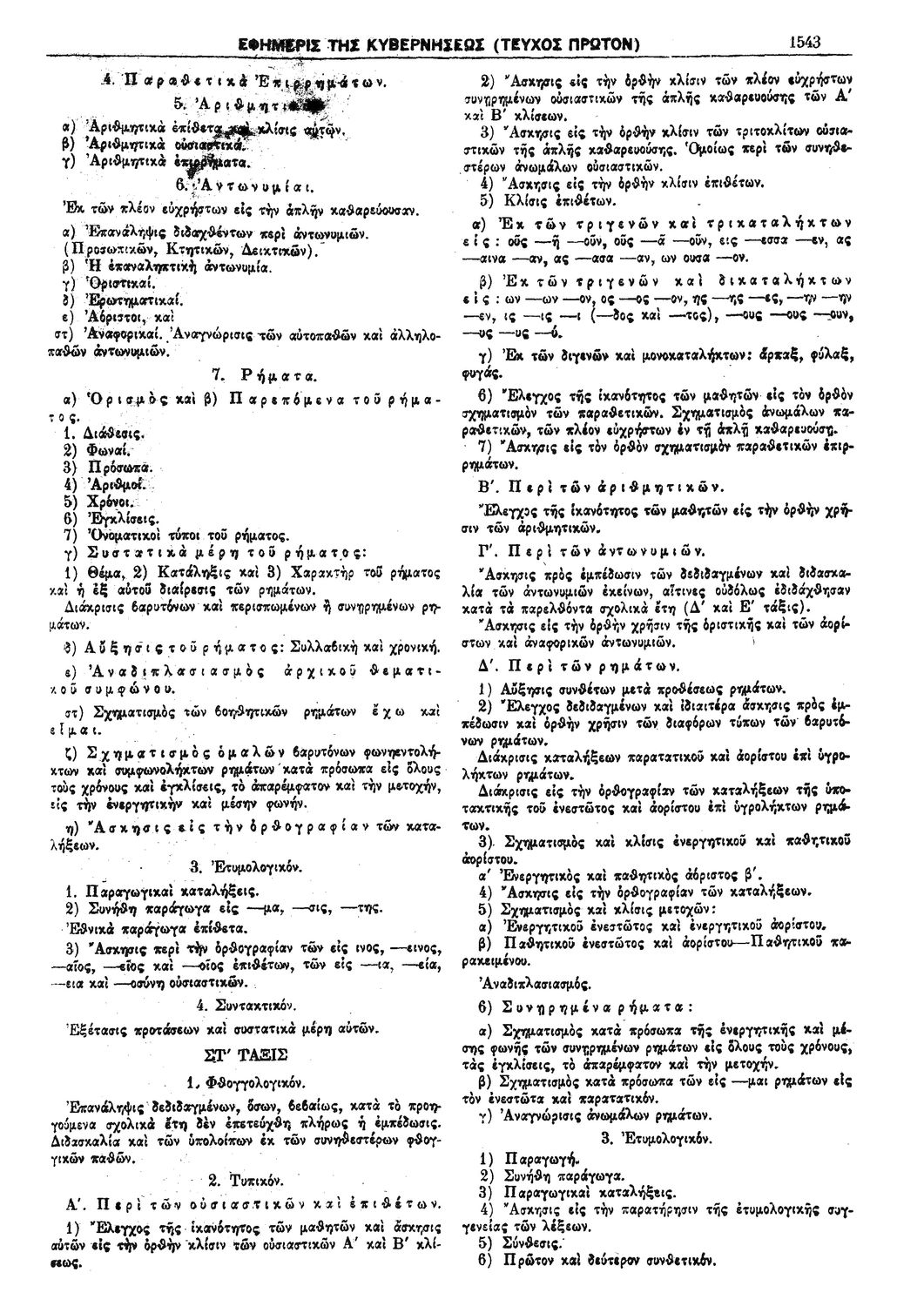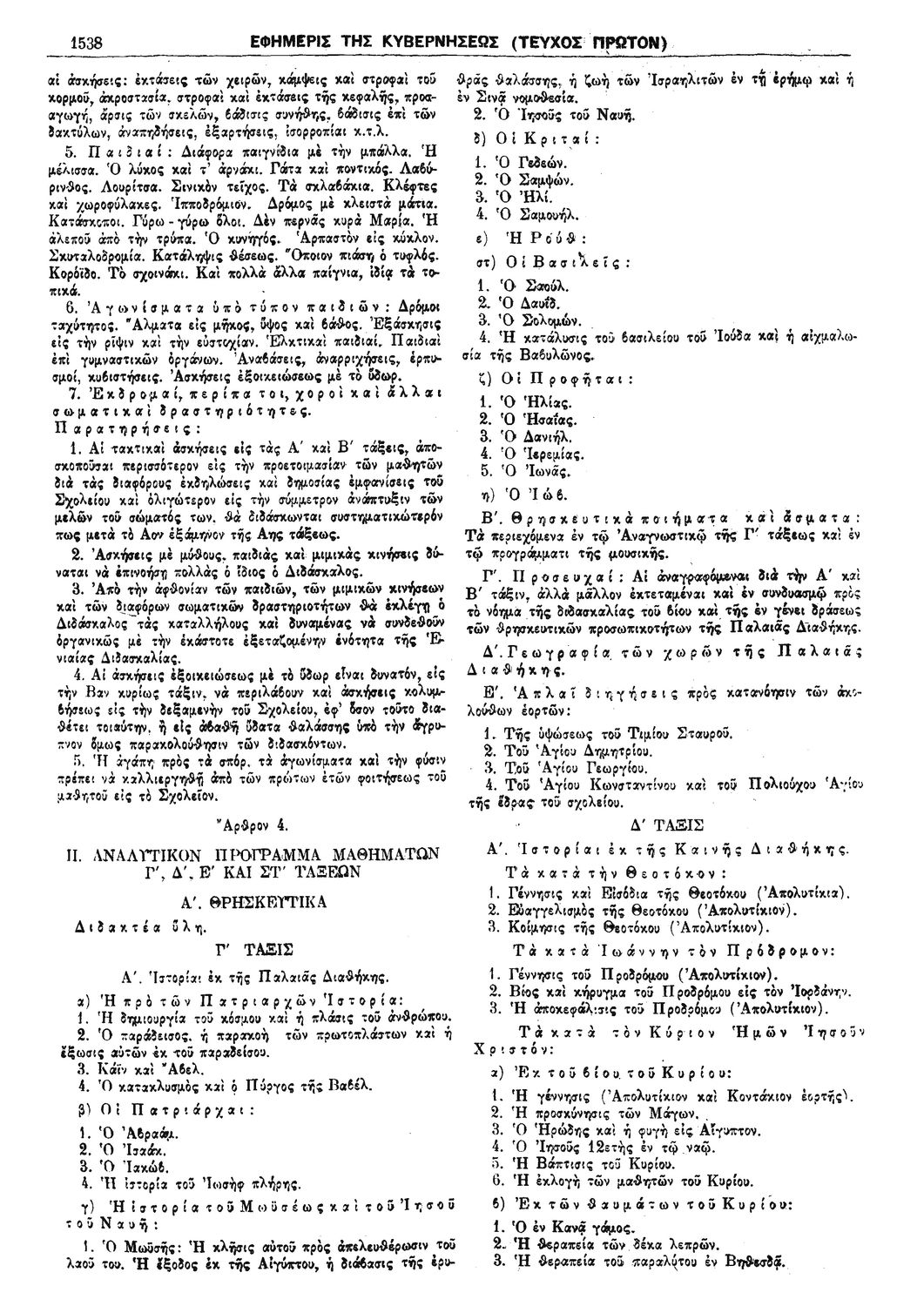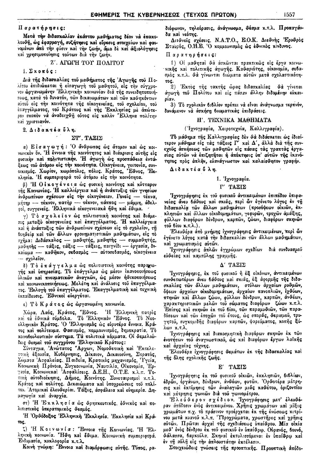 Παρουσίαση περιεχομένου: Β.Δ. 702 Περί των ωρολογίου και αναλυτικού προγράμματος των μαθημάτων του Δημοτικού Σχολείου Σχετικές σελίδες: 1-43 |
