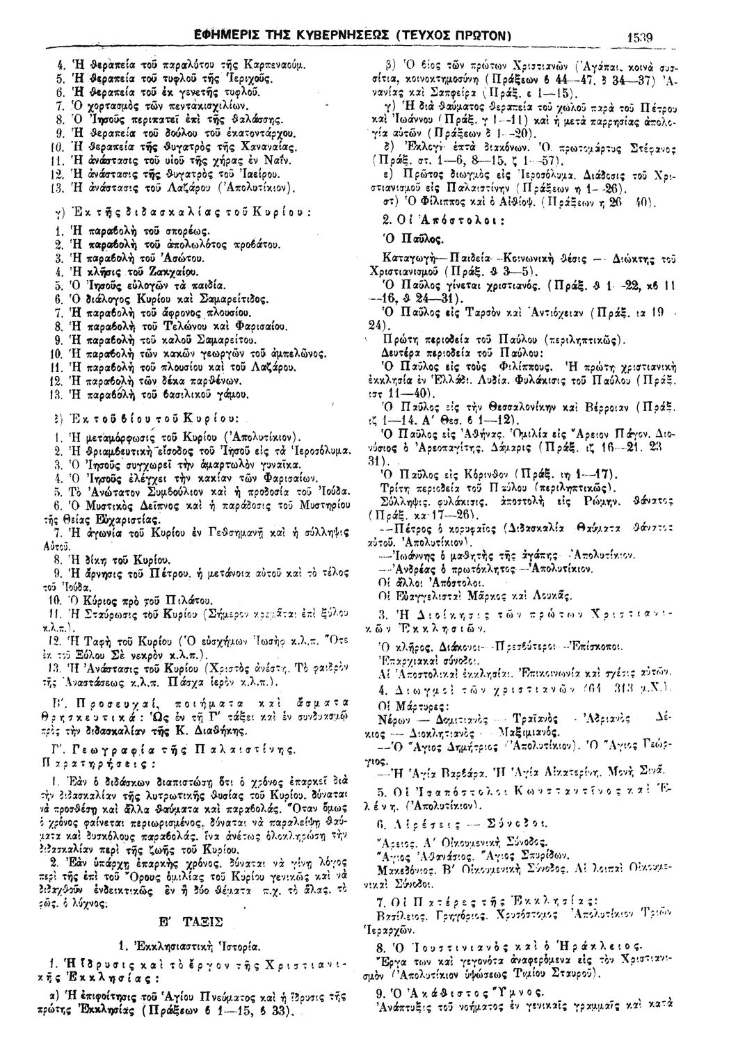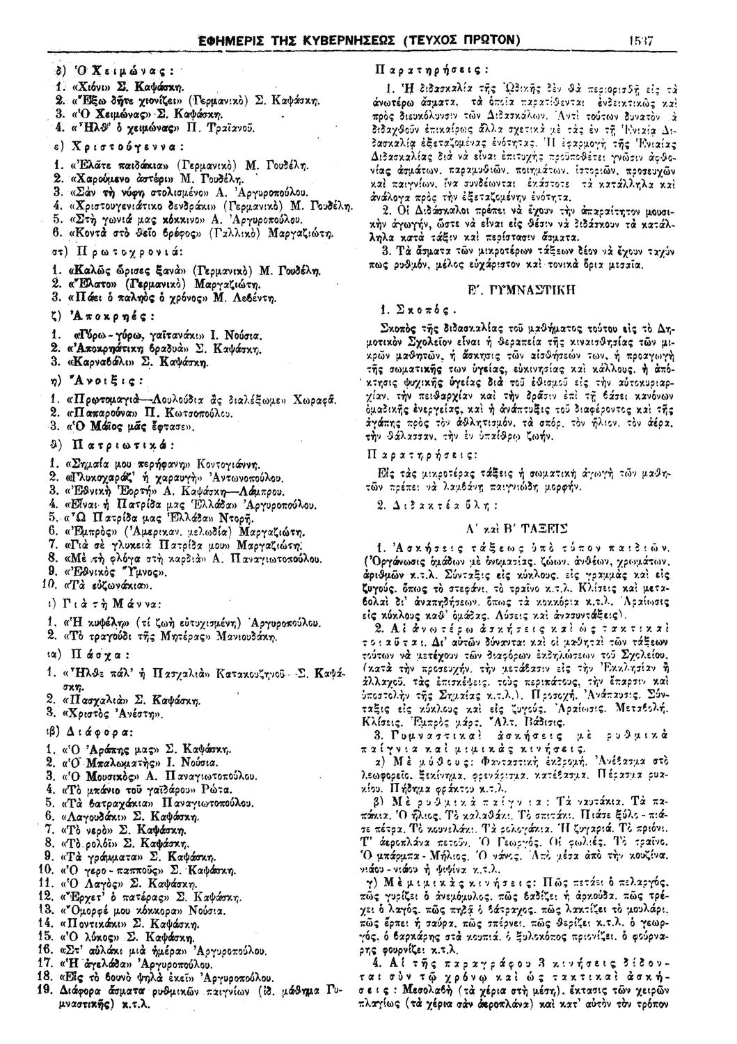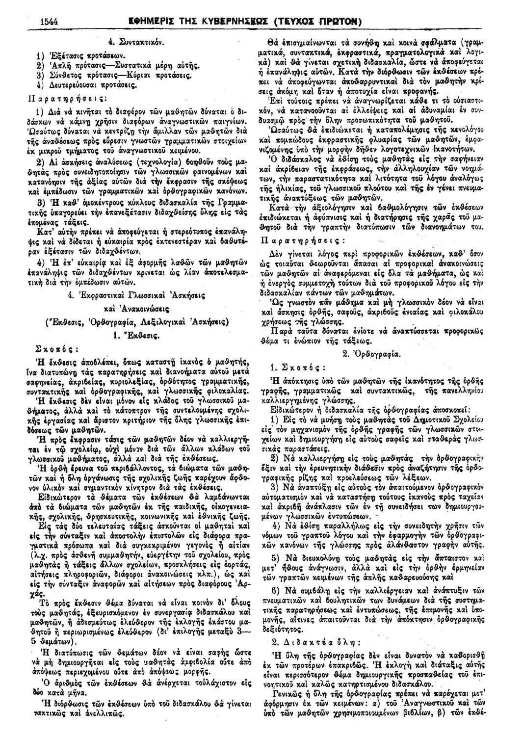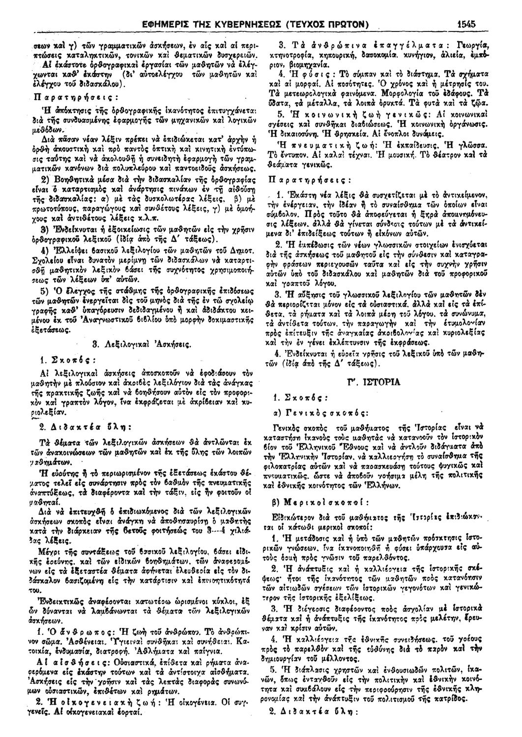 Παρουσίαση περιεχομένου: Β.Δ. 702 Περί των ωρολογίου και αναλυτικού προγράμματος των μαθημάτων του Δημοτικού Σχολείου Σχετικές σελίδες: 1-43 |