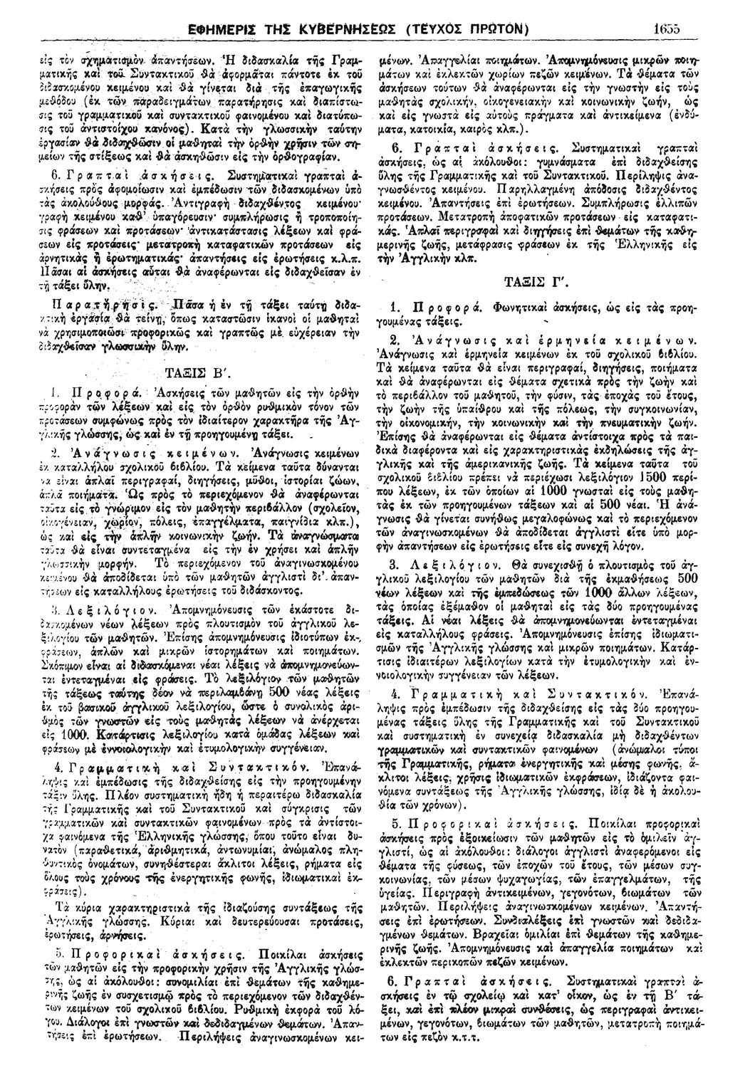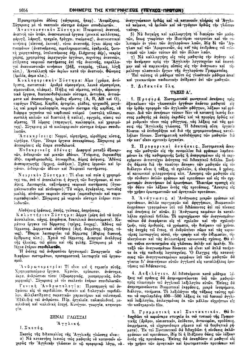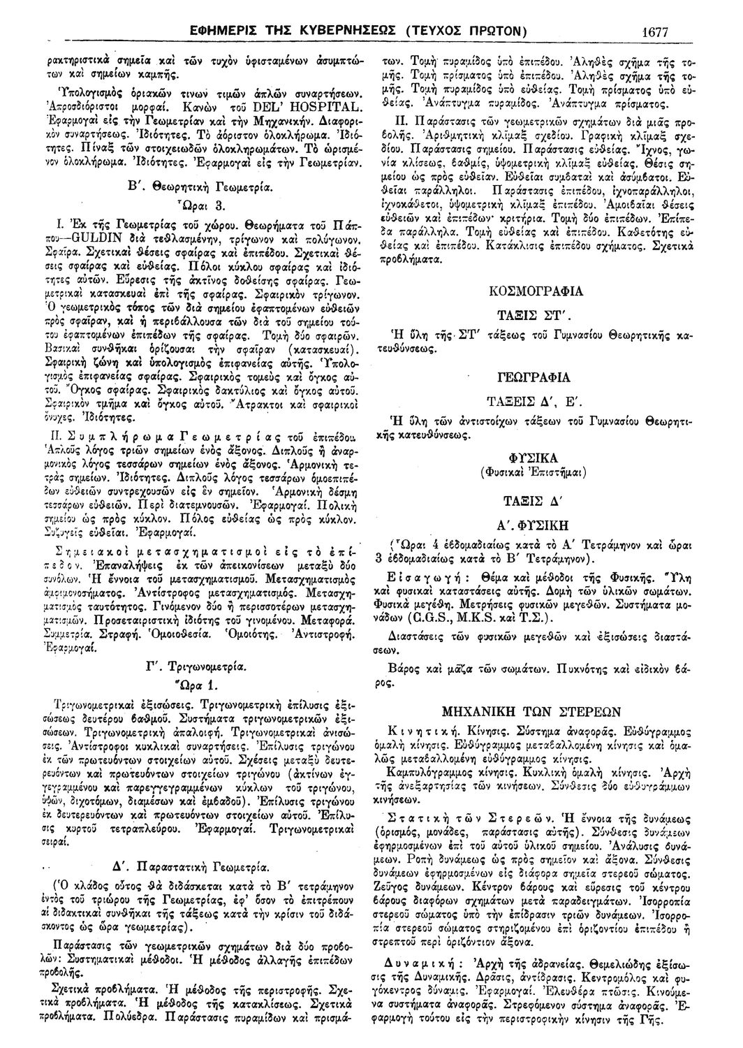 Β.Δ. 723 Περί των ωρολογίων και αναλυτικών προγραμμάτων των μαθημάτων των σχολείων της Μέσης Εκπαιδεύσεως