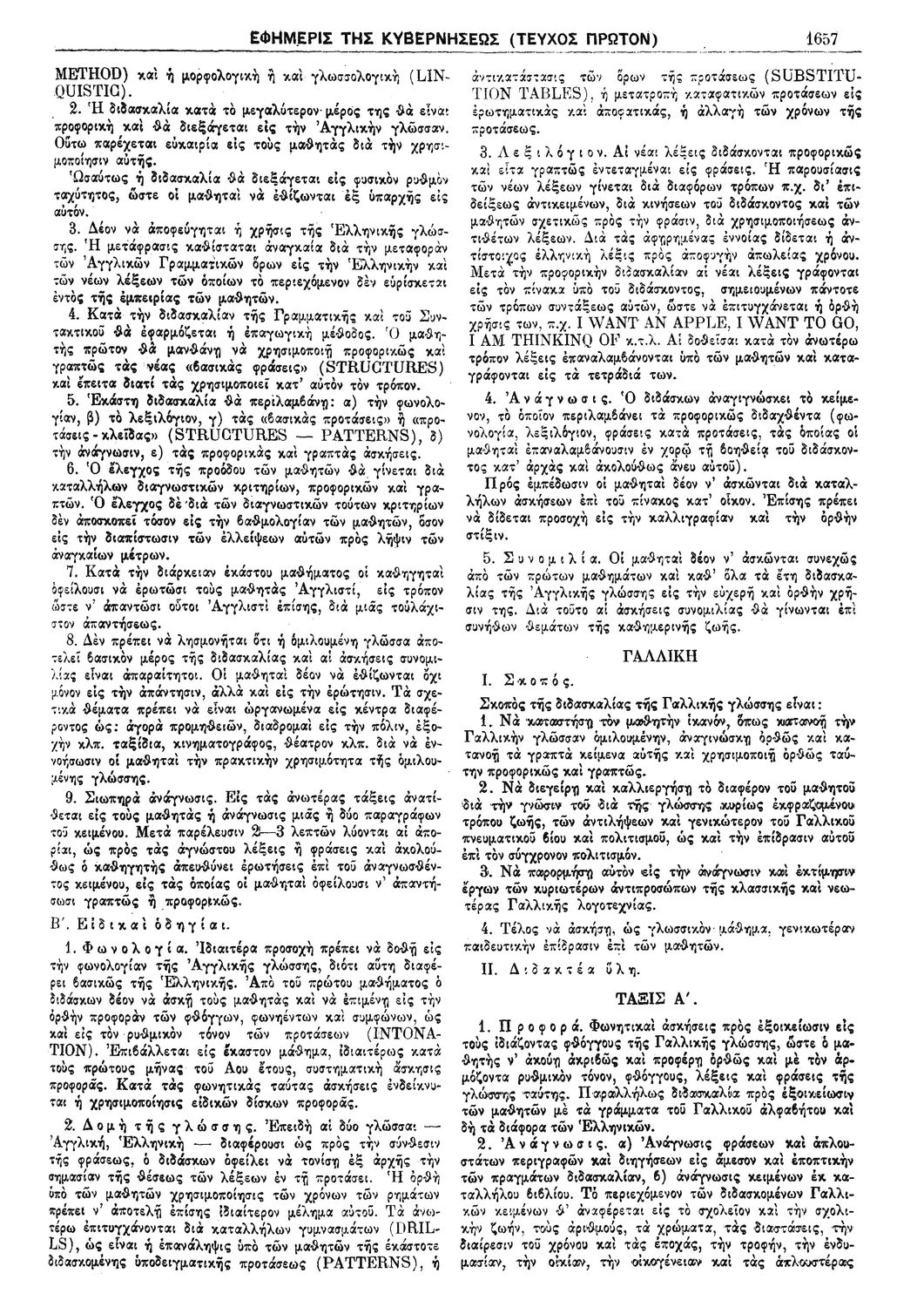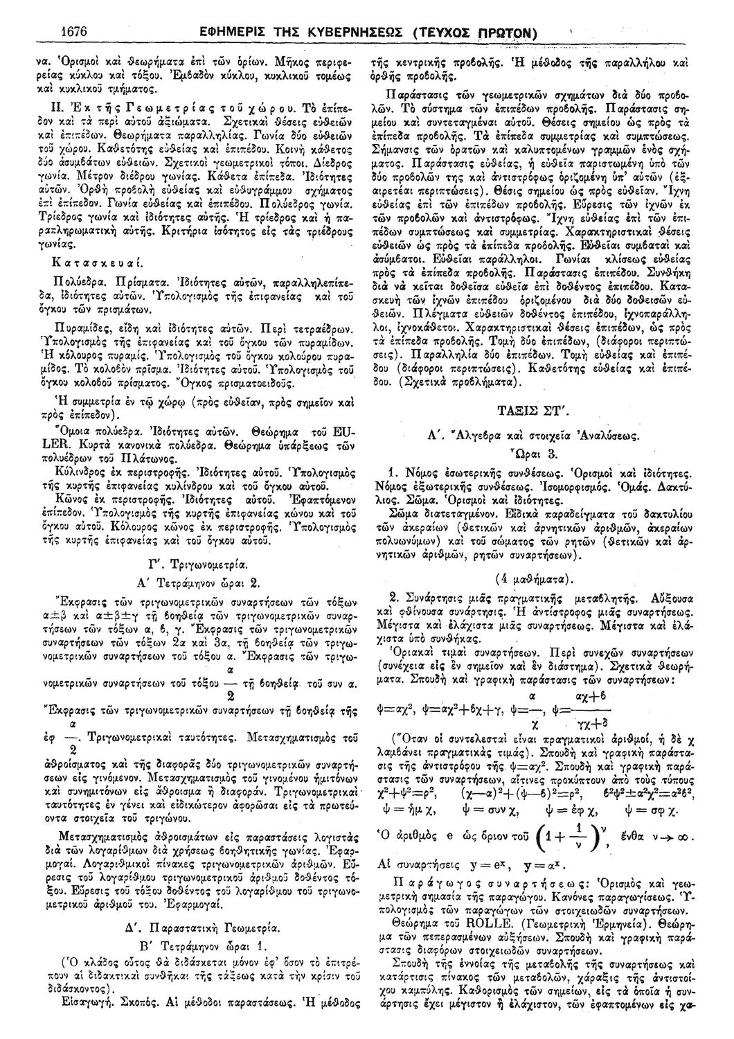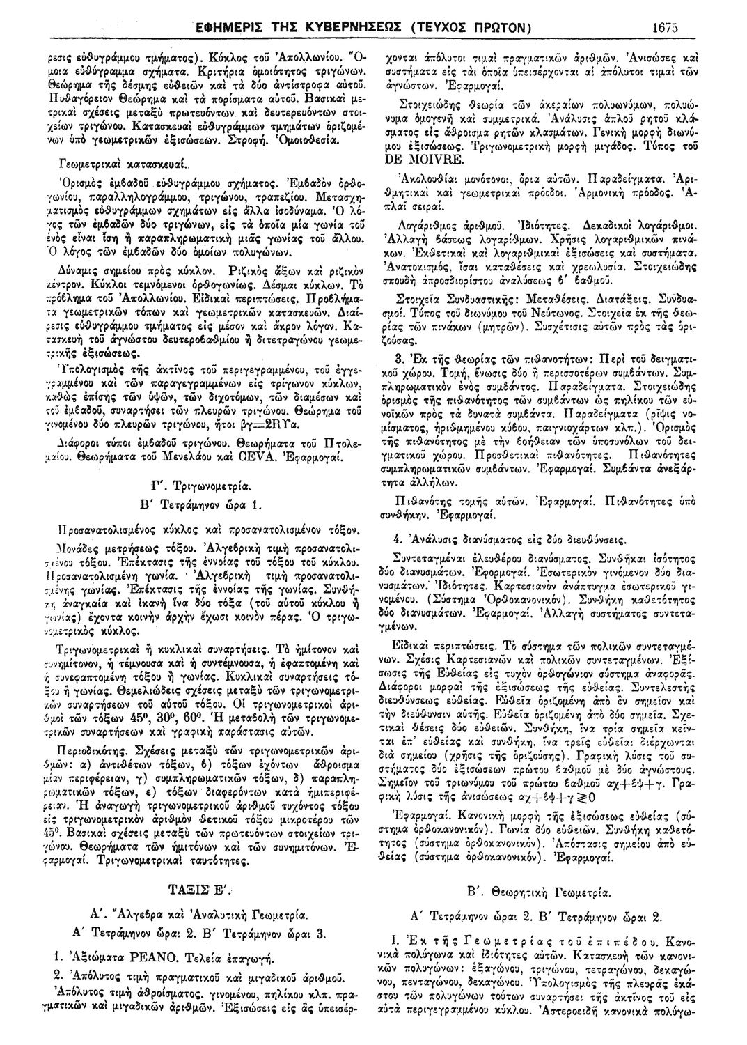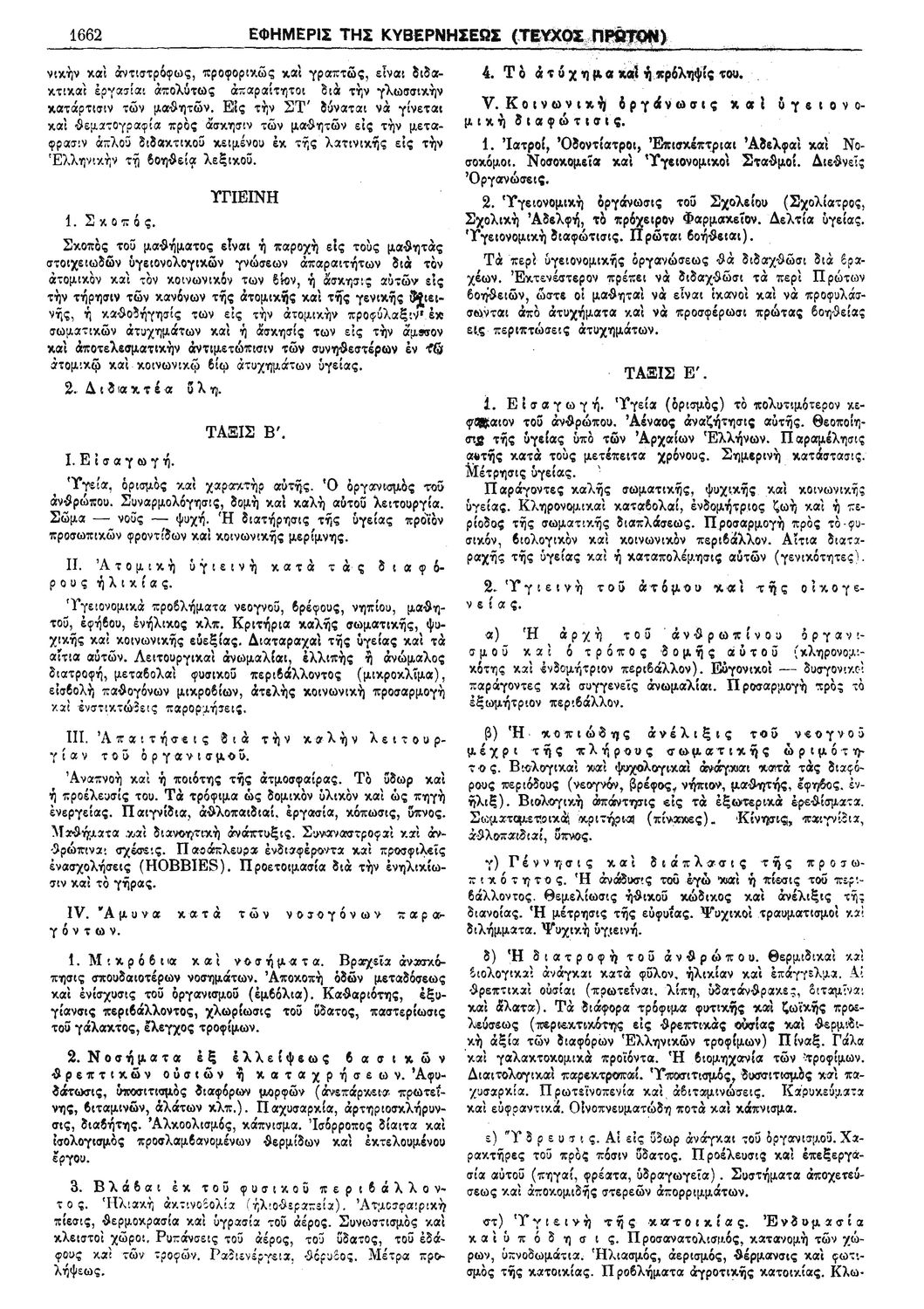 Β.Δ. 723 Περί των ωρολογίων και αναλυτικών προγραμμάτων των μαθημάτων των σχολείων της Μέσης Εκπαιδεύσεως
