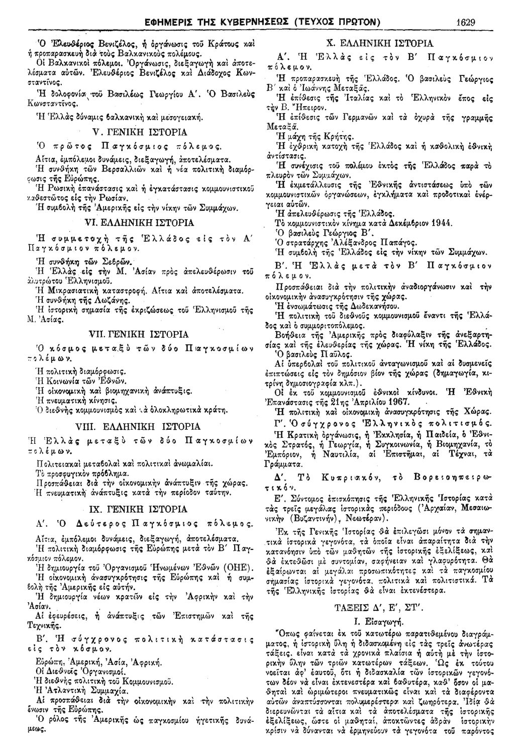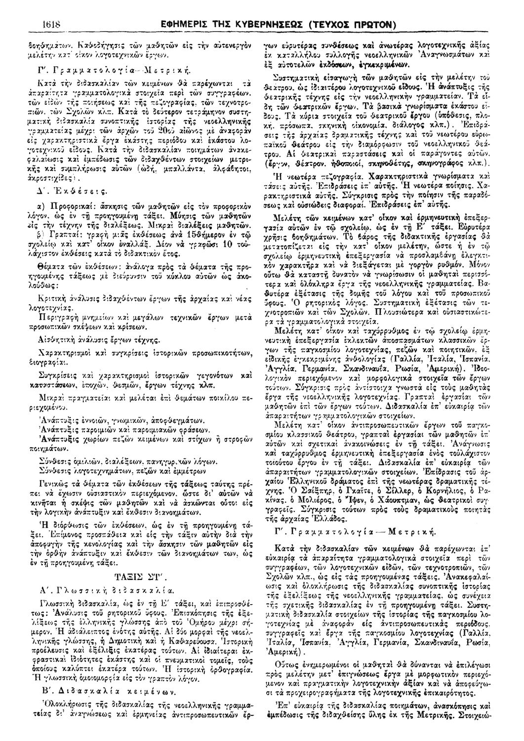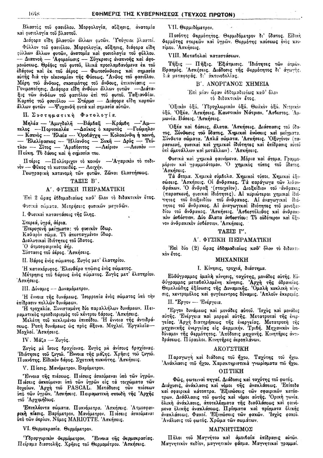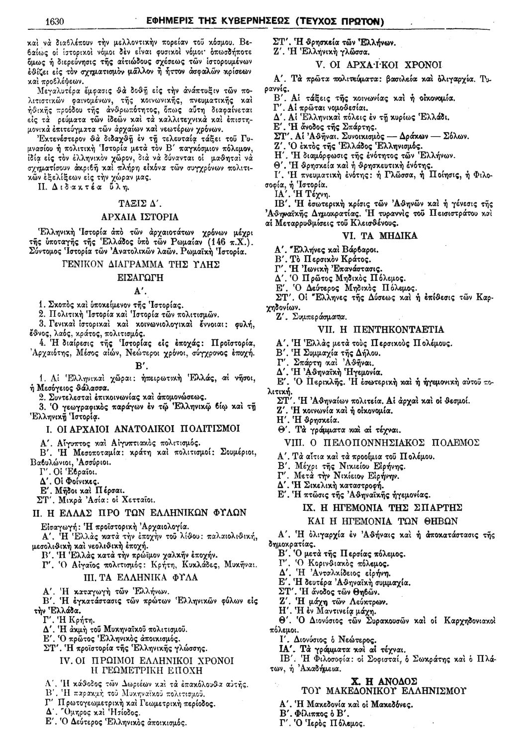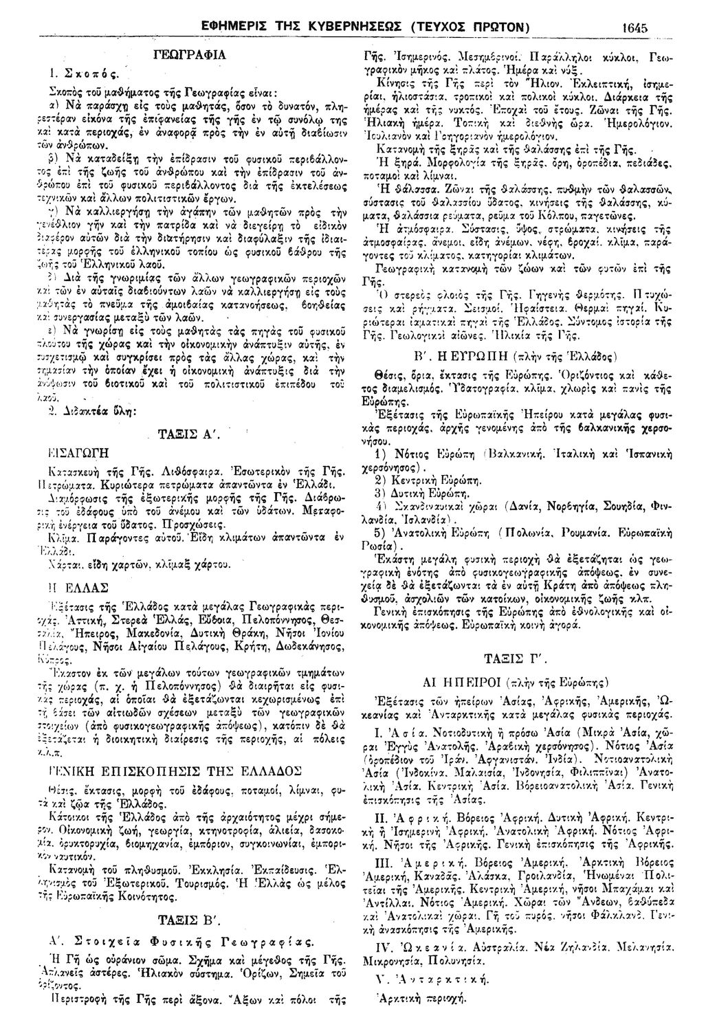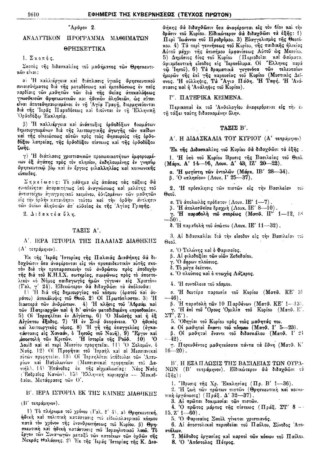 Β.Δ. 723 Περί των ωρολογίων και αναλυτικών προγραμμάτων των μαθημάτων των σχολείων της Μέσης Εκπαιδεύσεως