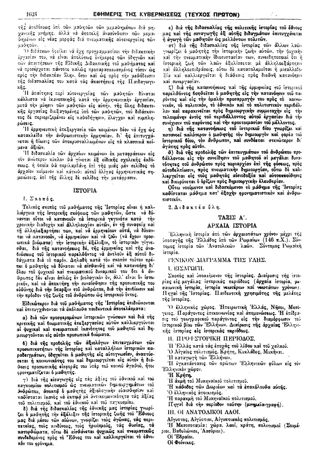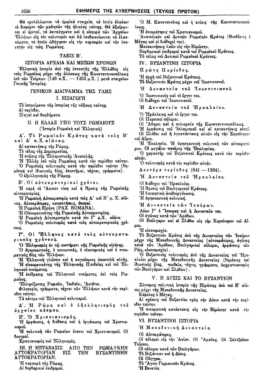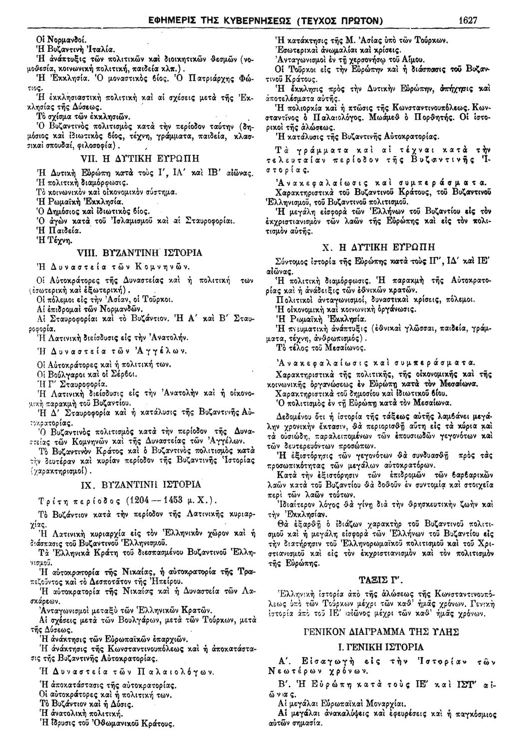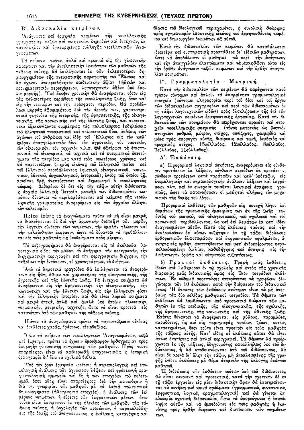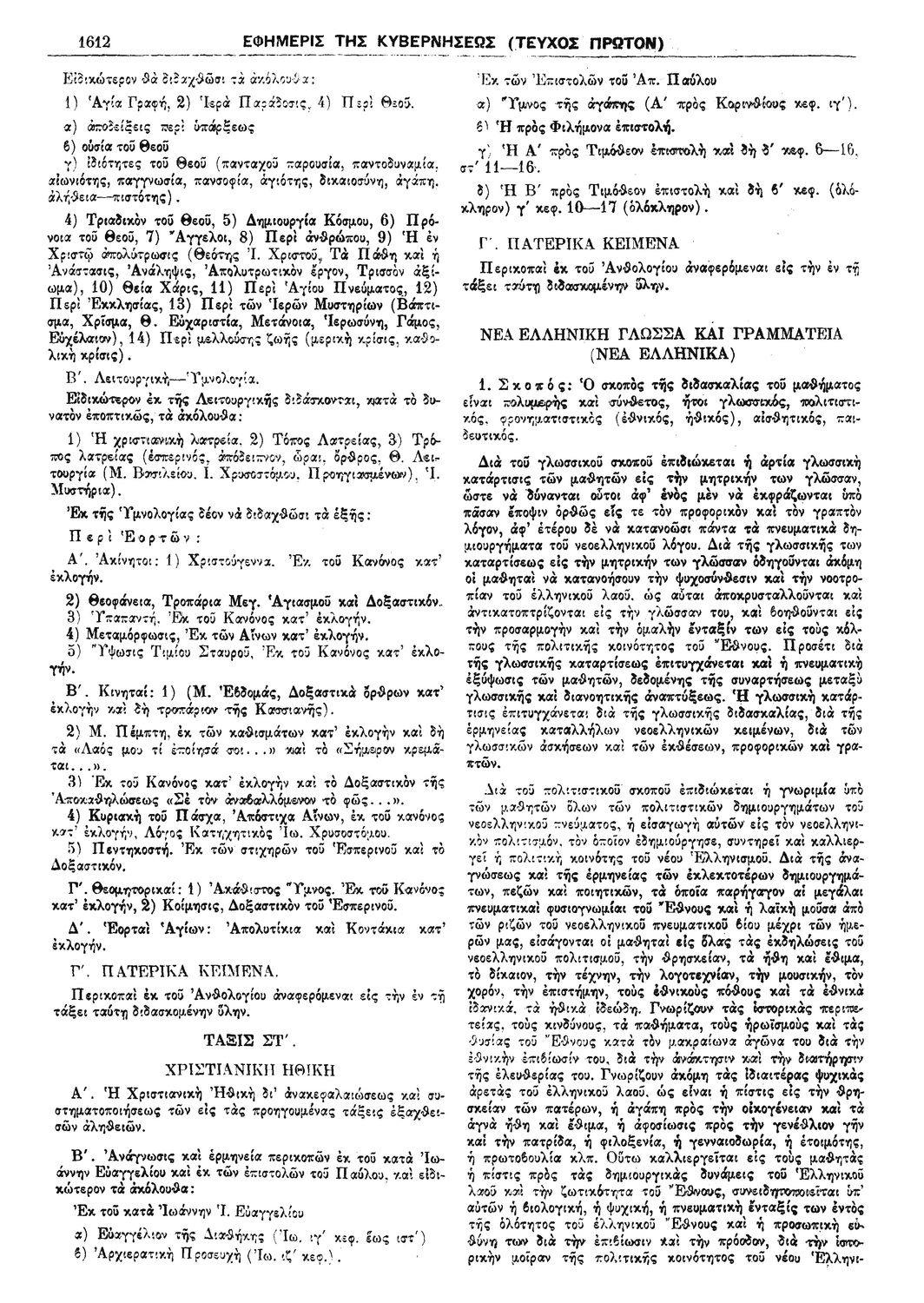 Β.Δ. 723 Περί των ωρολογίων και αναλυτικών προγραμμάτων των μαθημάτων των σχολείων της Μέσης Εκπαιδεύσεως