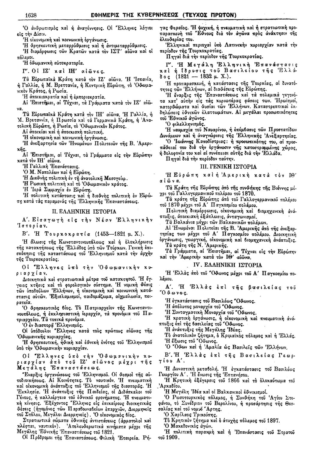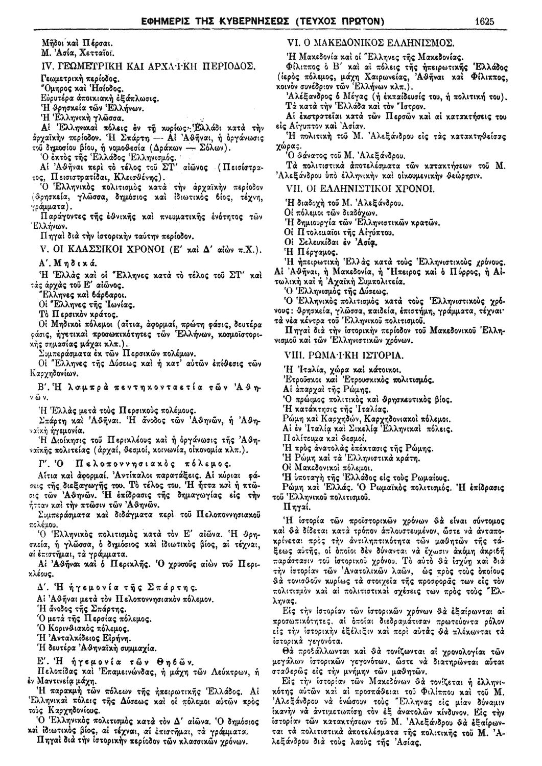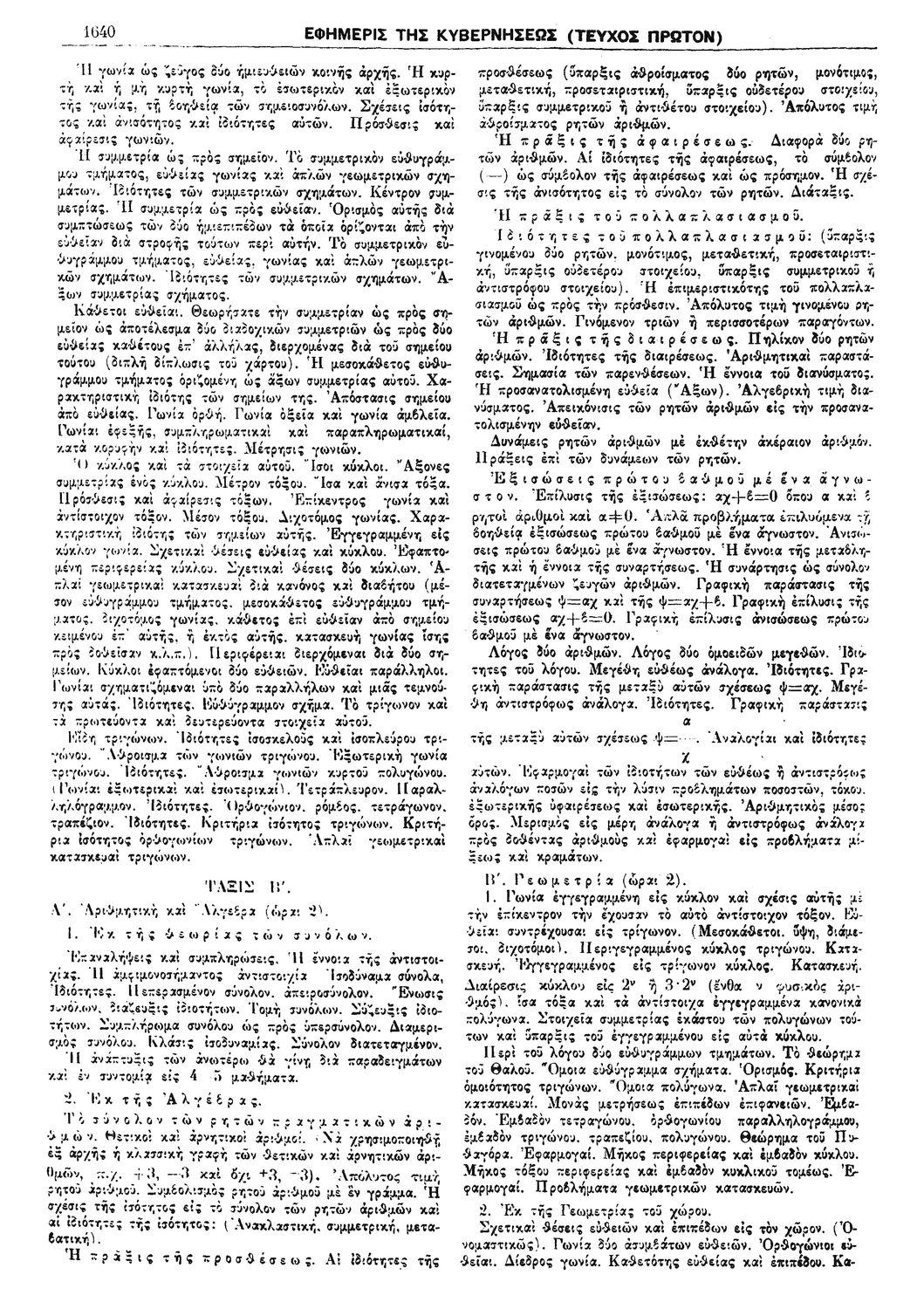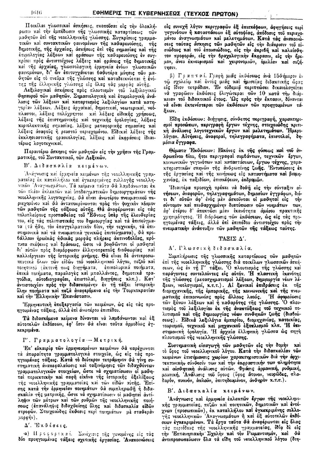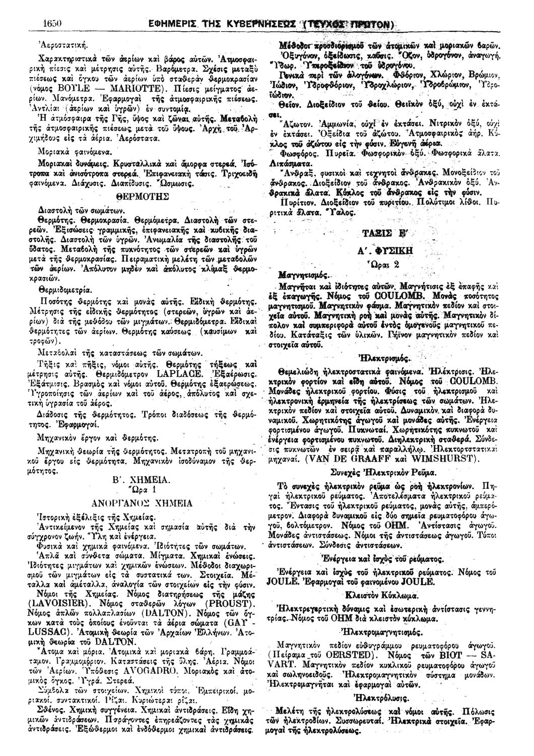 Β.Δ. 723 Περί των ωρολογίων και αναλυτικών προγραμμάτων των μαθημάτων των σχολείων της Μέσης Εκπαιδεύσεως