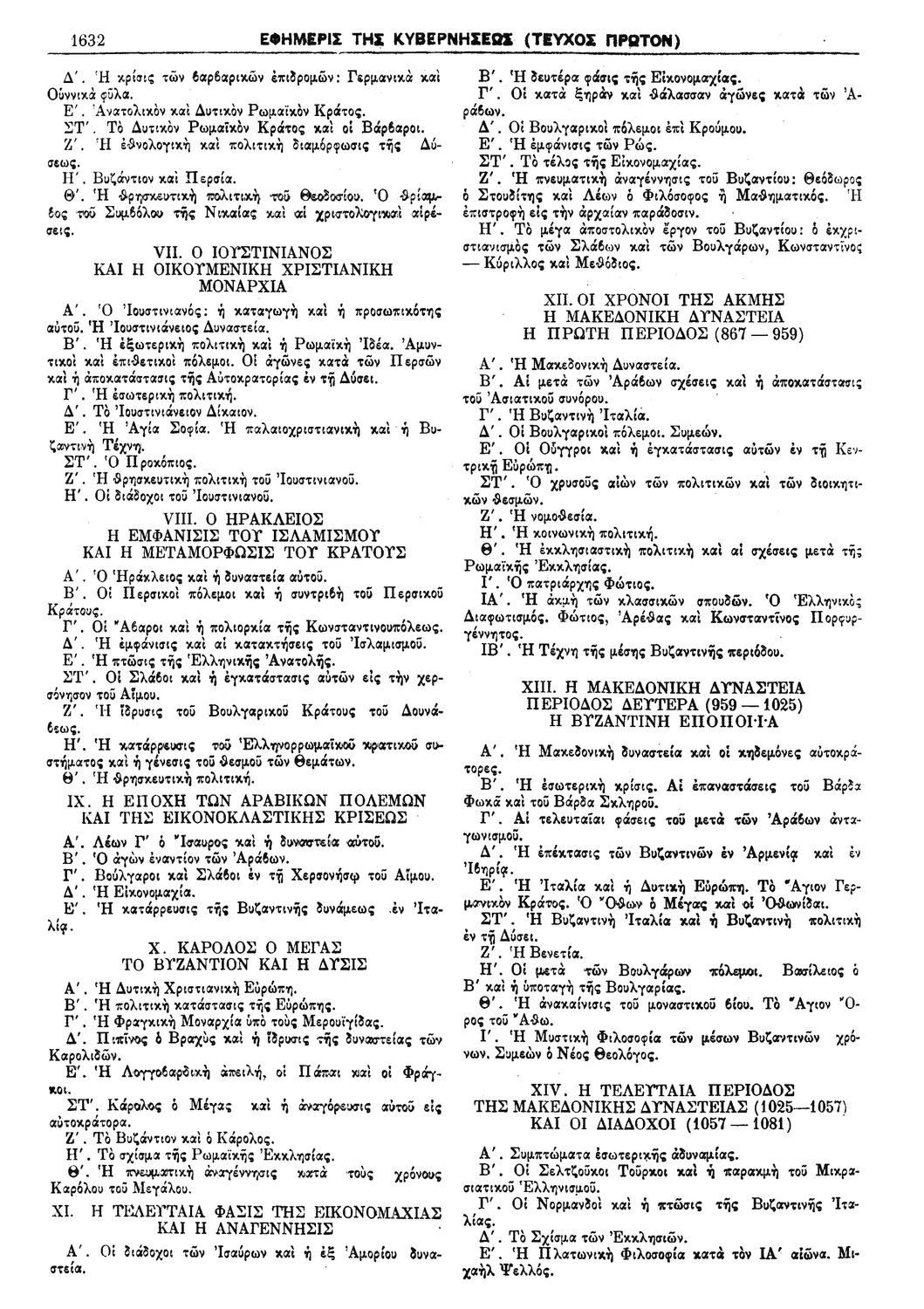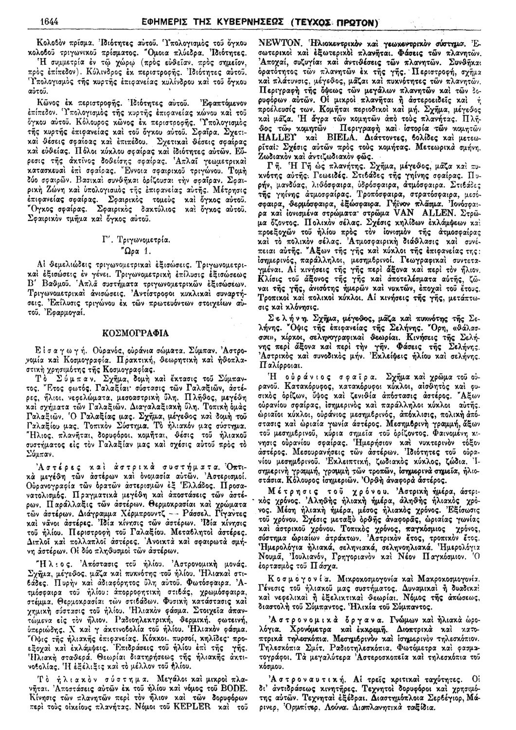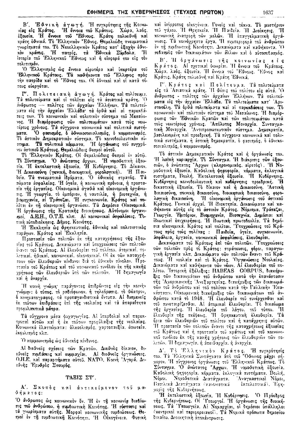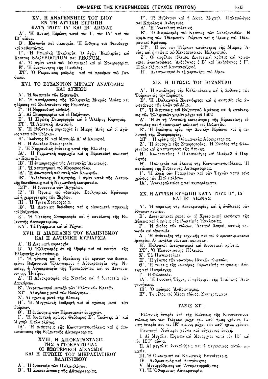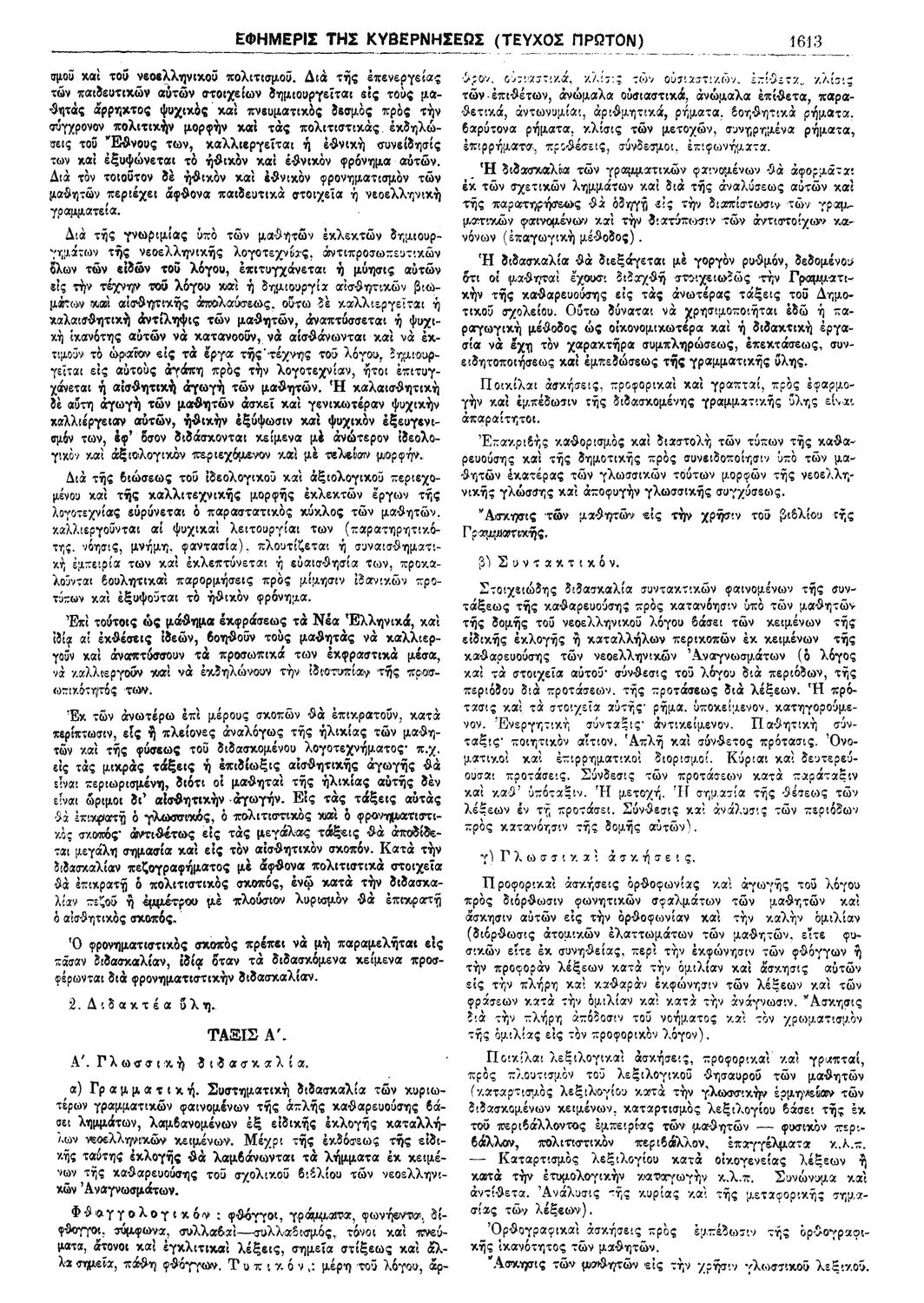 Β.Δ. 723 Περί των ωρολογίων και αναλυτικών προγραμμάτων των μαθημάτων των σχολείων της Μέσης Εκπαιδεύσεως