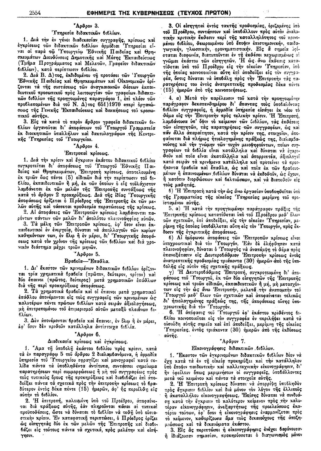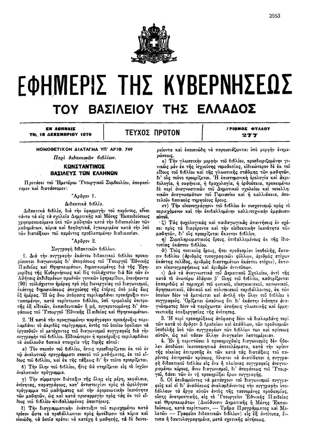 Παρουσίαση περιεχομένου: Ν.Δ. 749 Περί διδακτικών βιβλίων Σχετικές σελίδες: 1-4 |