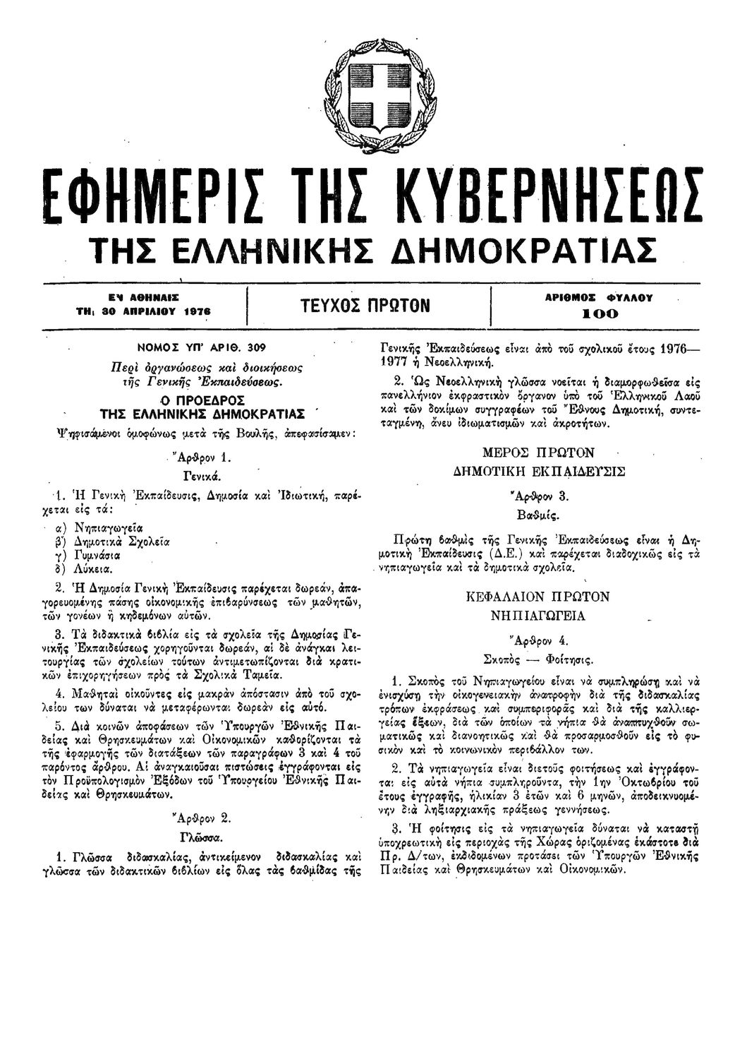 Νόμος 309 Περί οργανώσεως και διοικήσεως της γενικής εκπαιδεύσεως