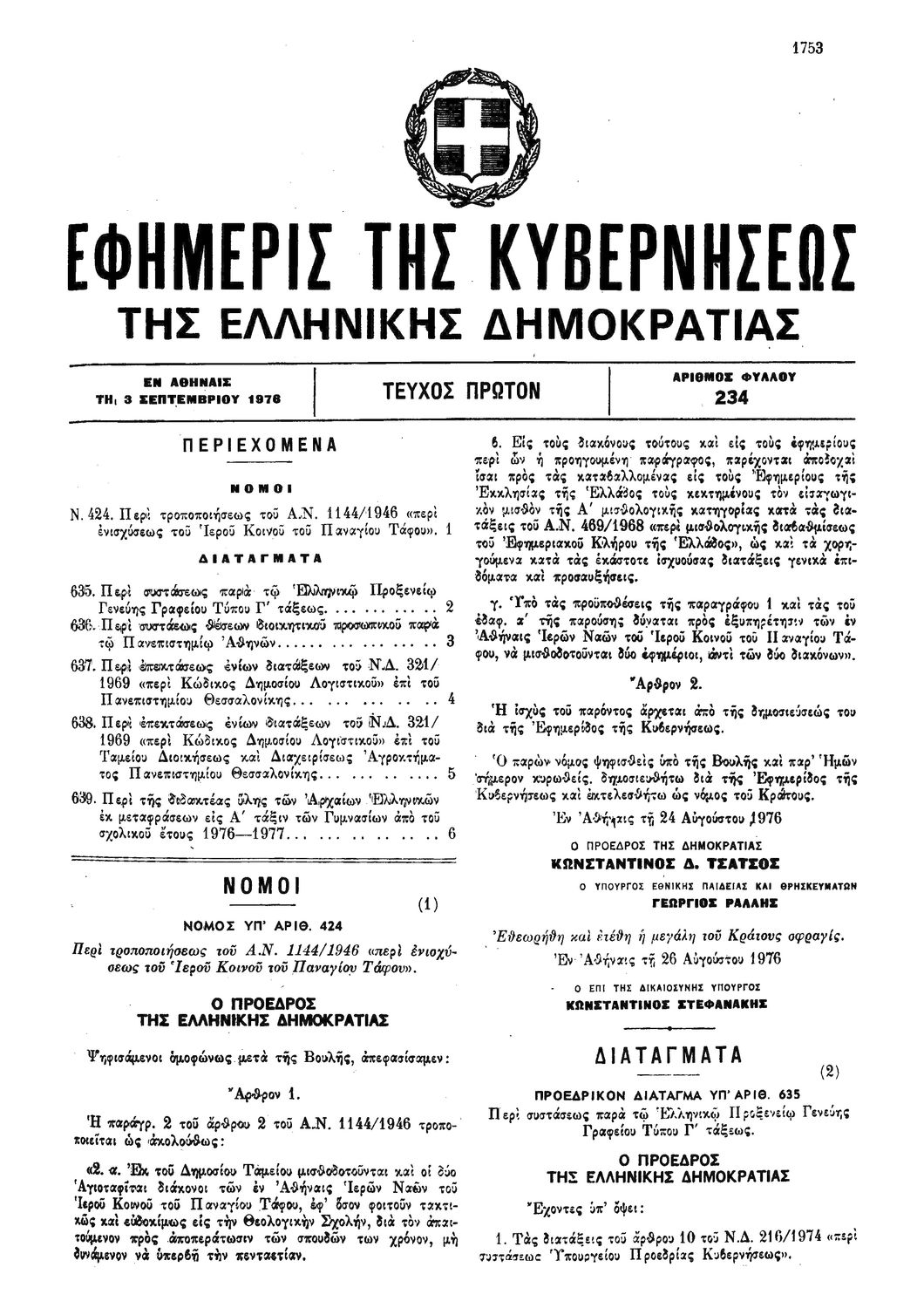 Κωδικός αναγνώρισης: 1976-234A Τίτλος: ΦΕΚ 234/03.11.1976, Τεύχος Α Μέγεθος και υπόστρωμα: Φεκ προγραμμάτων σπουδών, 2 σελίδες. |