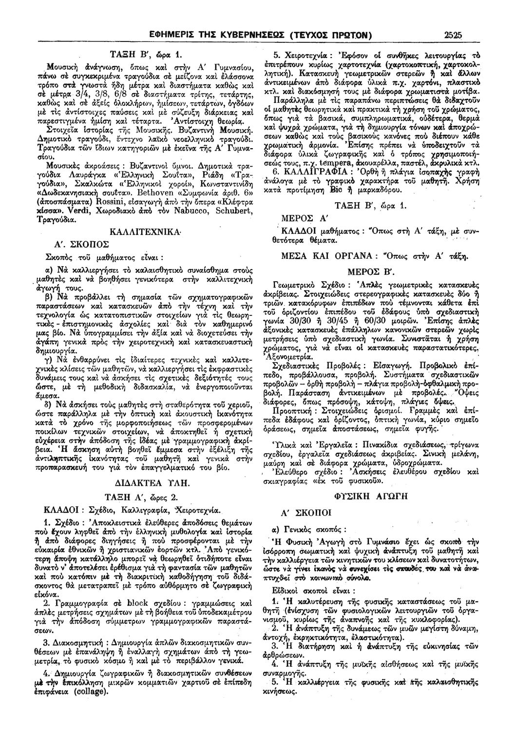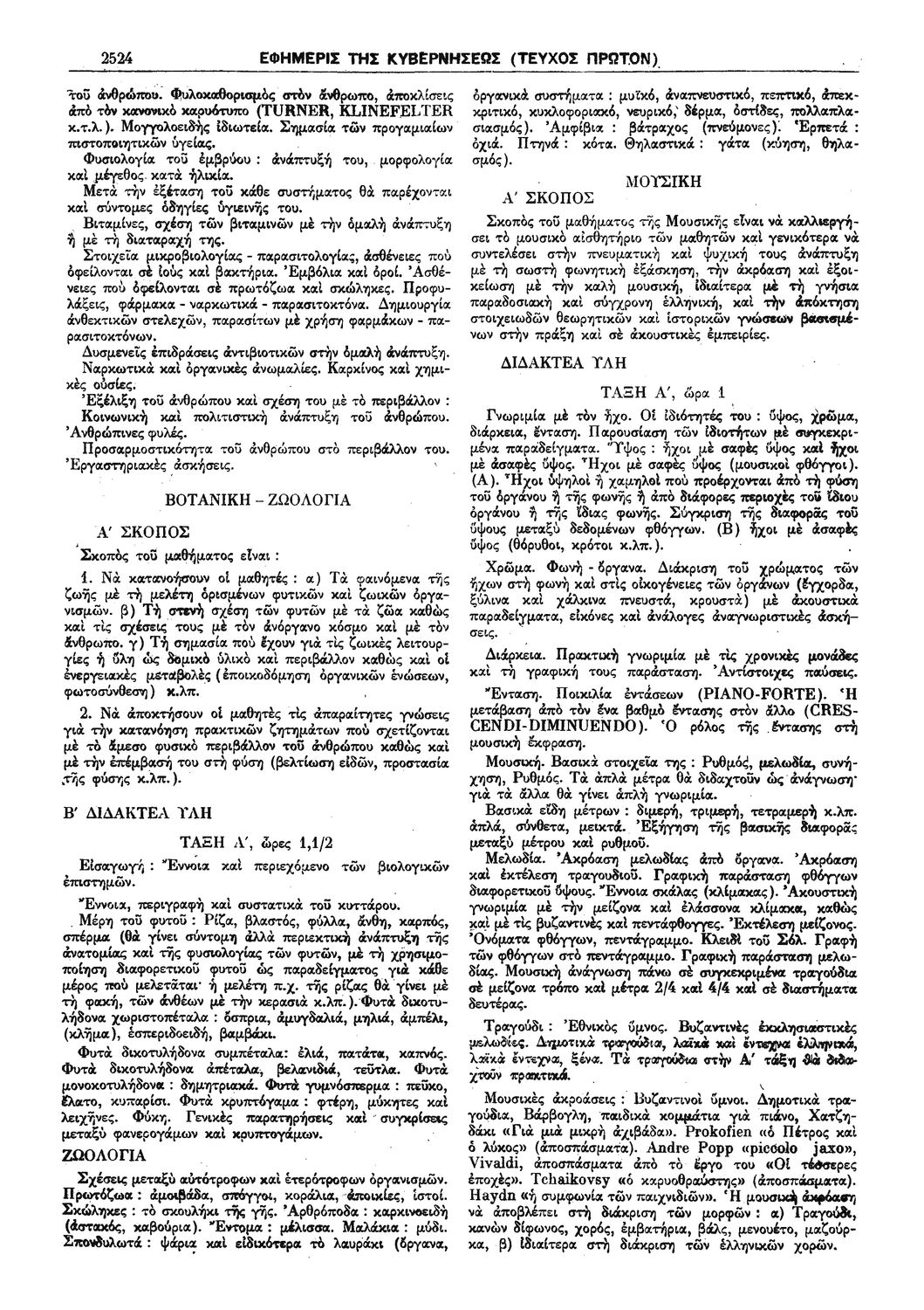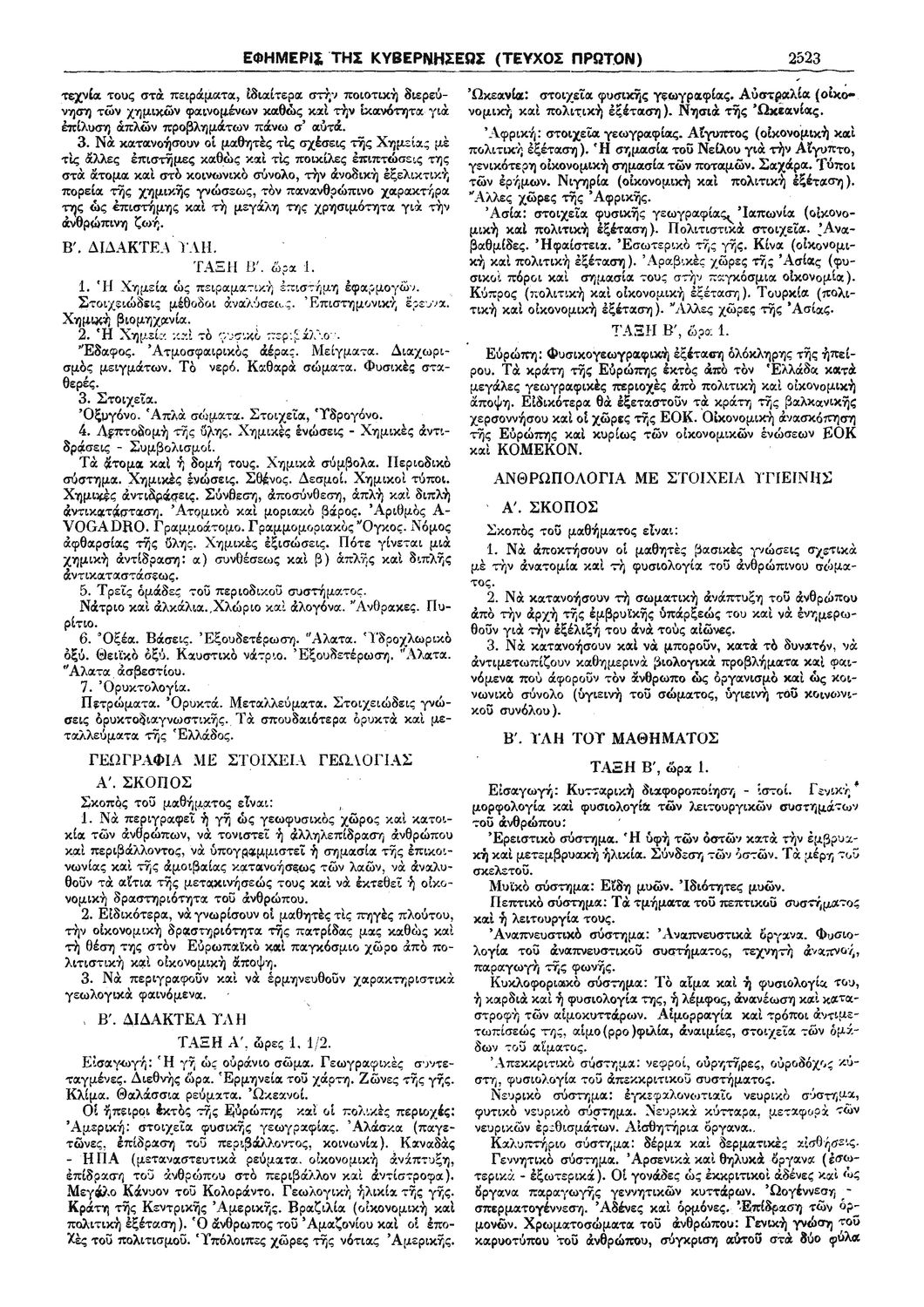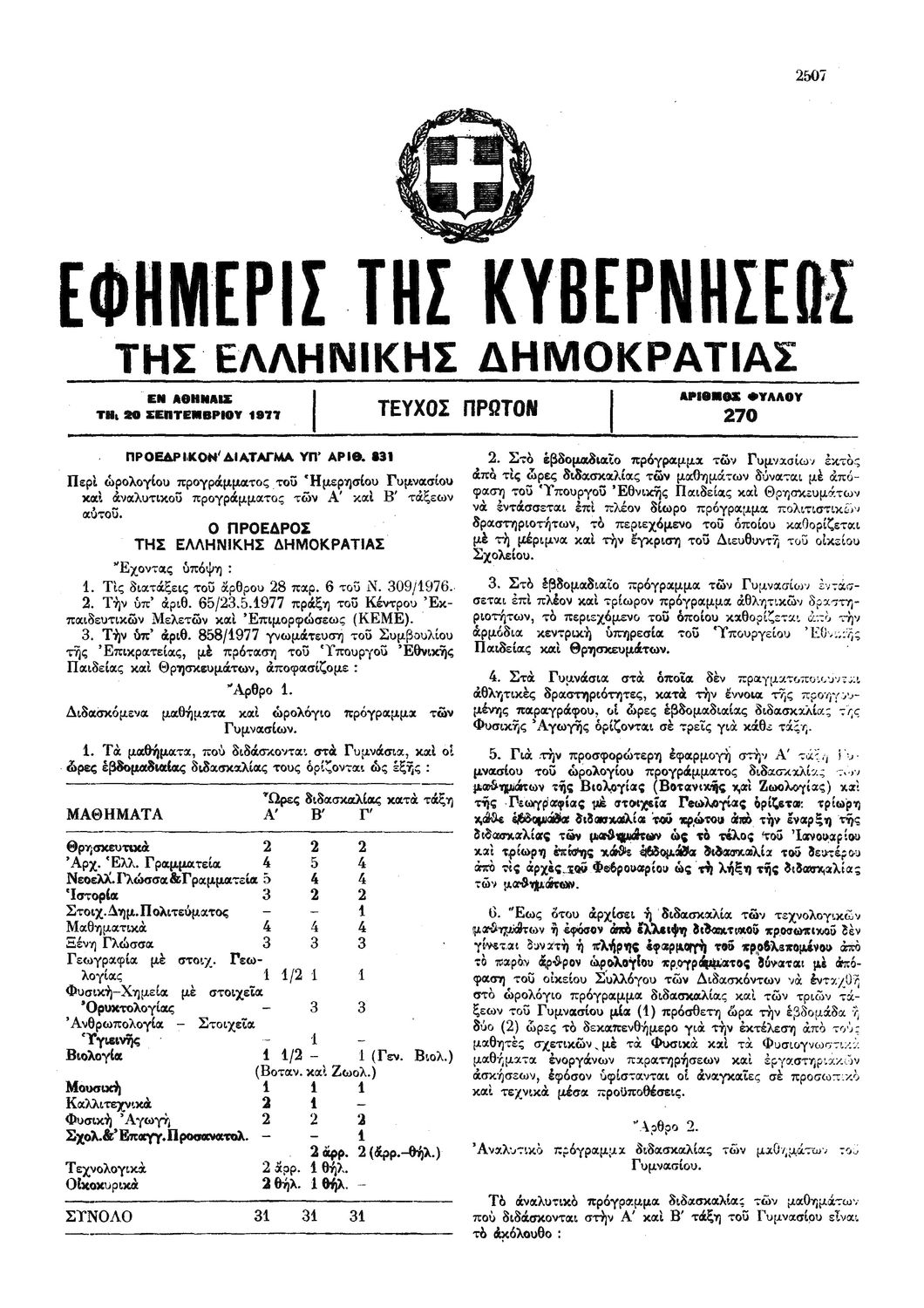 Π.Δ. 831 Περί ωρολογίου προγράμματος του Ημερησίου Γυμνασίου και αναλυτικού προγράμματος των Α' και Β' τάξεων αυτού