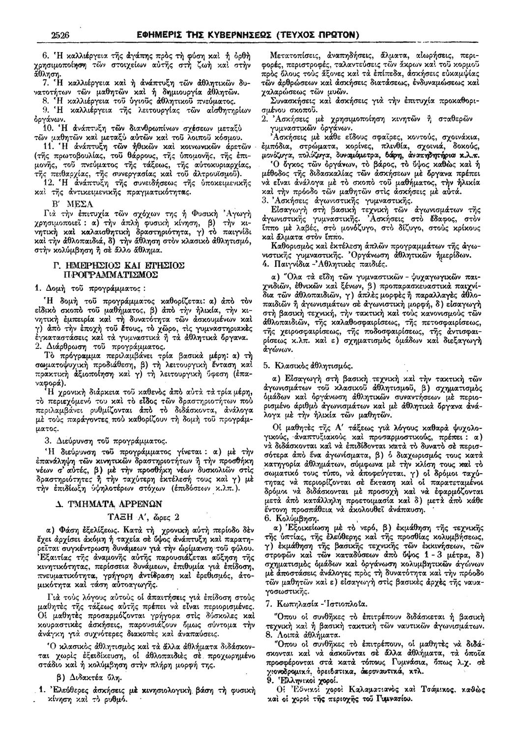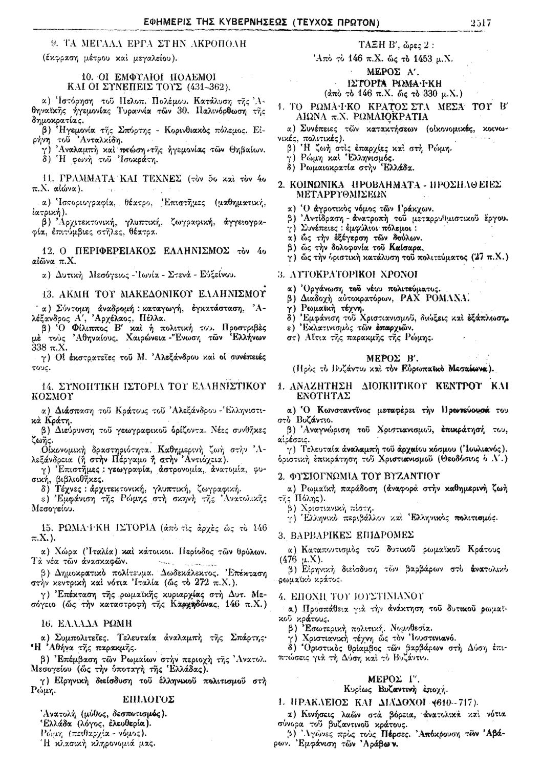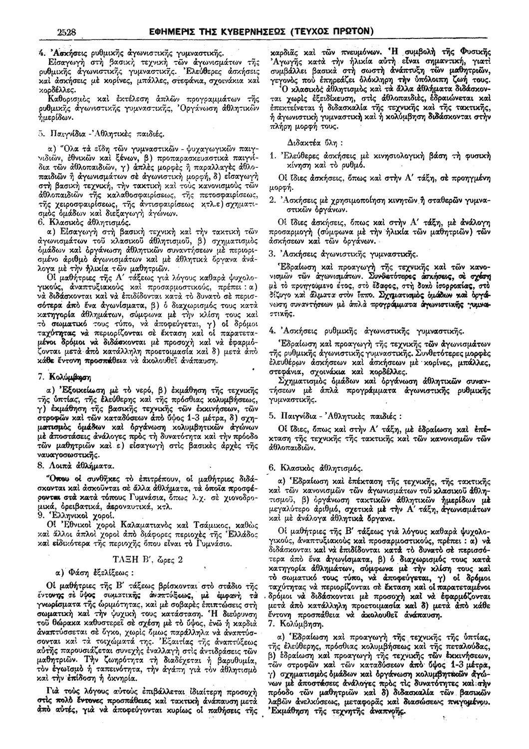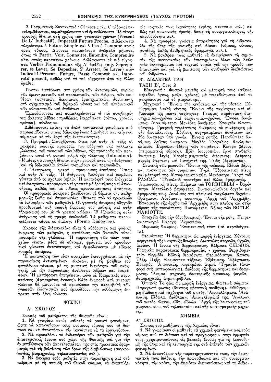 Π.Δ. 831 Περί ωρολογίου προγράμματος του Ημερησίου Γυμνασίου και αναλυτικού προγράμματος των Α' και Β' τάξεων αυτού