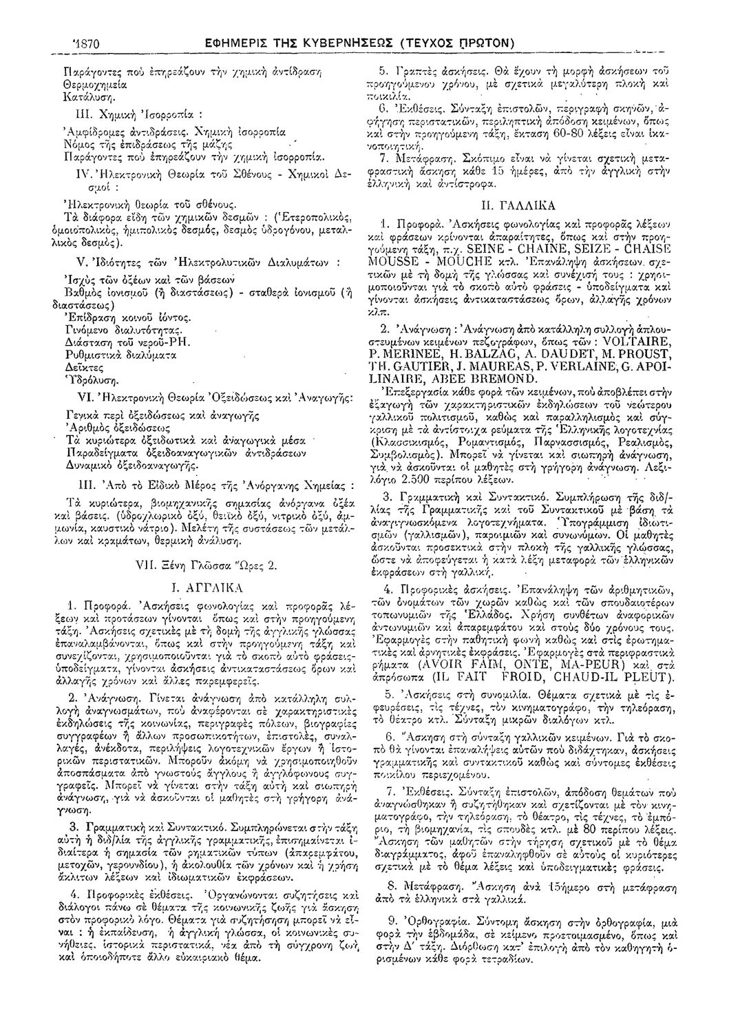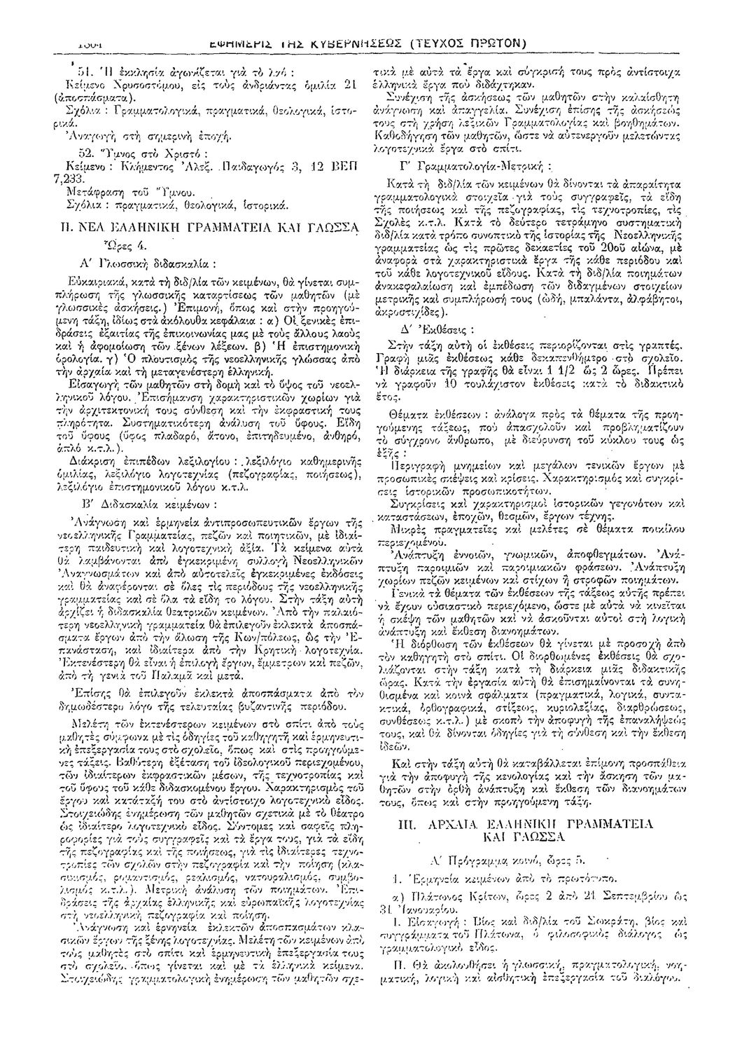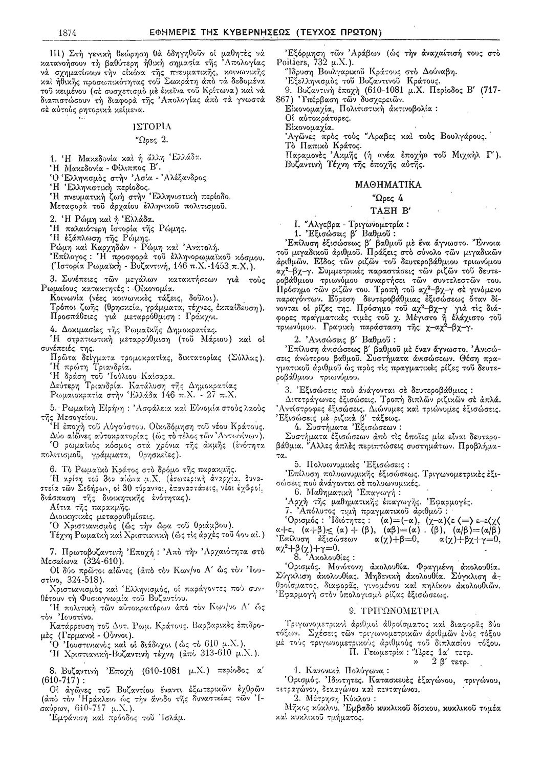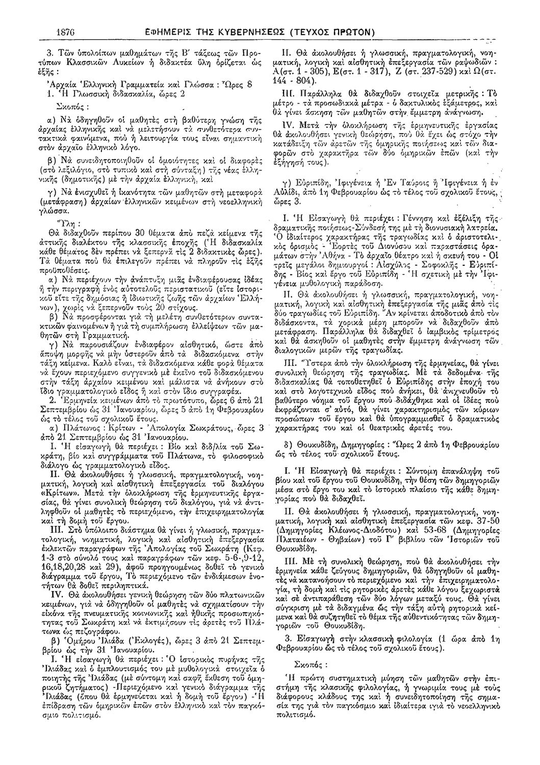 Π.Δ. 845 Περί του ωρολογίου και αναλυτικού προγράμματος της Β' τάξεως Ημερησίου και Εσπερινού Λυκείου Γενικής Κατευθύνσεως και του προτύπου Κλασσικού Λυκείου
