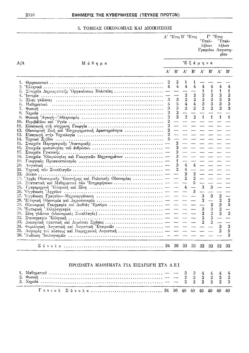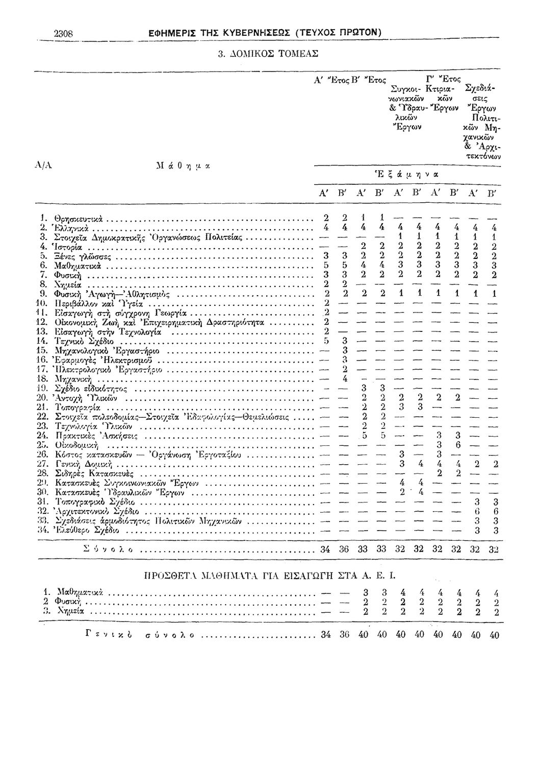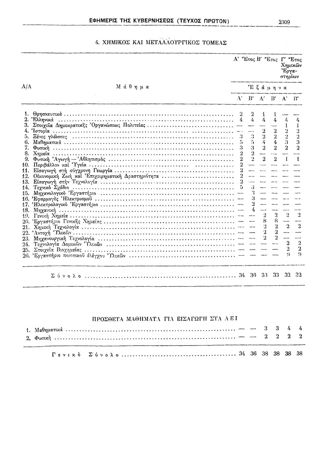 Π.Δ. 784 Περί ωρολογίων Προγραμμάτων της Πρώτης (Α'), Δευτέρας (Β'), και Τρίτης (Γ') τάξεως των ημερησίων Τεχνικών και Επαγγελματικών Λυκείων κατά τομέα