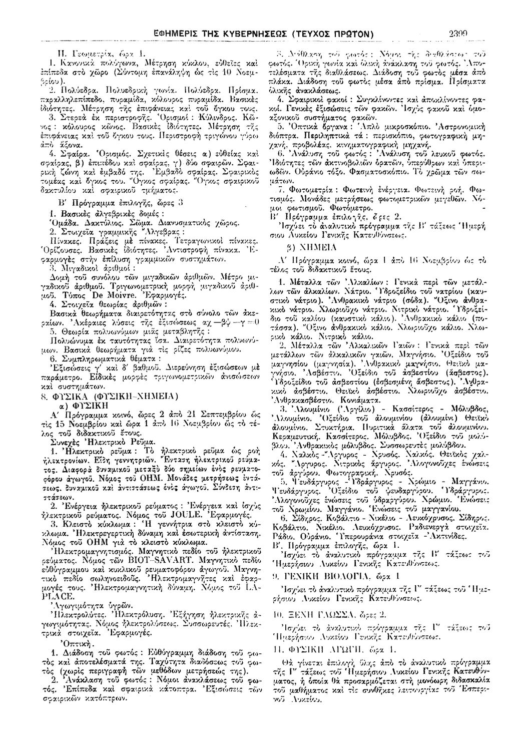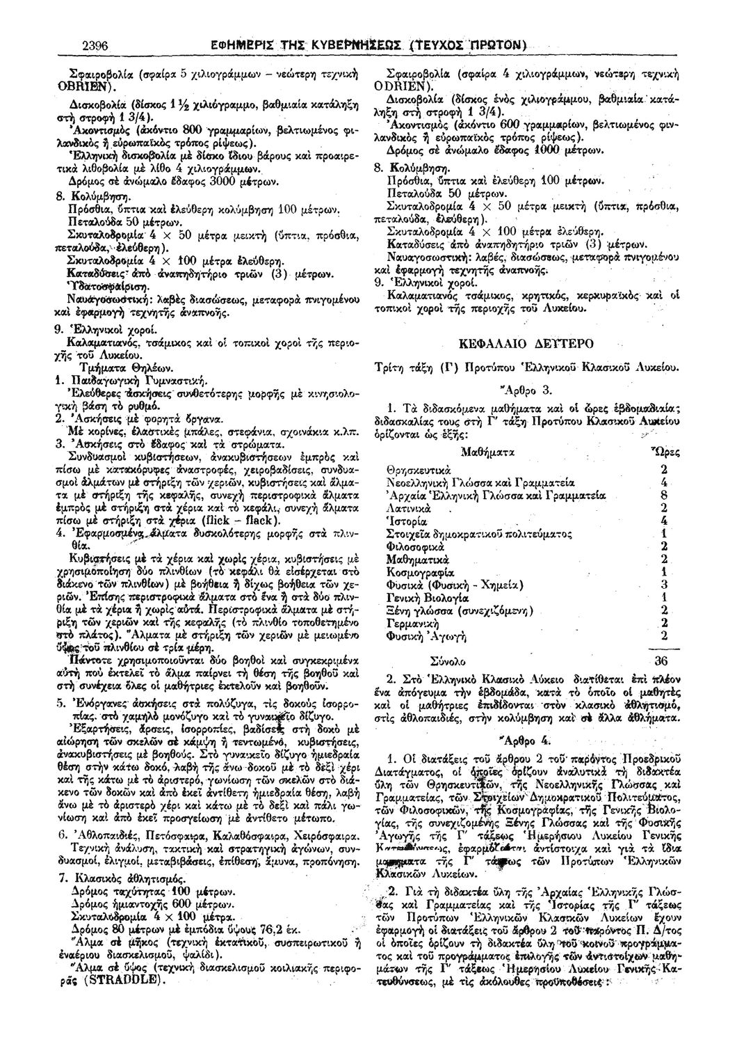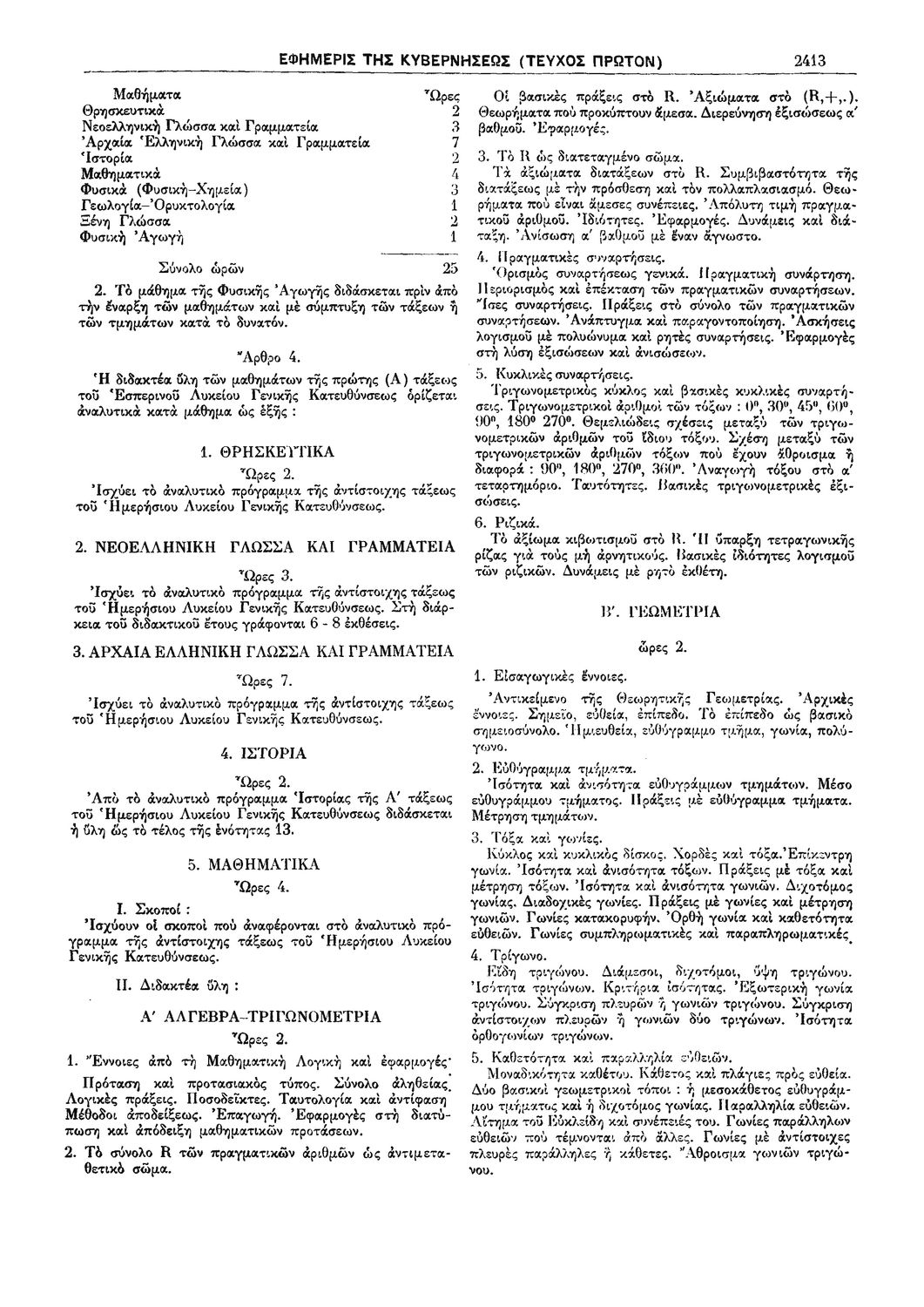 Π.Δ. 826 Περί του ωρολογίου και αναλυτικού προγράμματος της Γ' τάξεως Ημερησίου Λυκείου Γενικής Κατευθύνσεως, της Γ' τάξεως Προτύποι Ελληνικού Κλασσικού Λυκείου και των Γ' και Δ' τάξεων Εσπερινού Λυκείου Γενικής Κατευθύνσεως