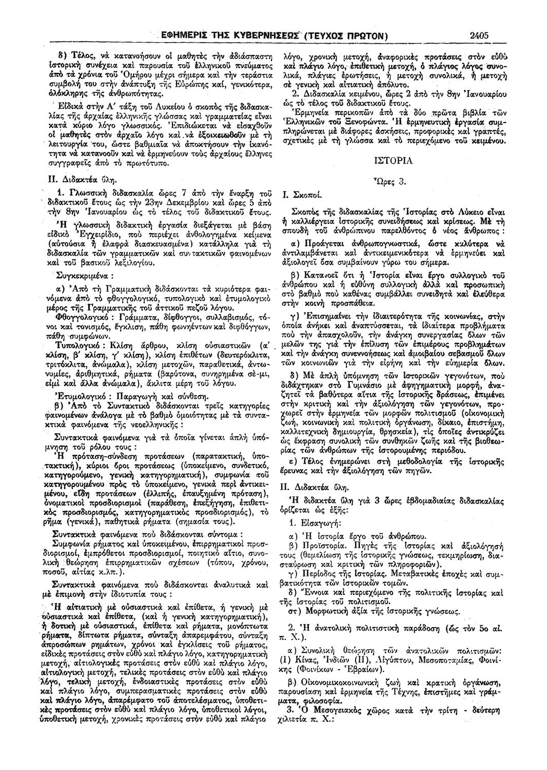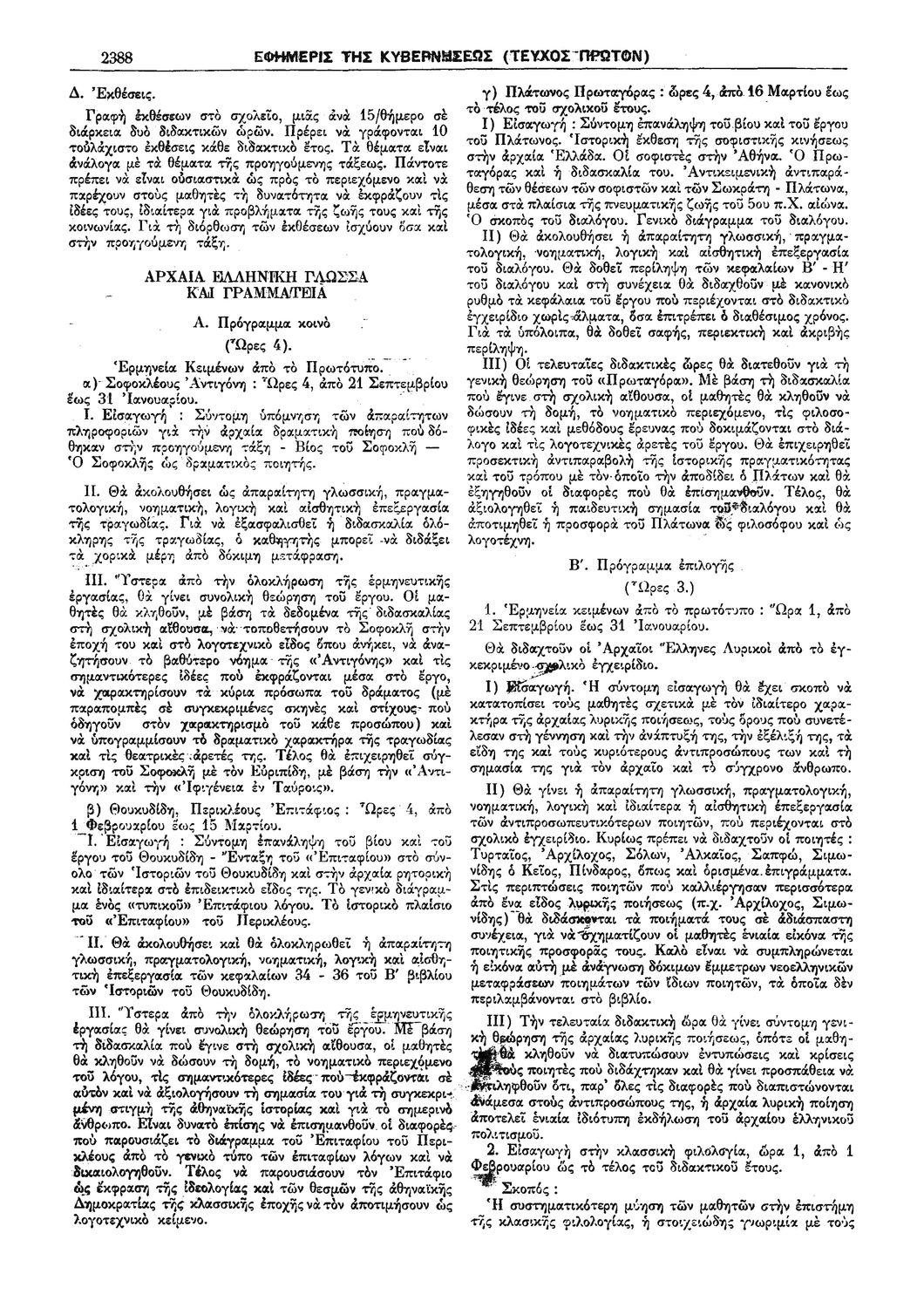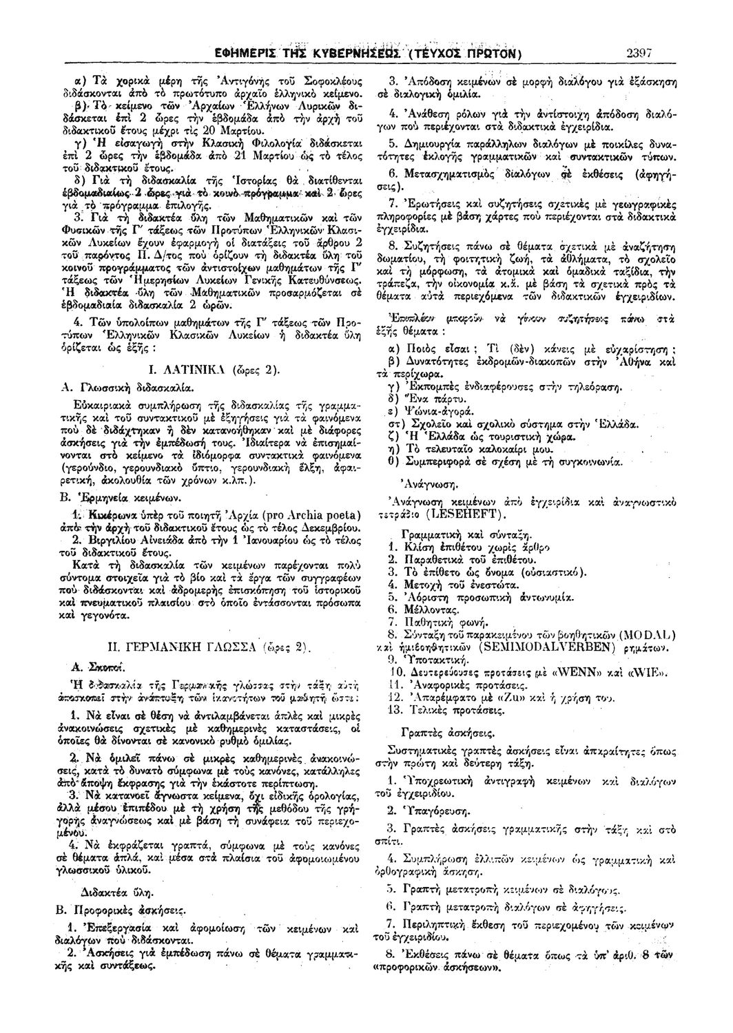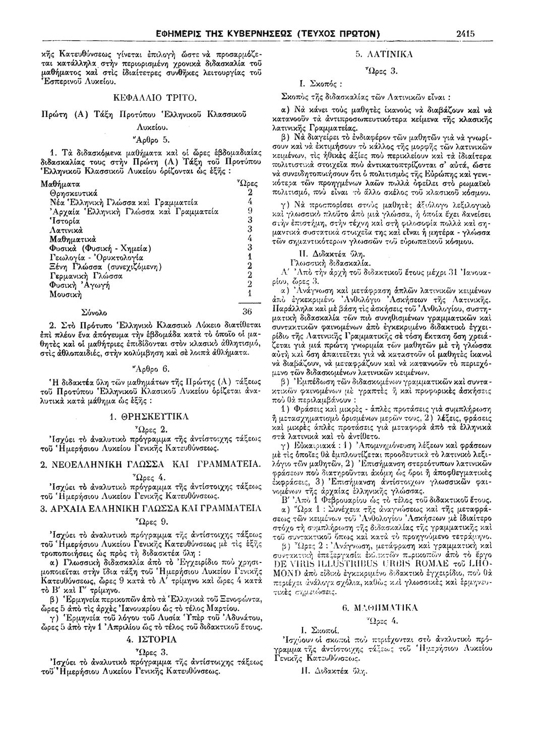 Παρουσίαση περιεχομένου: Π.Δ. 826 Περί του ωρολογίου και αναλυτικού προγράμματος της Γ' τάξεως Ημερησίου Λυκείου Γενικής Κατευθύνσεως, της Γ' τάξεως Προτύποι Ελληνικού Κλασσικού Λυκείου και των Γ' και Δ' τάξεων Εσπερινού Λυκείου Γενικής Κατευθύνσεως Σχετικές σελίδες: 1-16 |