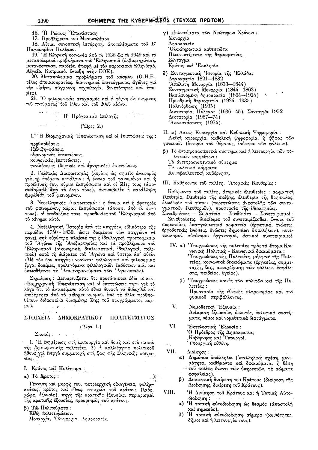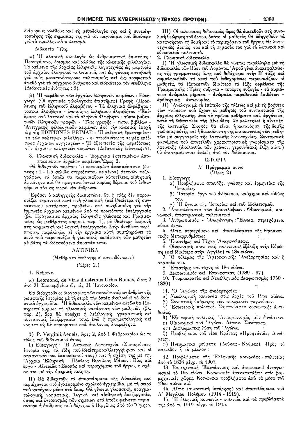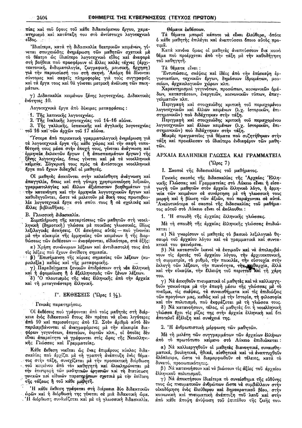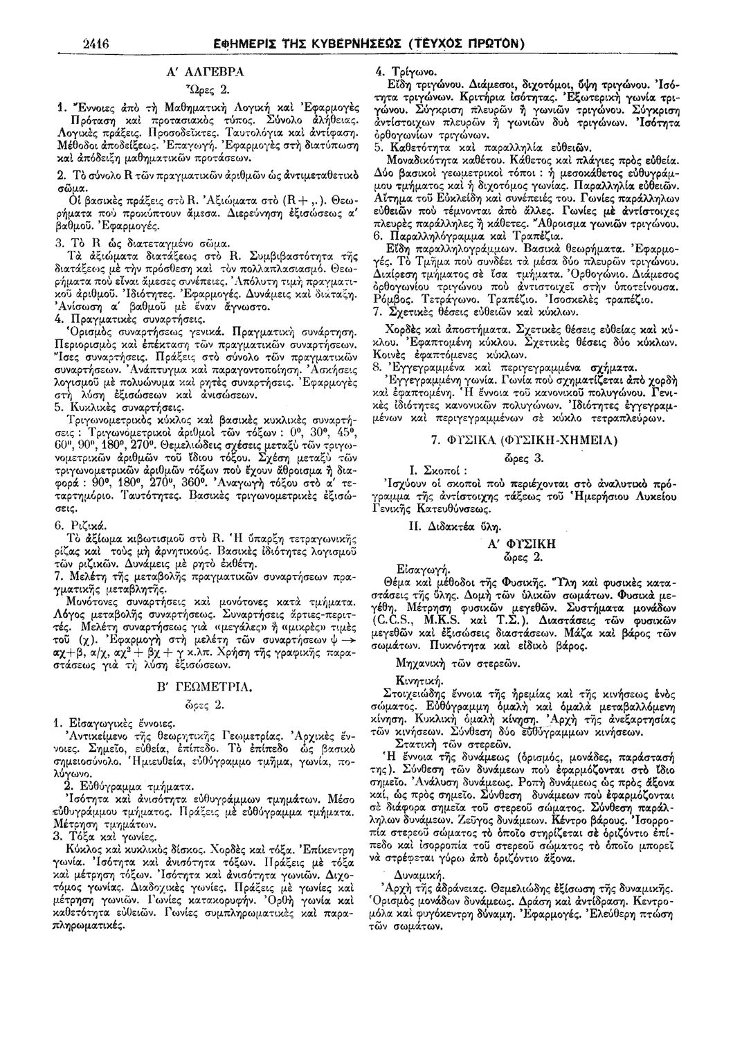 Παρουσίαση περιεχομένου: Π.Δ. 826 Περί του ωρολογίου και αναλυτικού προγράμματος της Γ' τάξεως Ημερησίου Λυκείου Γενικής Κατευθύνσεως, της Γ' τάξεως Προτύποι Ελληνικού Κλασσικού Λυκείου και των Γ' και Δ' τάξεων Εσπερινού Λυκείου Γενικής Κατευθύνσεως Σχετικές σελίδες: 1-16 |