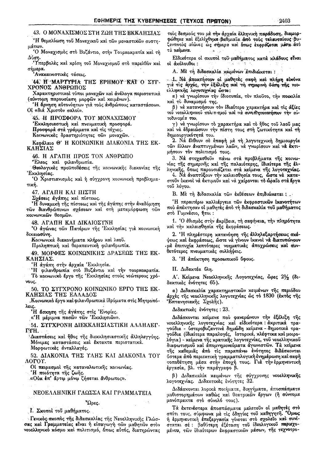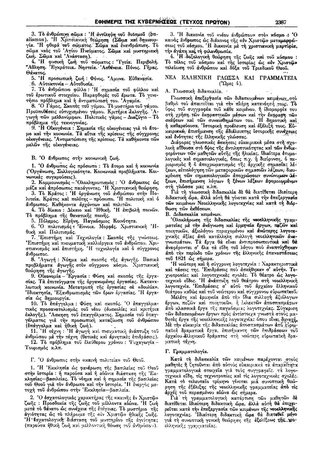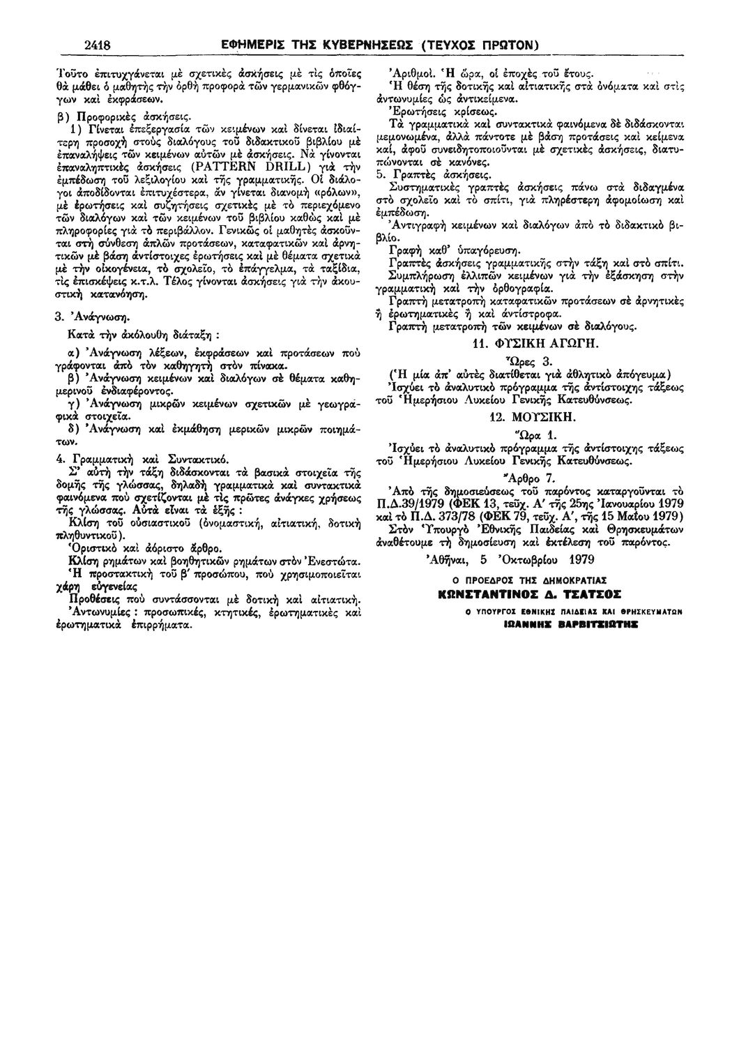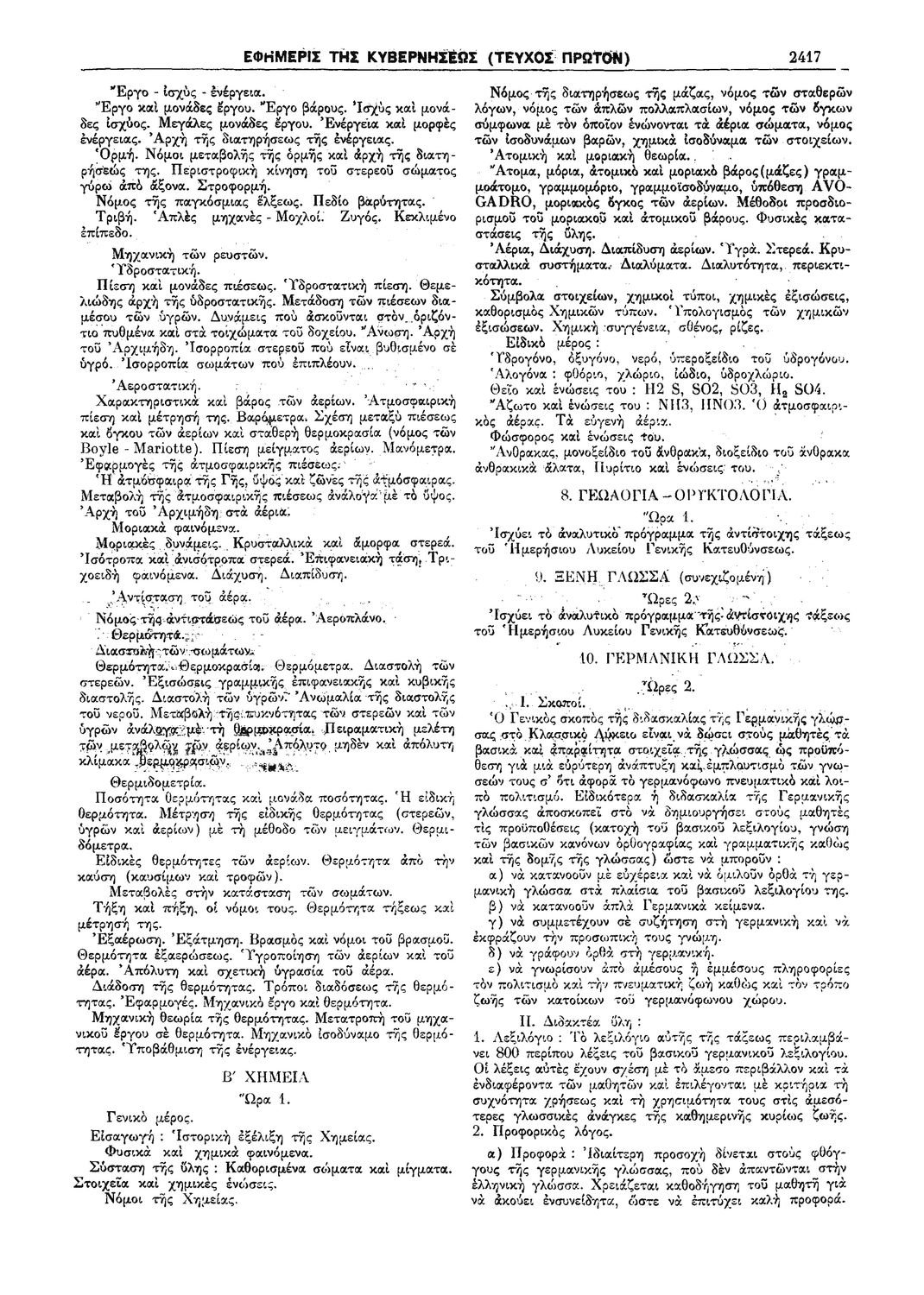 Παρουσίαση περιεχομένου: Π.Δ. 826 Περί του ωρολογίου και αναλυτικού προγράμματος της Γ' τάξεως Ημερησίου Λυκείου Γενικής Κατευθύνσεως, της Γ' τάξεως Προτύποι Ελληνικού Κλασσικού Λυκείου και των Γ' και Δ' τάξεων Εσπερινού Λυκείου Γενικής Κατευθύνσεως Σχετικές σελίδες: 1-16 |