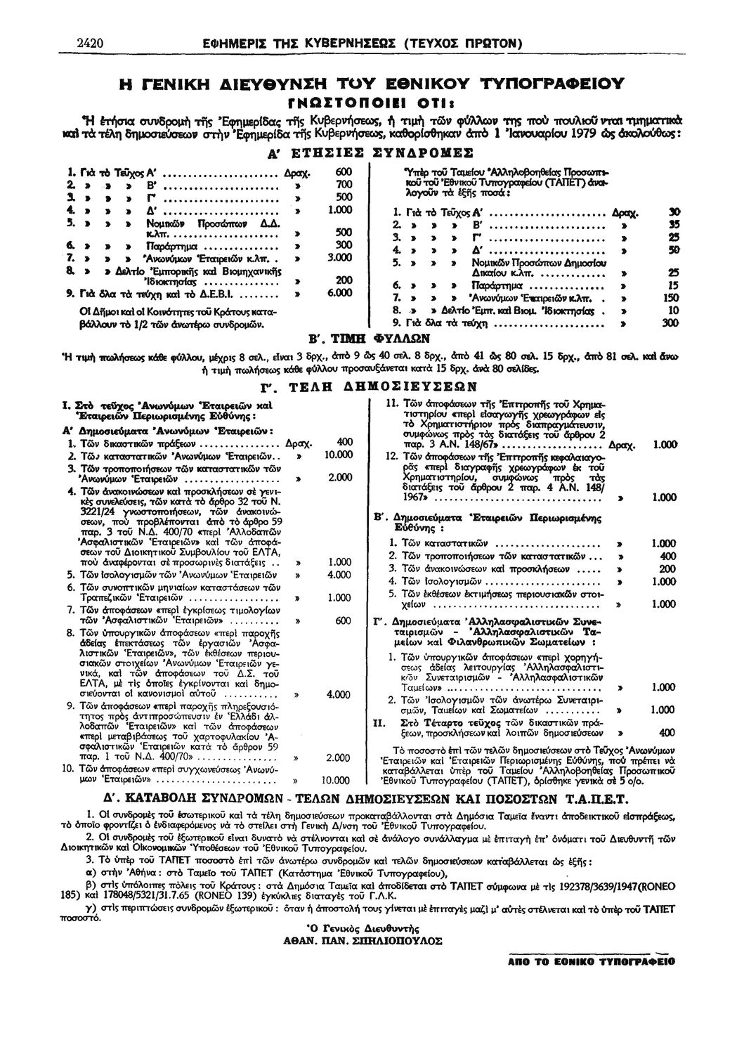 Κωδικός αναγνώρισης: 1979-240A Τίτλος: ΦΕΚ 240/23.10.1979, Τεύχος Α Μέγεθος και υπόστρωμα: Φεκ προγραμμάτων σπουδών, 16 σελίδες. |