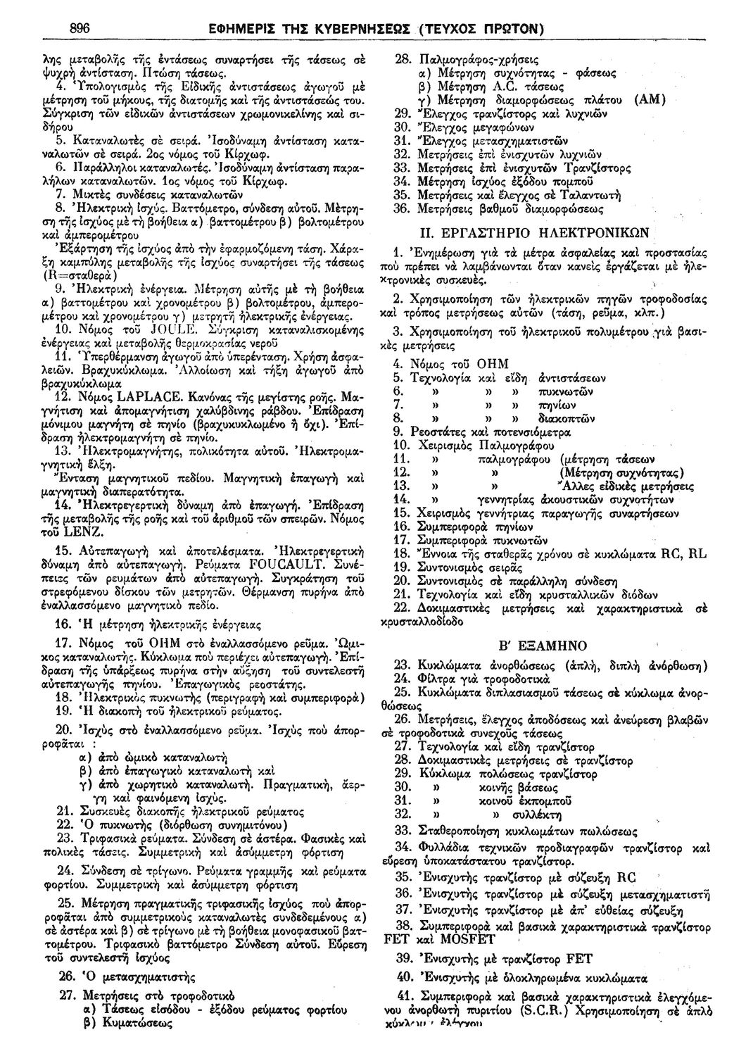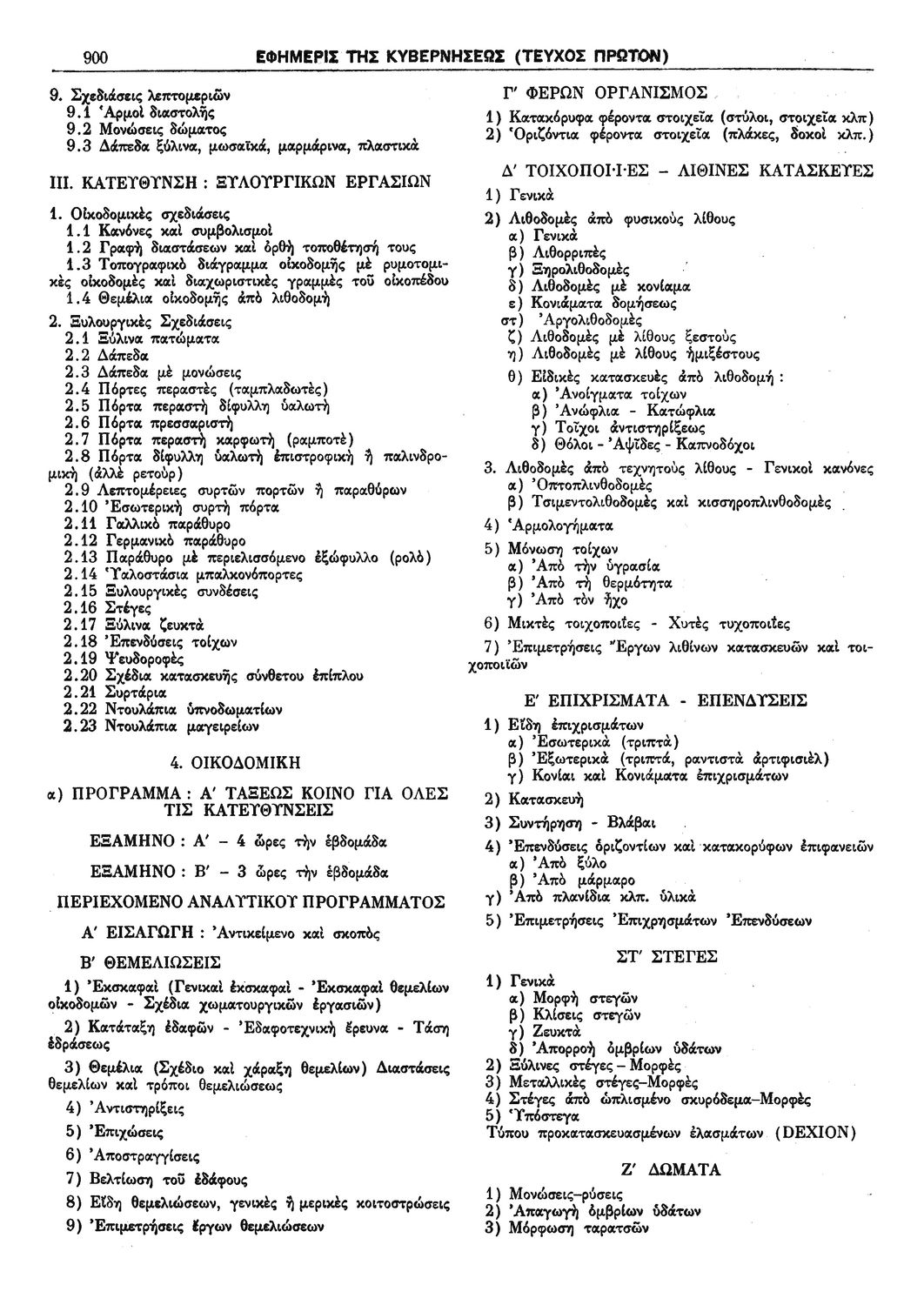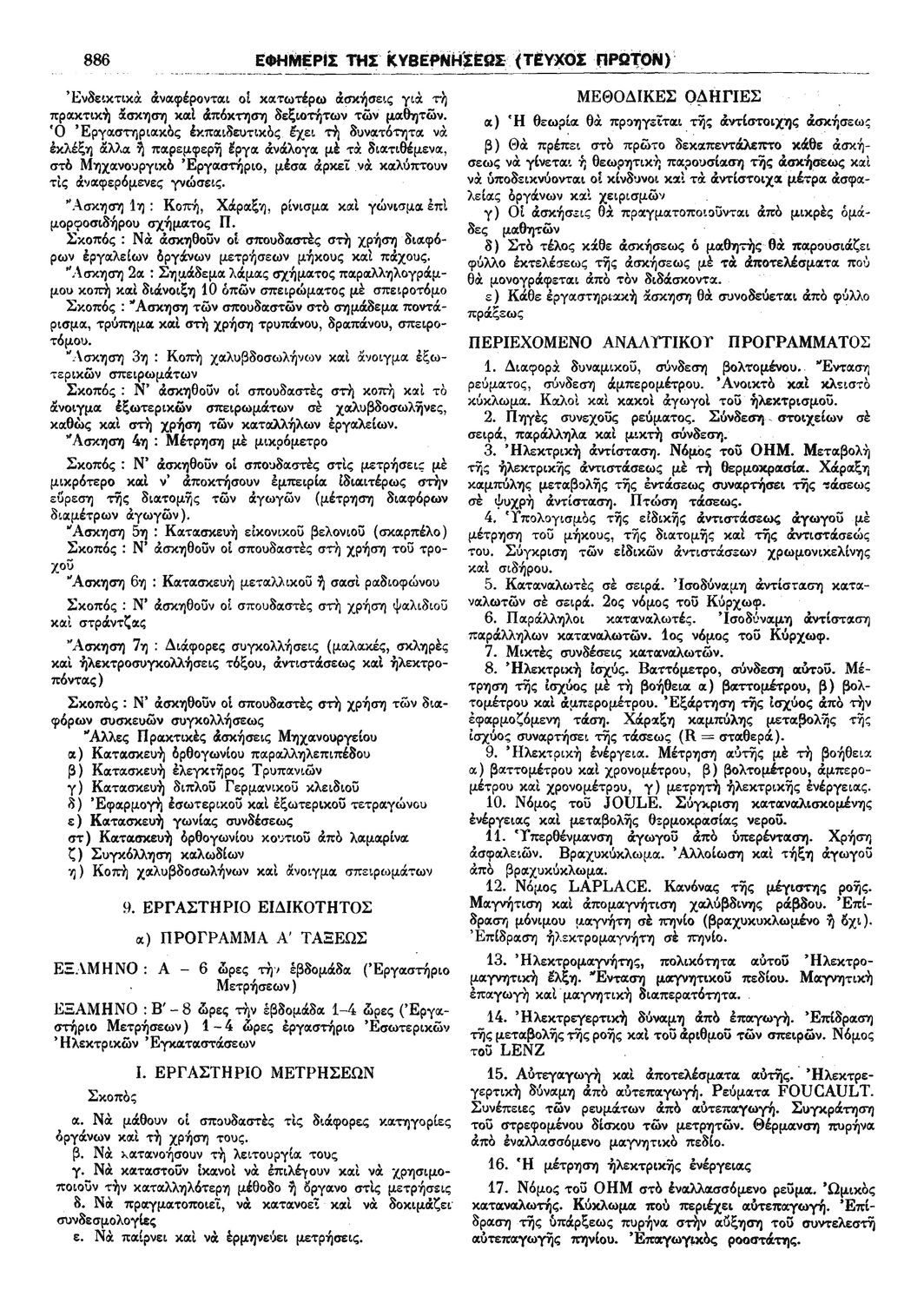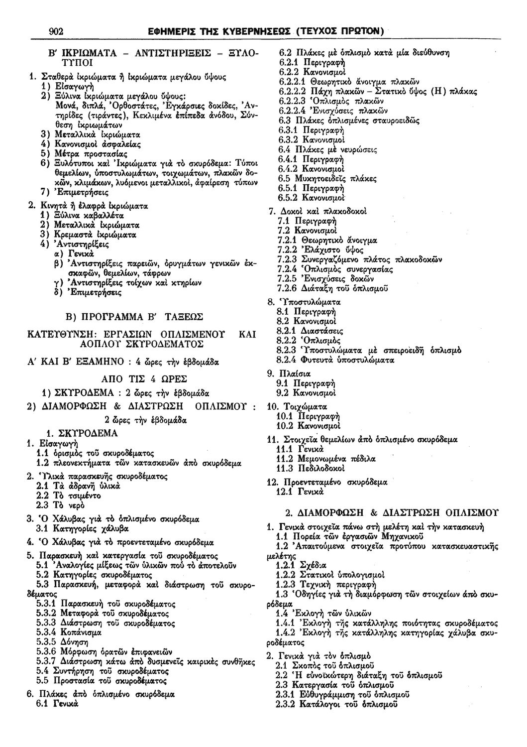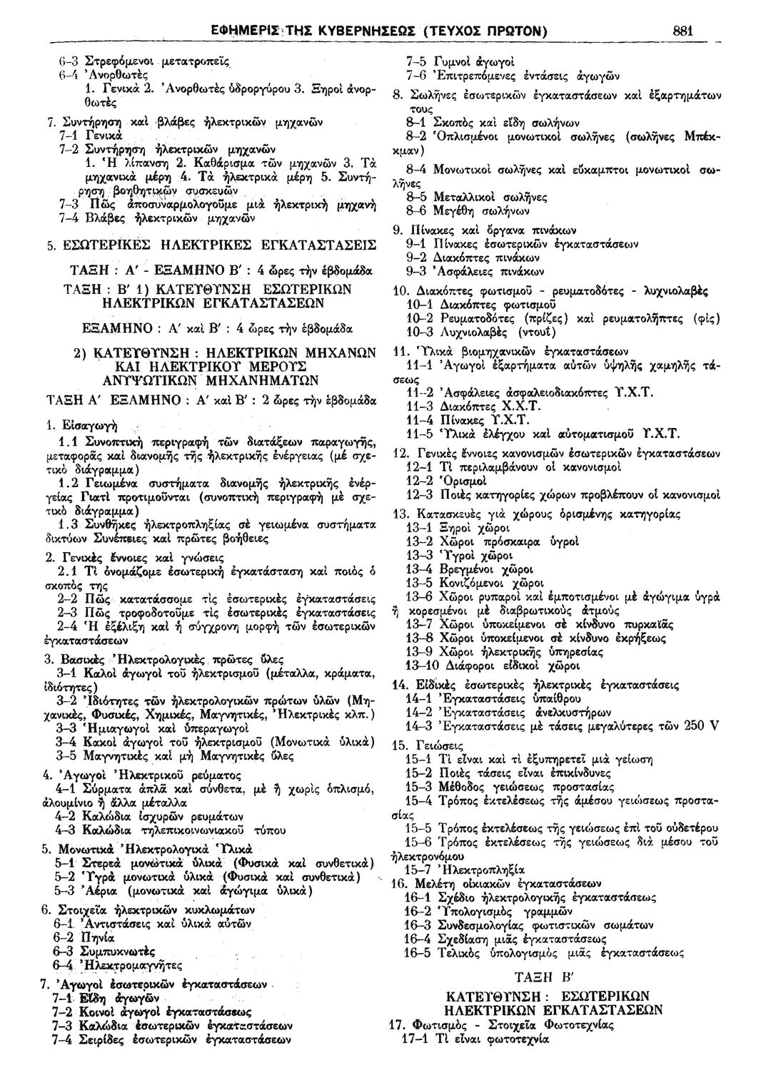 Π.Δ. 293 Περί των Ωρολογίων και Αναλυτικών Προγραμμάτων της Πρώτης (Α') και Δευτέρας (Β') τάξεως των Ημερησίων Μέσων Τεχνικών Σχολών κατά τμήμα