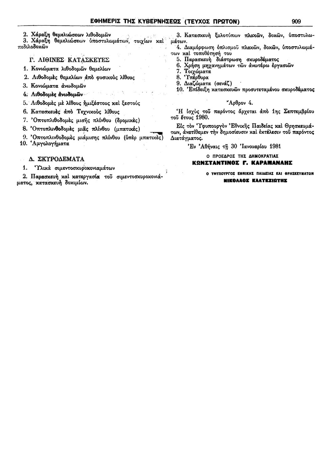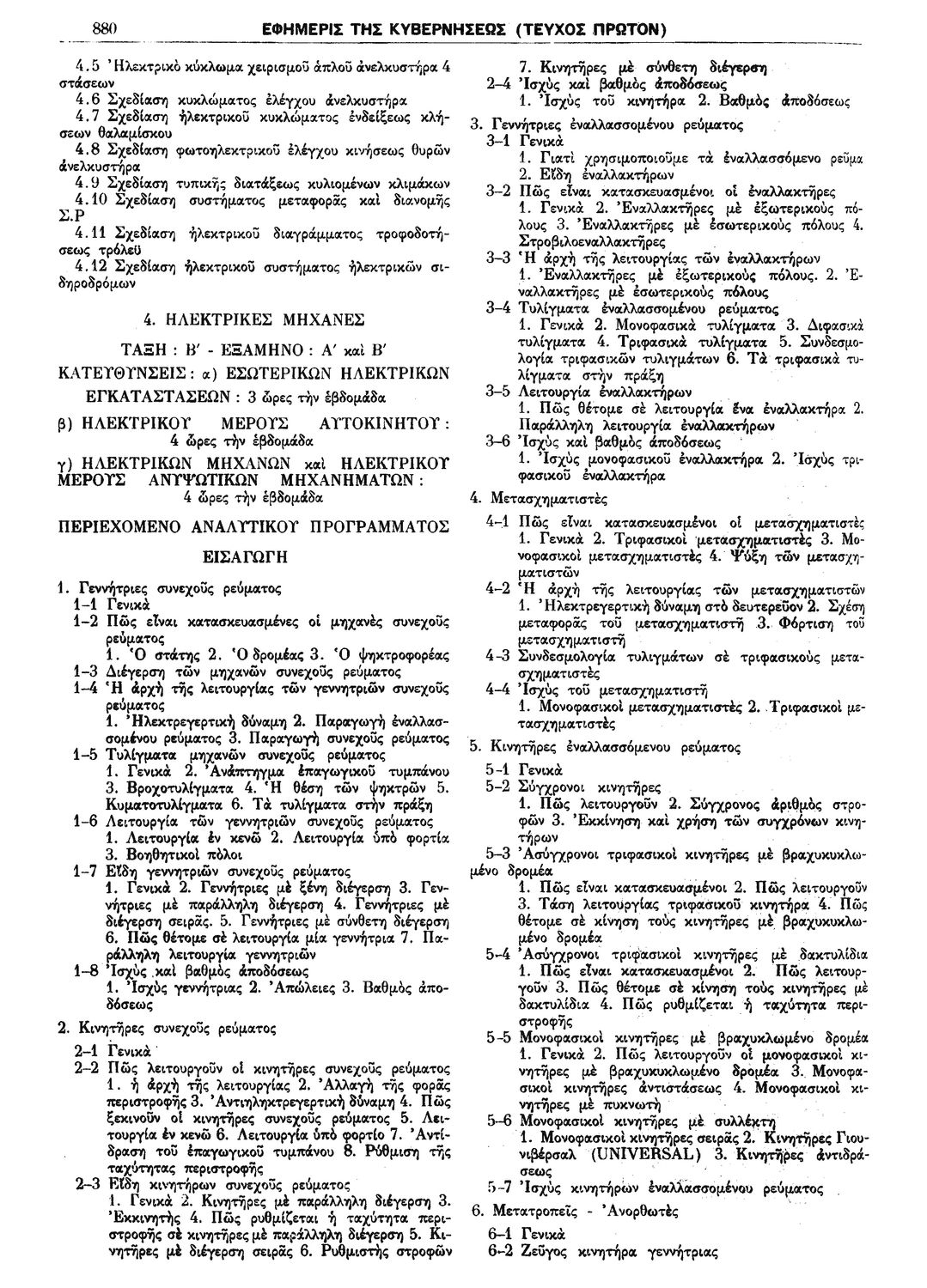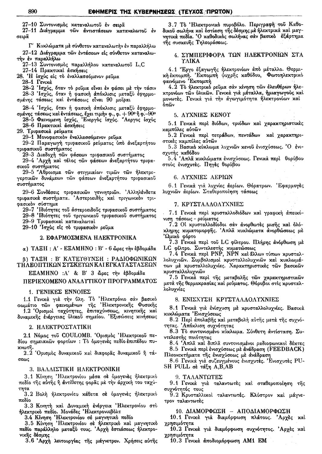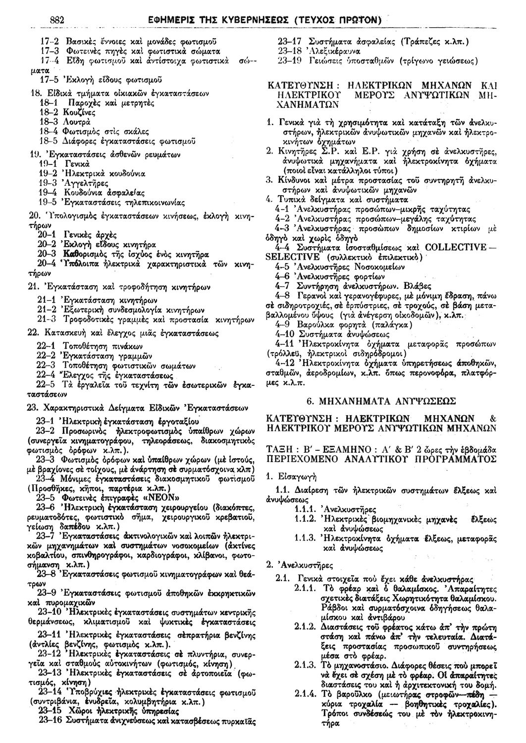 Π.Δ. 293 Περί των Ωρολογίων και Αναλυτικών Προγραμμάτων της Πρώτης (Α') και Δευτέρας (Β') τάξεως των Ημερησίων Μέσων Τεχνικών Σχολών κατά τμήμα