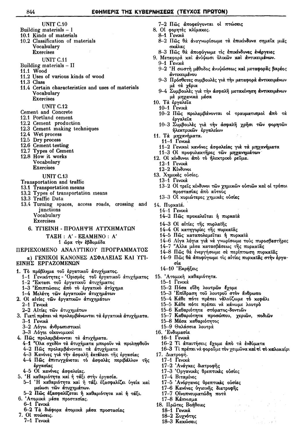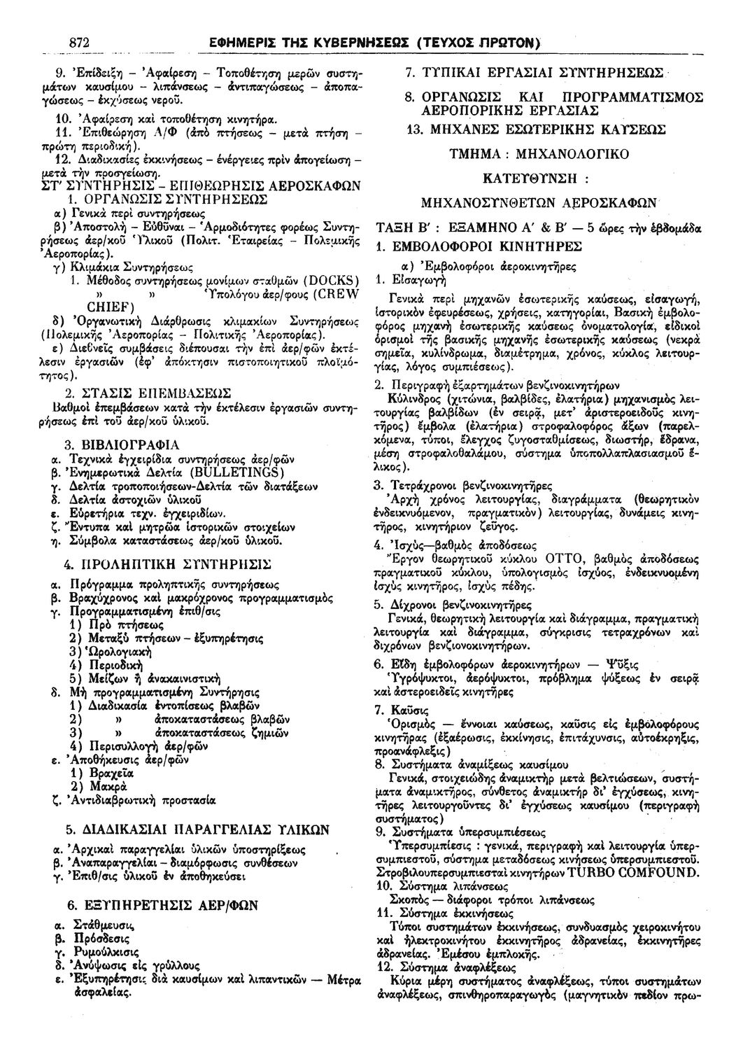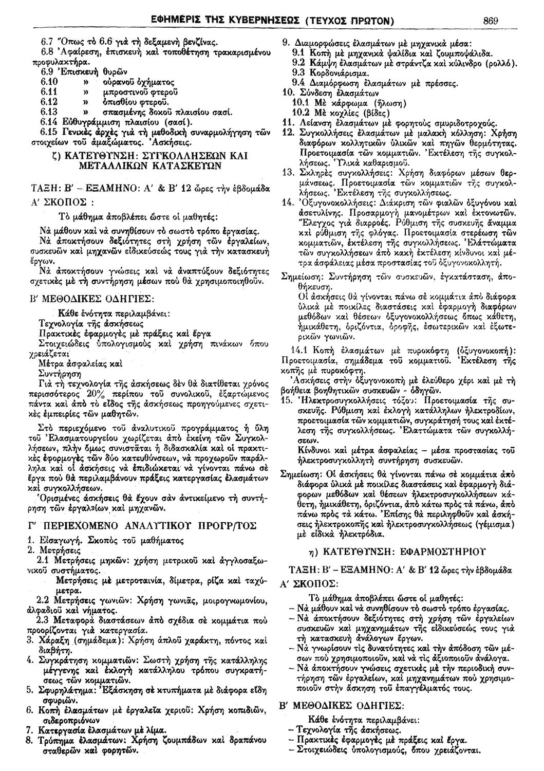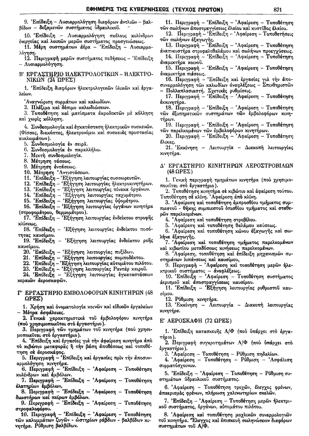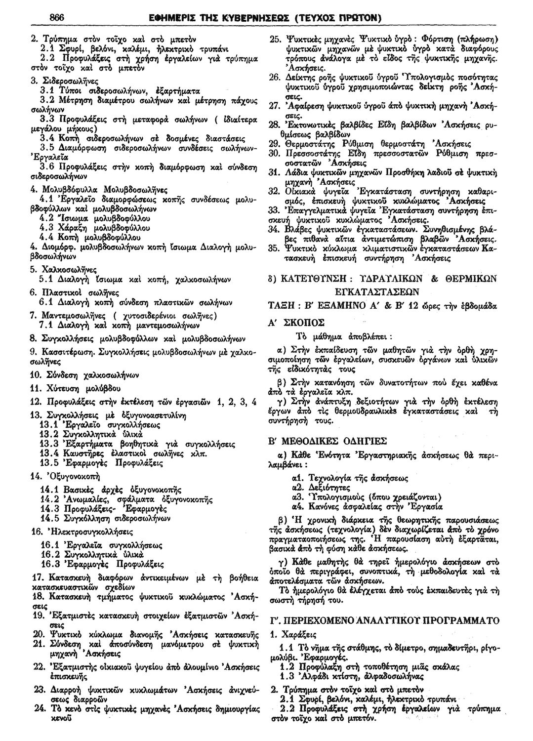 Π.Δ. 293 Περί των Ωρολογίων και Αναλυτικών Προγραμμάτων της Πρώτης (Α') και Δευτέρας (Β') τάξεως των Ημερησίων Μέσων Τεχνικών Σχολών κατά τμήμα