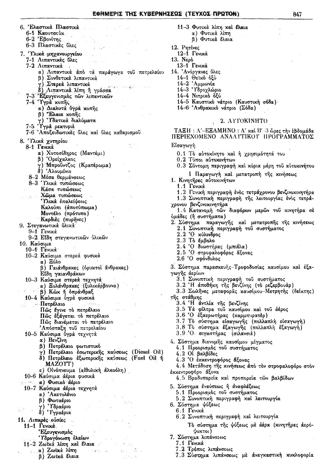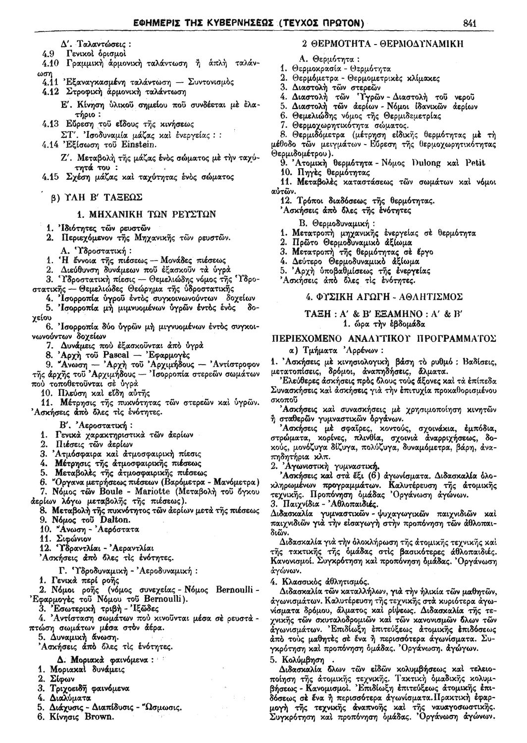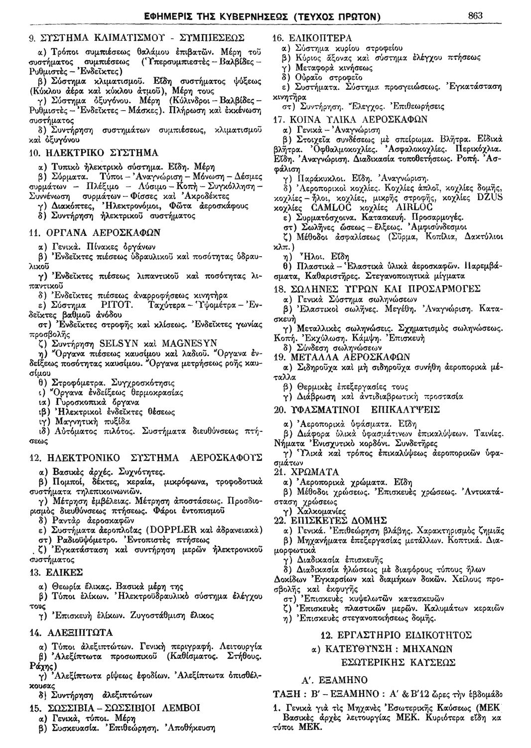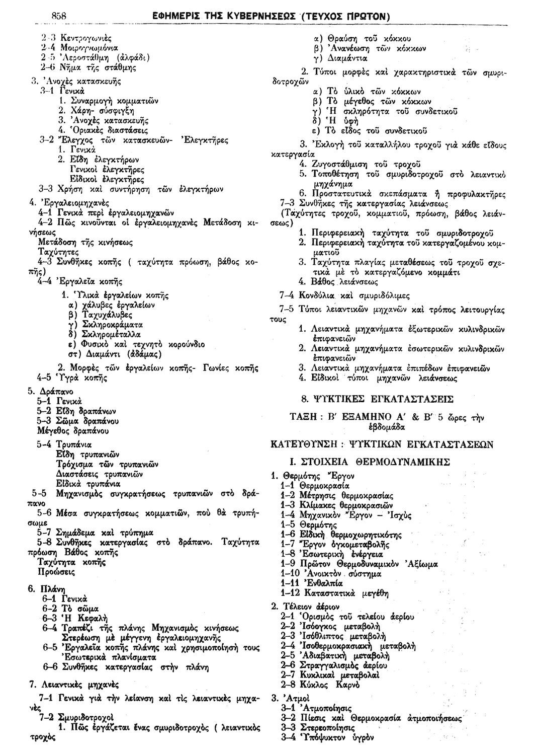 Π.Δ. 293 Περί των Ωρολογίων και Αναλυτικών Προγραμμάτων της Πρώτης (Α') και Δευτέρας (Β') τάξεως των Ημερησίων Μέσων Τεχνικών Σχολών κατά τμήμα