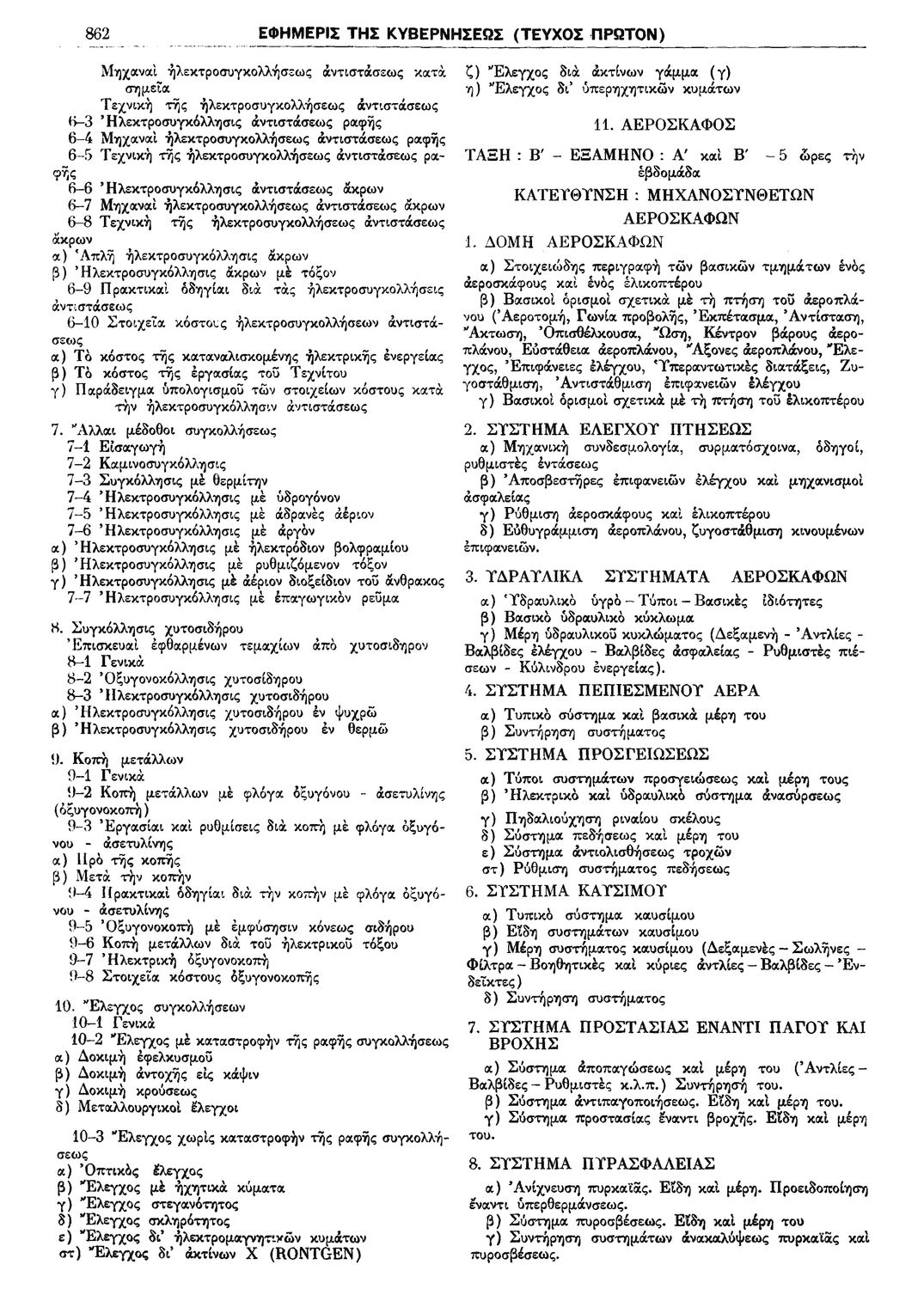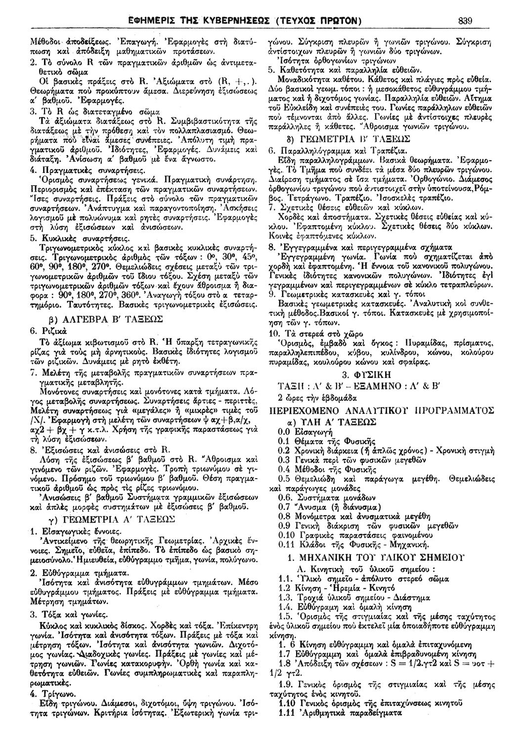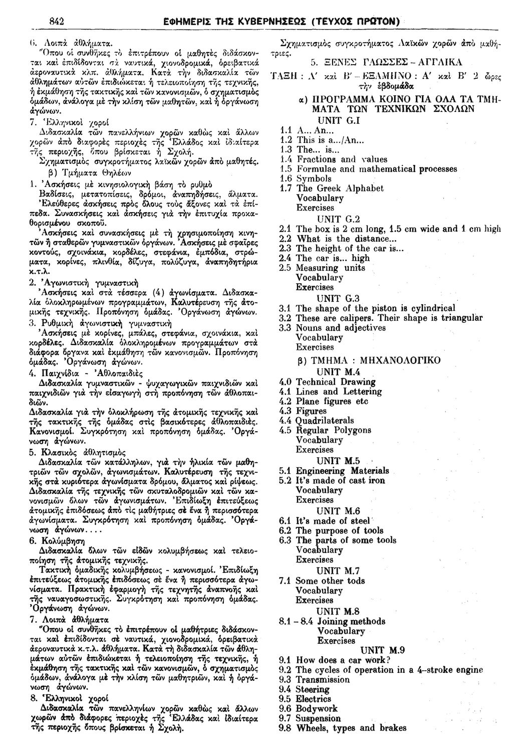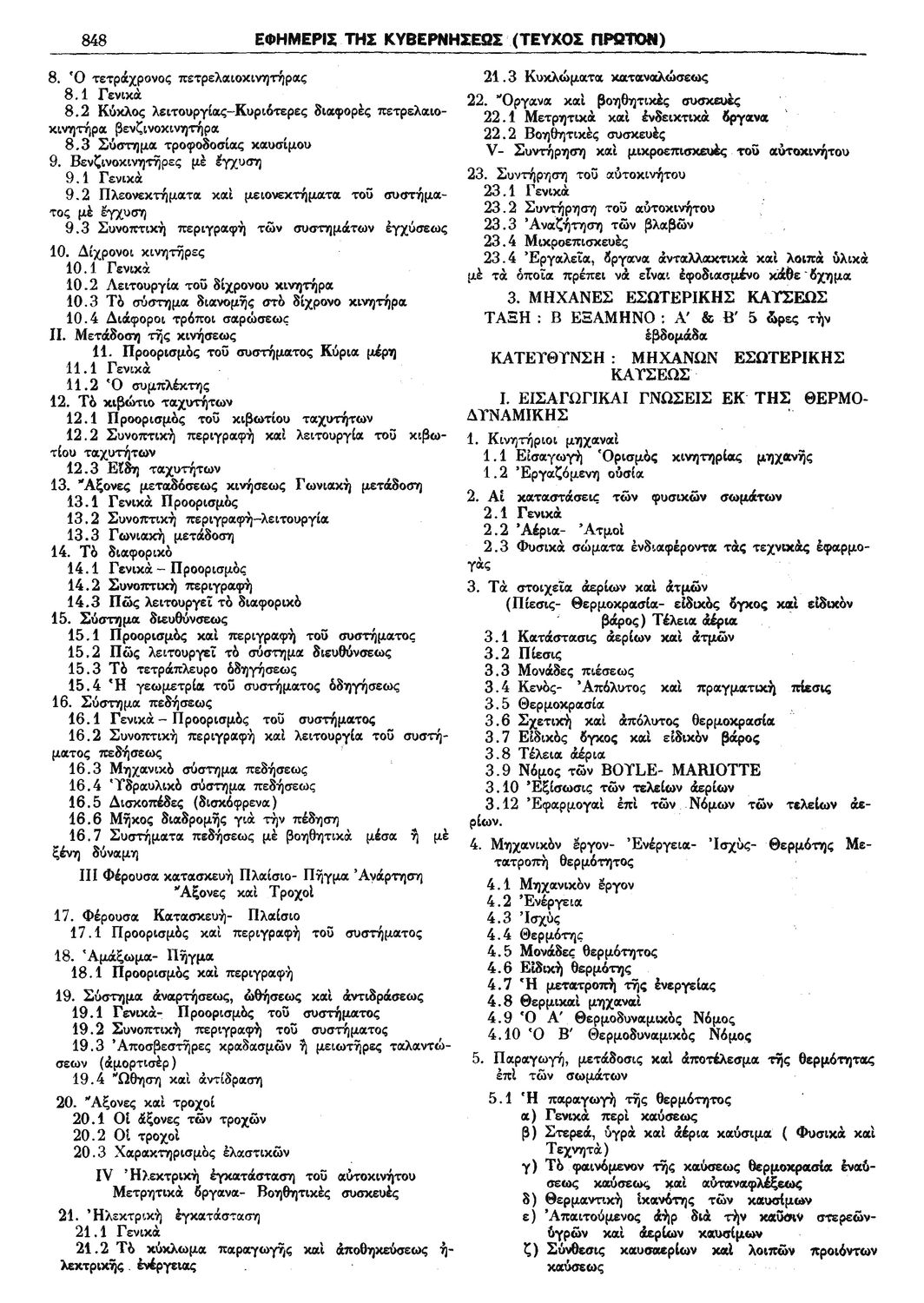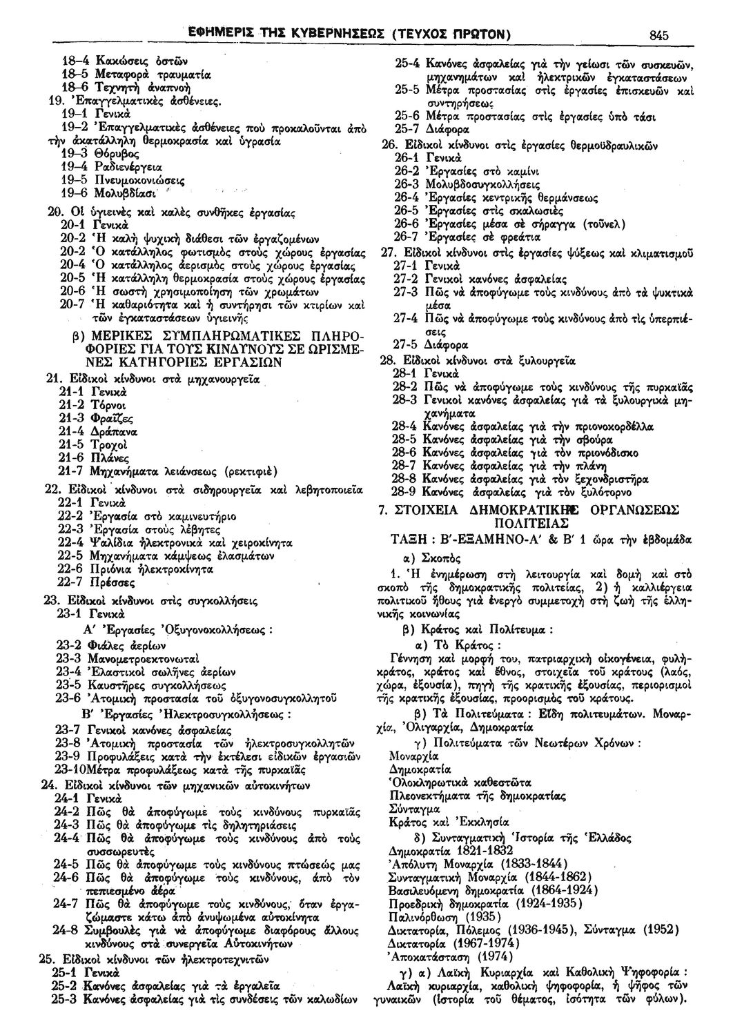 Π.Δ. 293 Περί των Ωρολογίων και Αναλυτικών Προγραμμάτων της Πρώτης (Α') και Δευτέρας (Β') τάξεως των Ημερησίων Μέσων Τεχνικών Σχολών κατά τμήμα