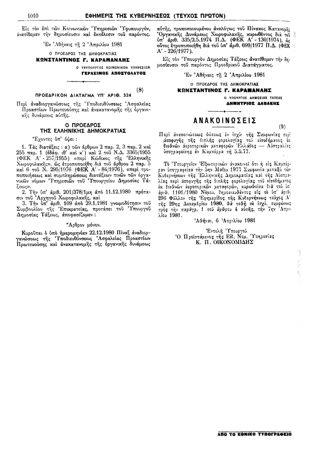 Παρουσίαση περιεχομένου: Π.Δ. 317 Περί τροποποιήσεως και συμπληρώσεως διατάξεων τινων του Π. Δ/τος 922/1980 "περί του ωρολογίου και αναλυτικού προγράμματος της Β' τάξεως Ημερησίου Λυκείου Γενικής Κατευθύνσεως, των Β' και Γ' τάξεων Εσπερινού Λυκείου της αυτής κατευθύνσεως" Σχετικές σελίδες: 1-2 |