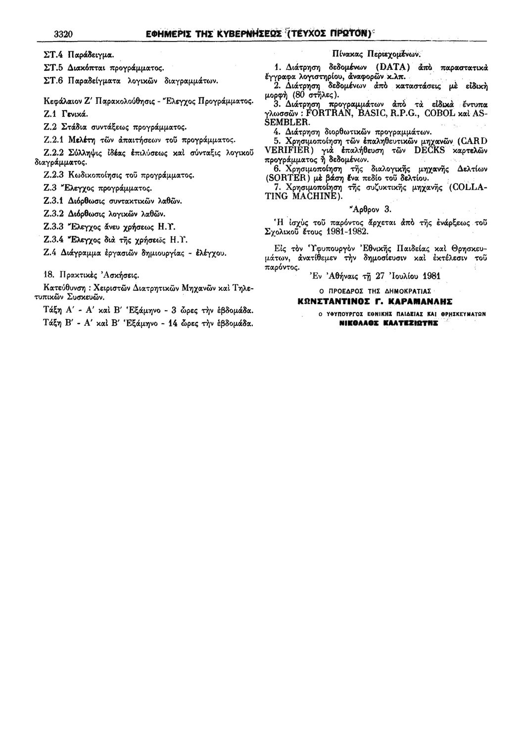 Κωδικός αναγνώρισης: 1981-243A Τίτλος: ΦΕΚ 243/03.09.1981, Τεύχος A Μέγεθος και υπόστρωμα: Φεκ προγραμμάτων σπουδών, 18 σελίδες. |