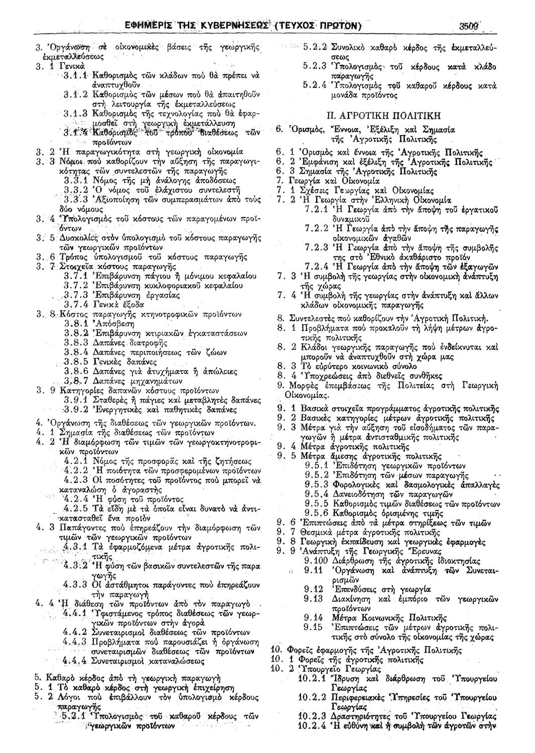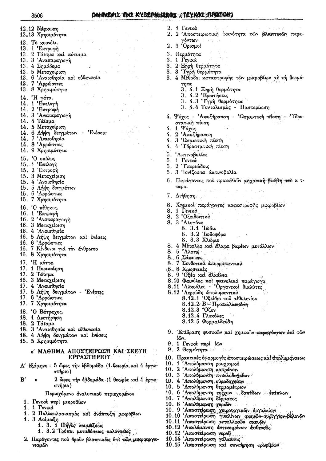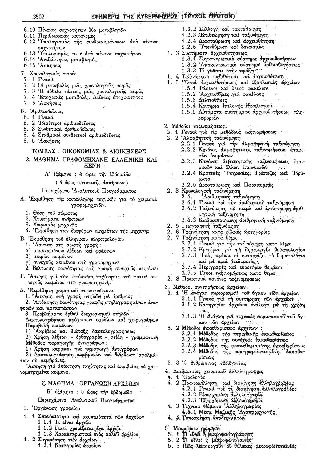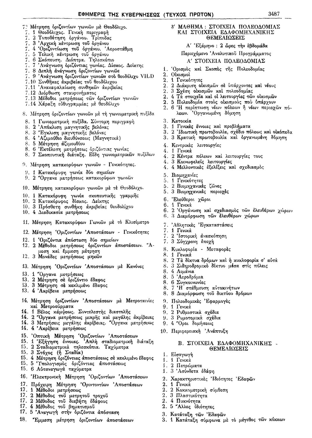 Π.Δ. 965 Περί των ωρολογίων και αναλυτικών προγραμμάτων της πρώτης και δευτέρας Τάξεως των κατευθύνσεων Ανθοκομίας - Κηπουρικής και Μηχανοποιημένης Καλλιεργείας του Γεωργοκτηνοτροφικού Τμήματος και των ...