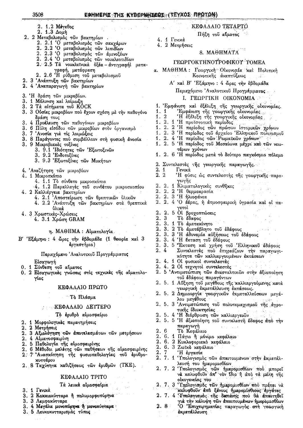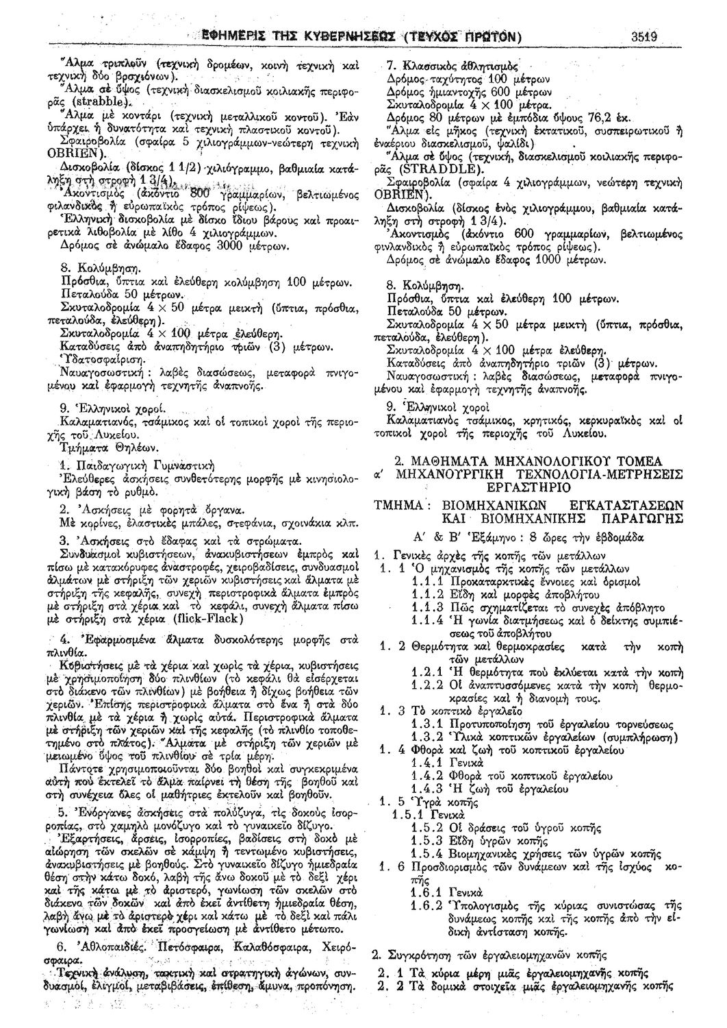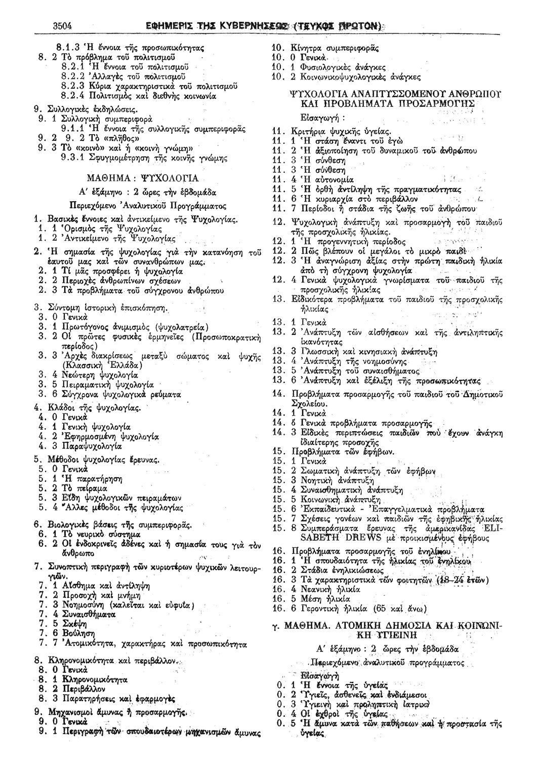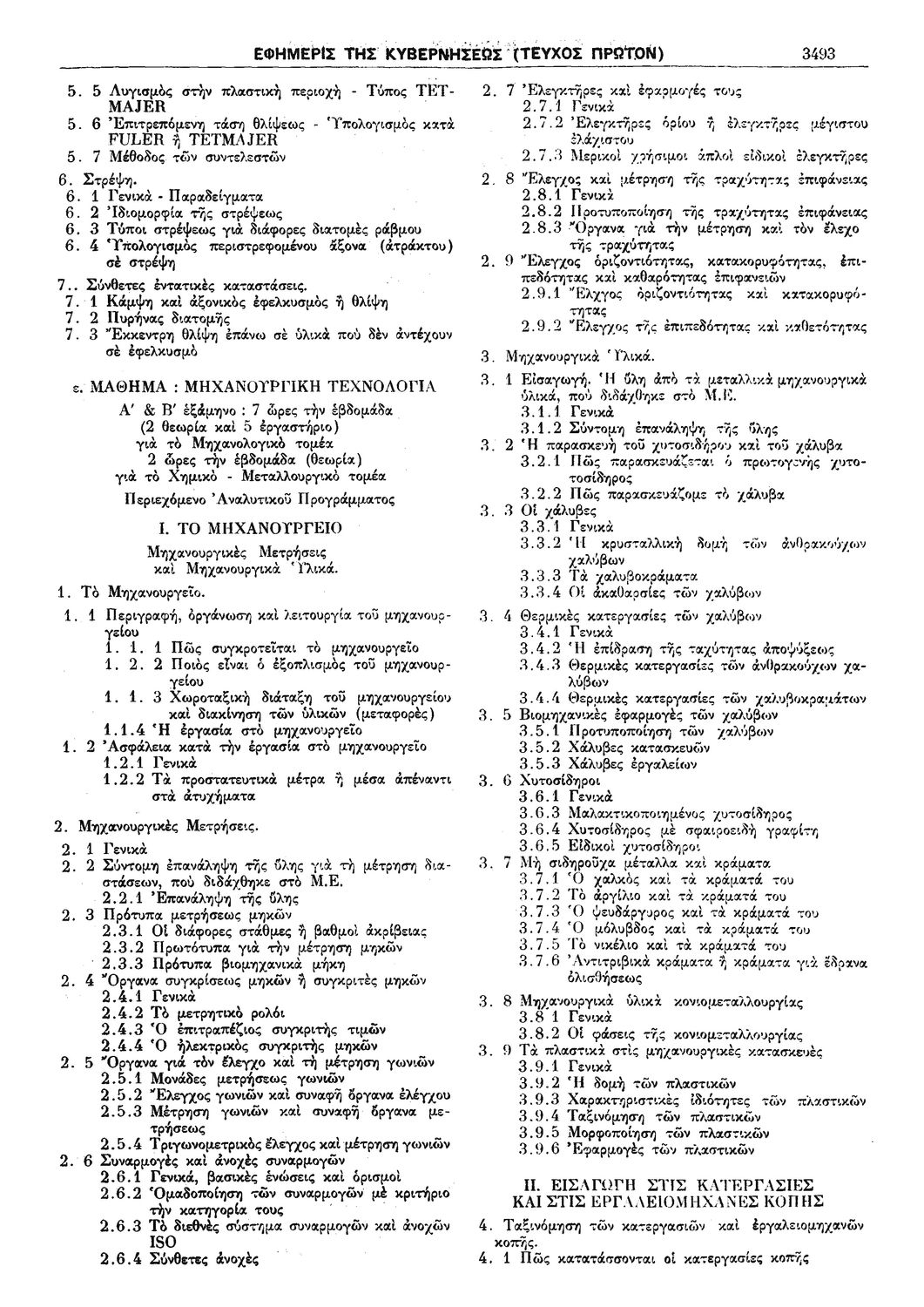 [ΦΕΚ Προγραμμάτων Σπουδών]