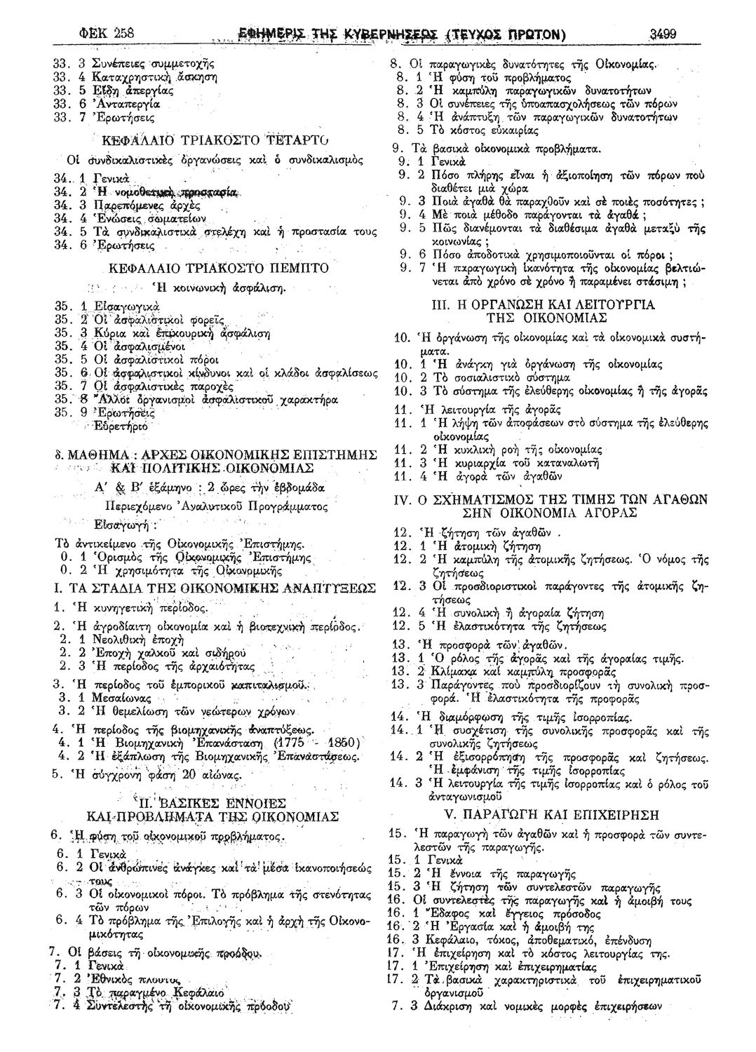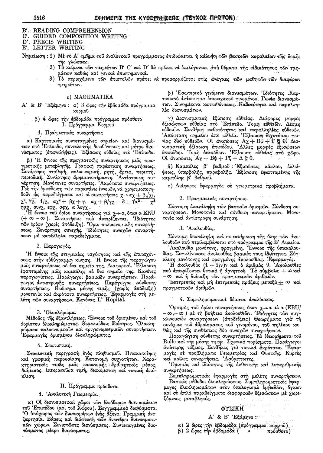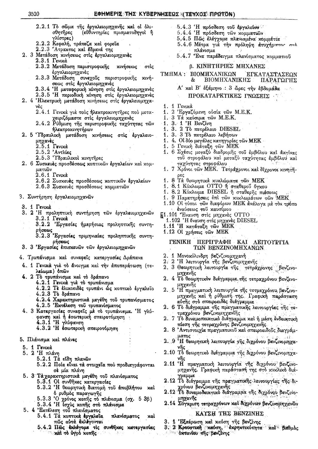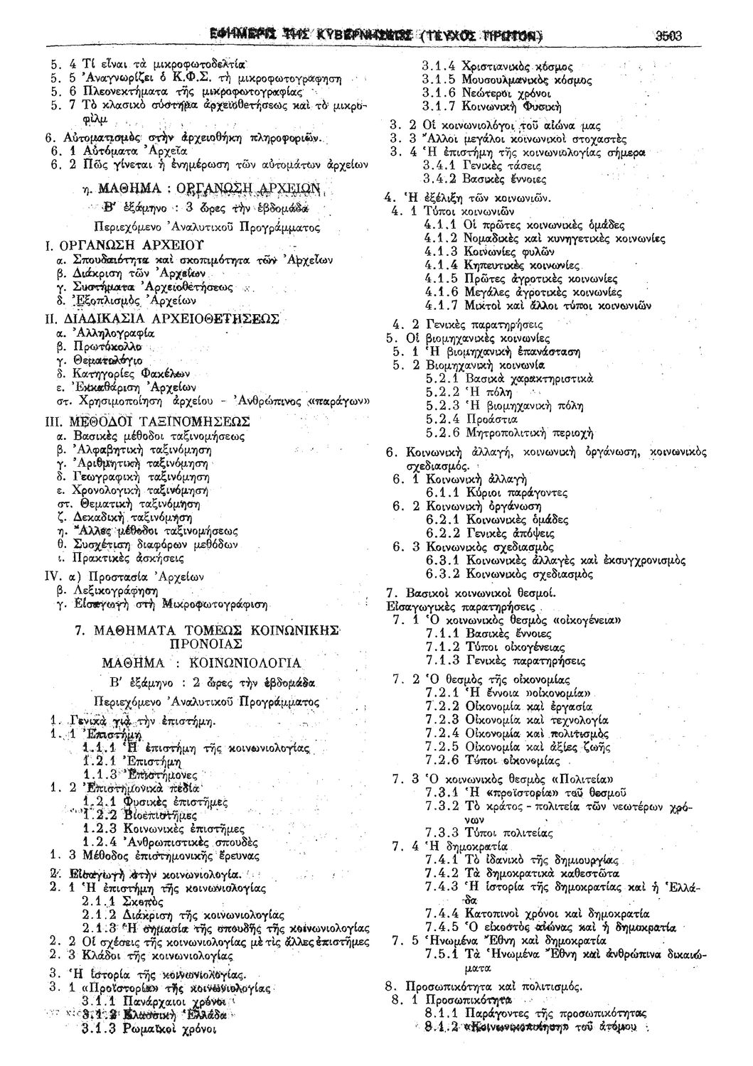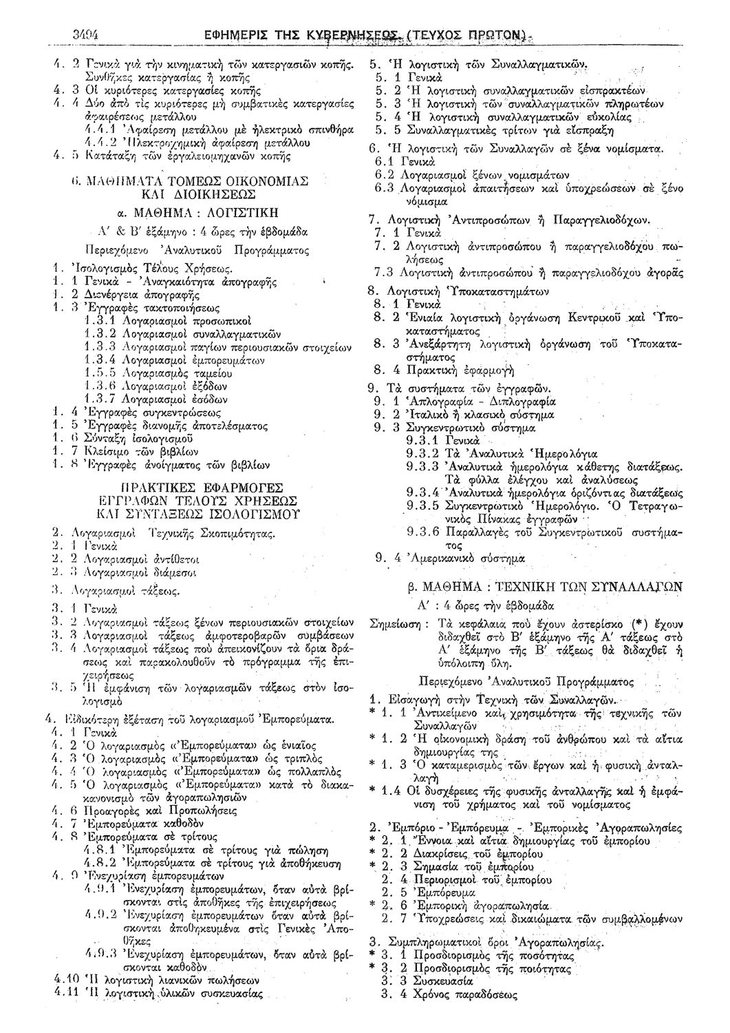 [ΦΕΚ Προγραμμάτων Σπουδών]