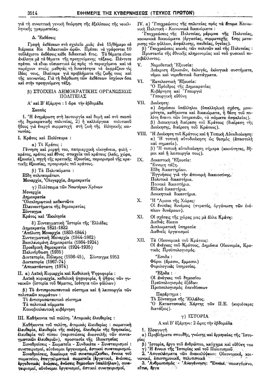 Π.Δ. 373 Περί του ωρολογίου και αναλυτικού προγράμματος της πρώτης (Α') τάξεως Λυκείου Γενικής Κατευθύνσεως, ημερησίου και εσπερινού και της πρώτης (Α') τάξεως των Προτύπων Ελληνικών Κλασσικών Λυκείων