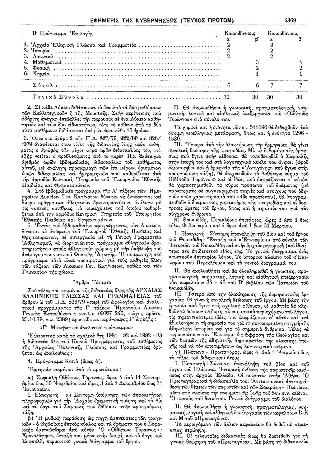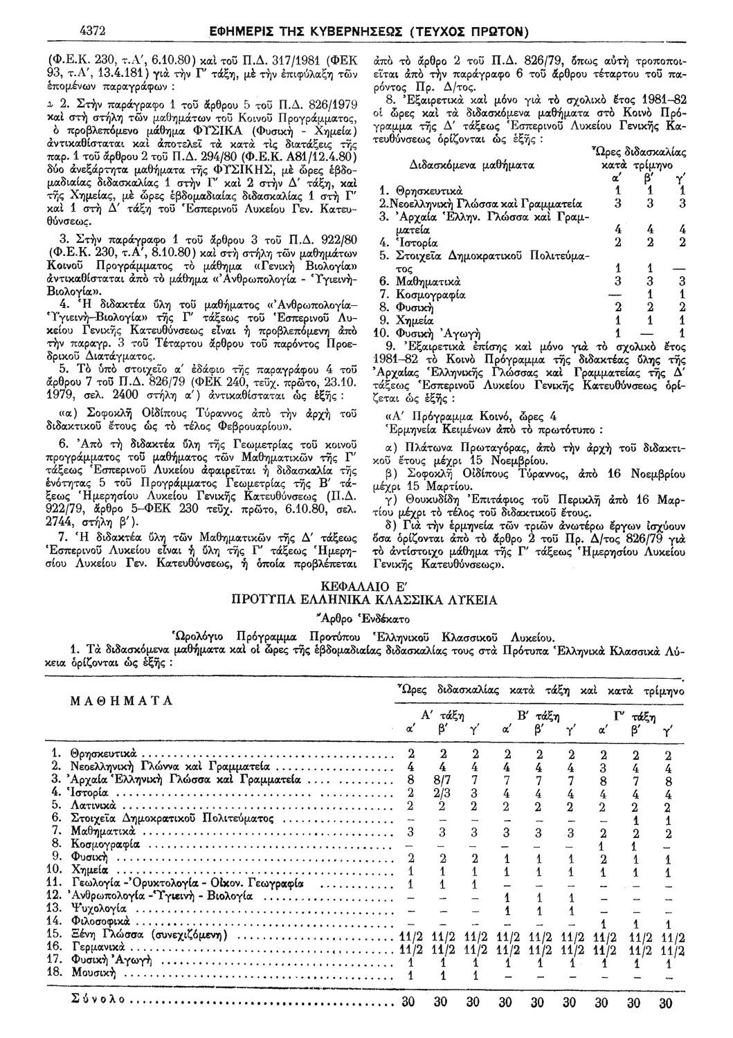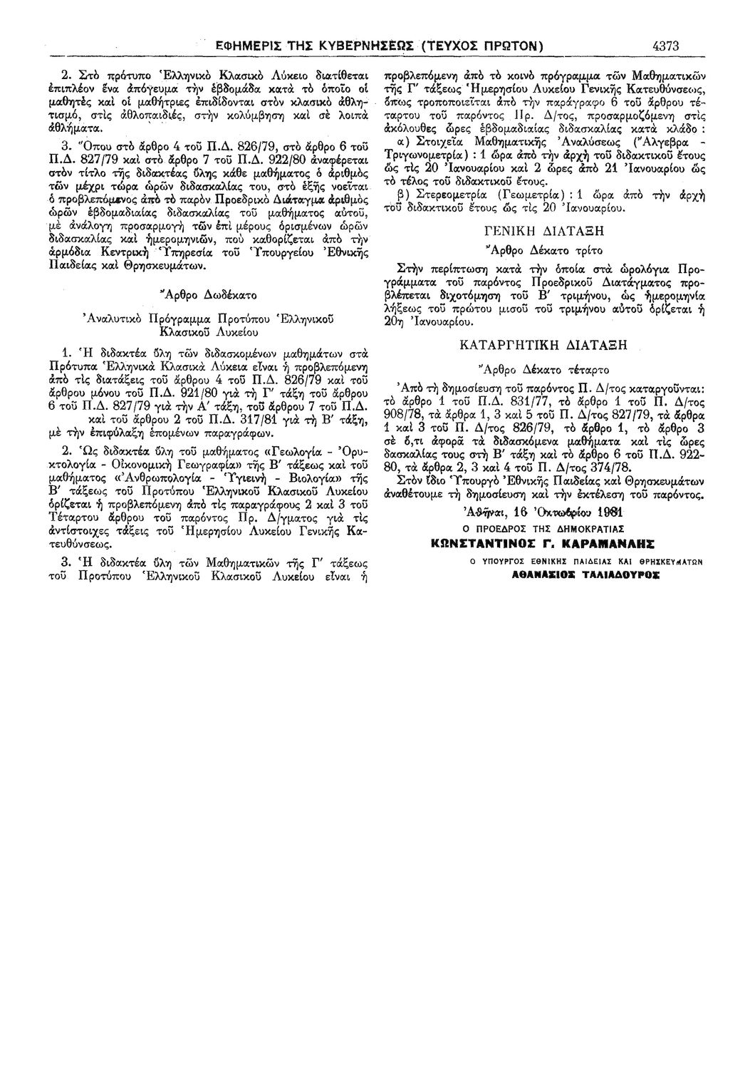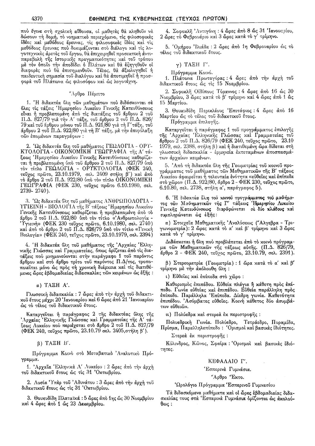 Π.Δ. 1286 Περί τροποποιήσεως του ωρολογίου και αναλυτικού προγράμματος των σχολείων της Μέσης Γενικής Εκπ/σεως