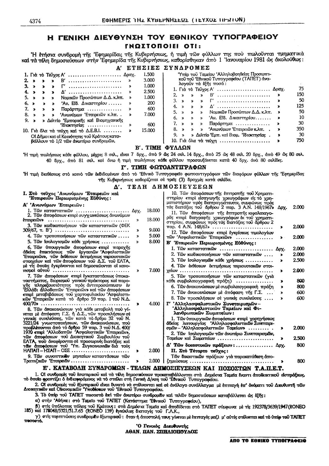 Κωδικός αναγνώρισης: 1981-315A Τίτλος: ΦΕΚ 315/19.10.1981, Τεύχος A Μέγεθος και υπόστρωμα: Φεκ προγραμμάτων σπουδών, 7 σελίδες. |