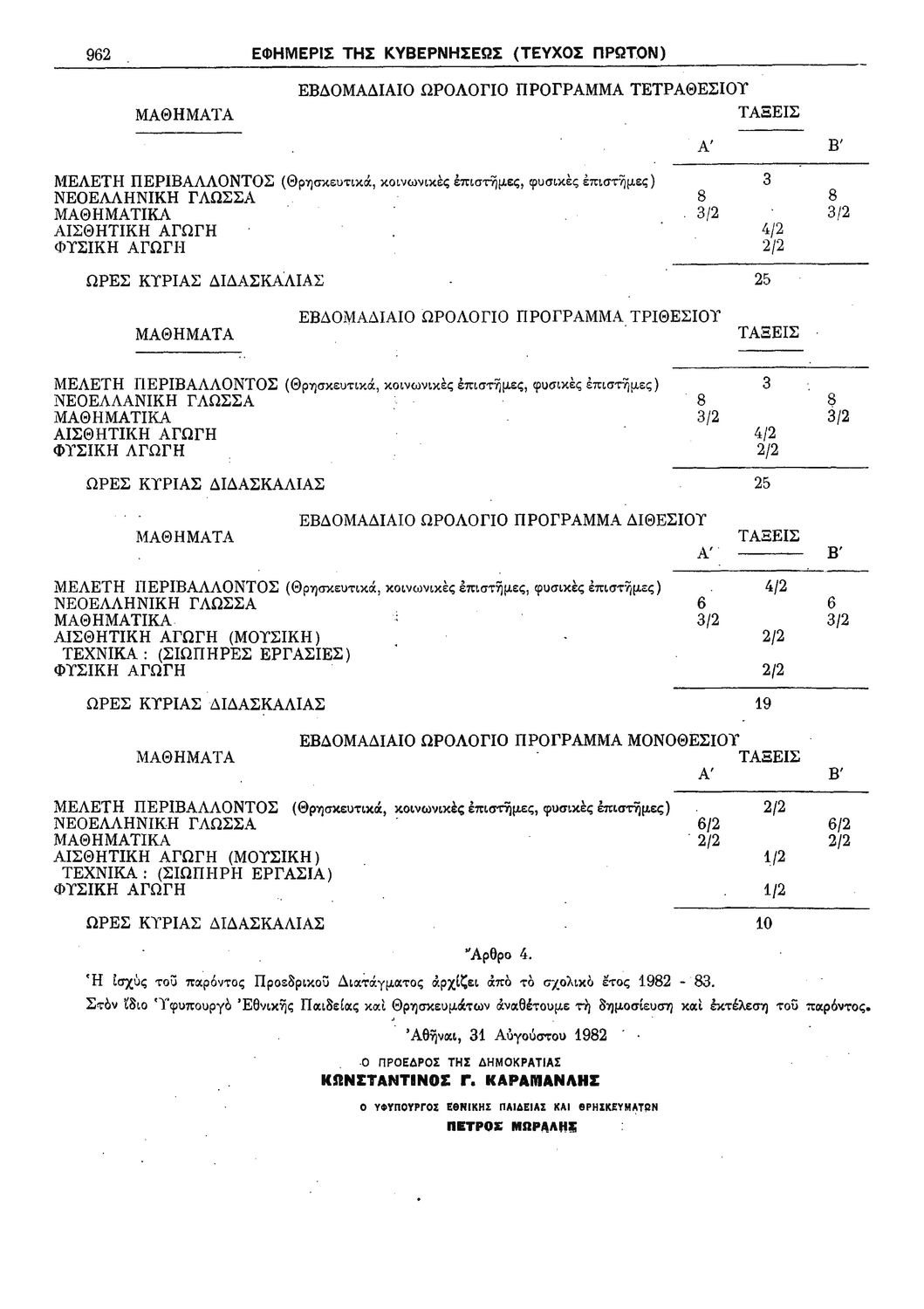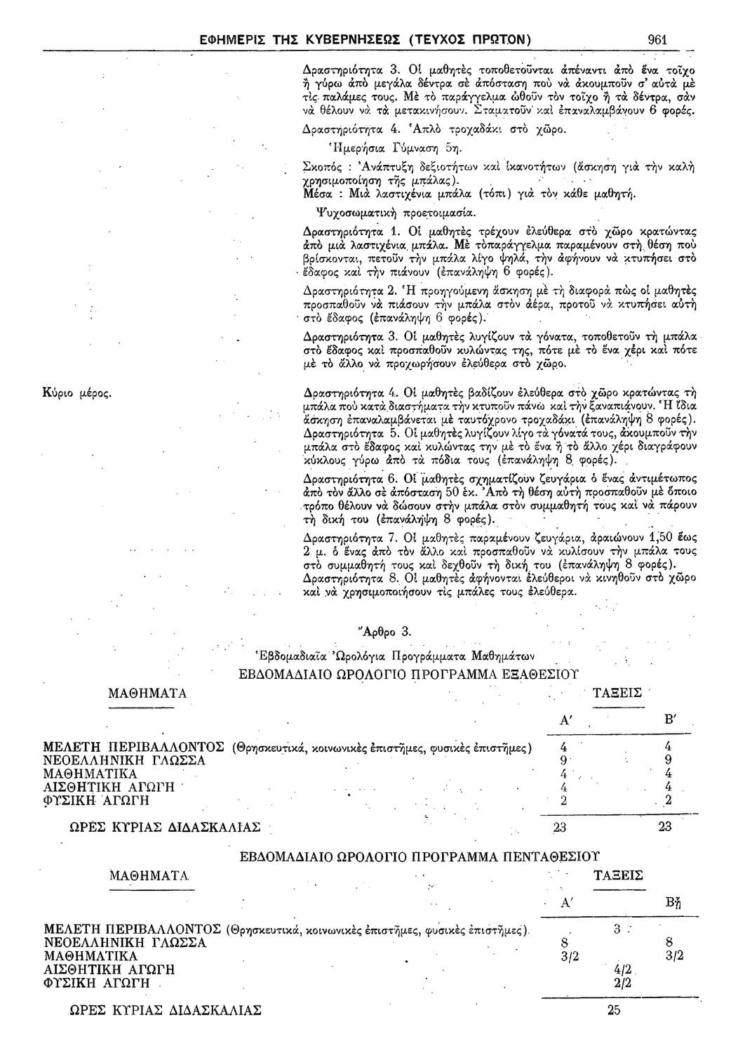 Π.Δ. 583 Αναλυτικό και Ωρολόγιο Πρόγραμμα των Α' και Β' τάξεων του Δημοτικού Σχολείου