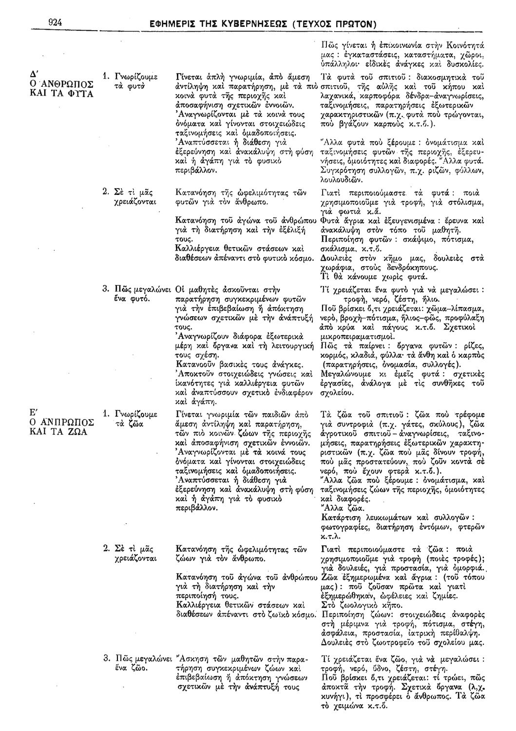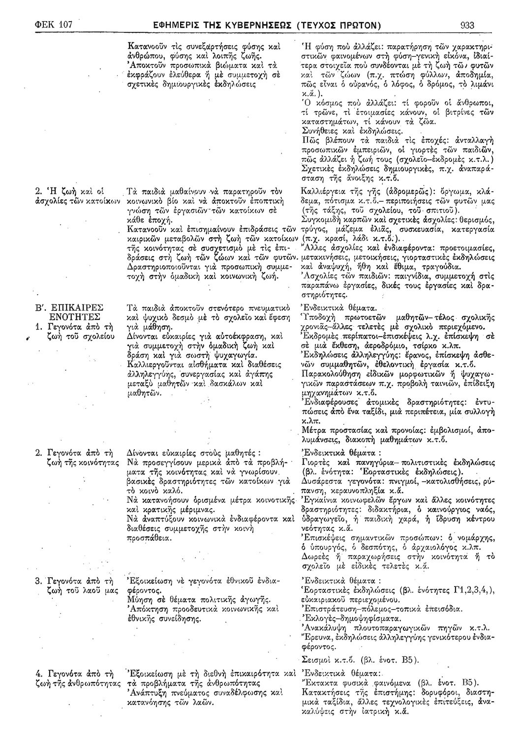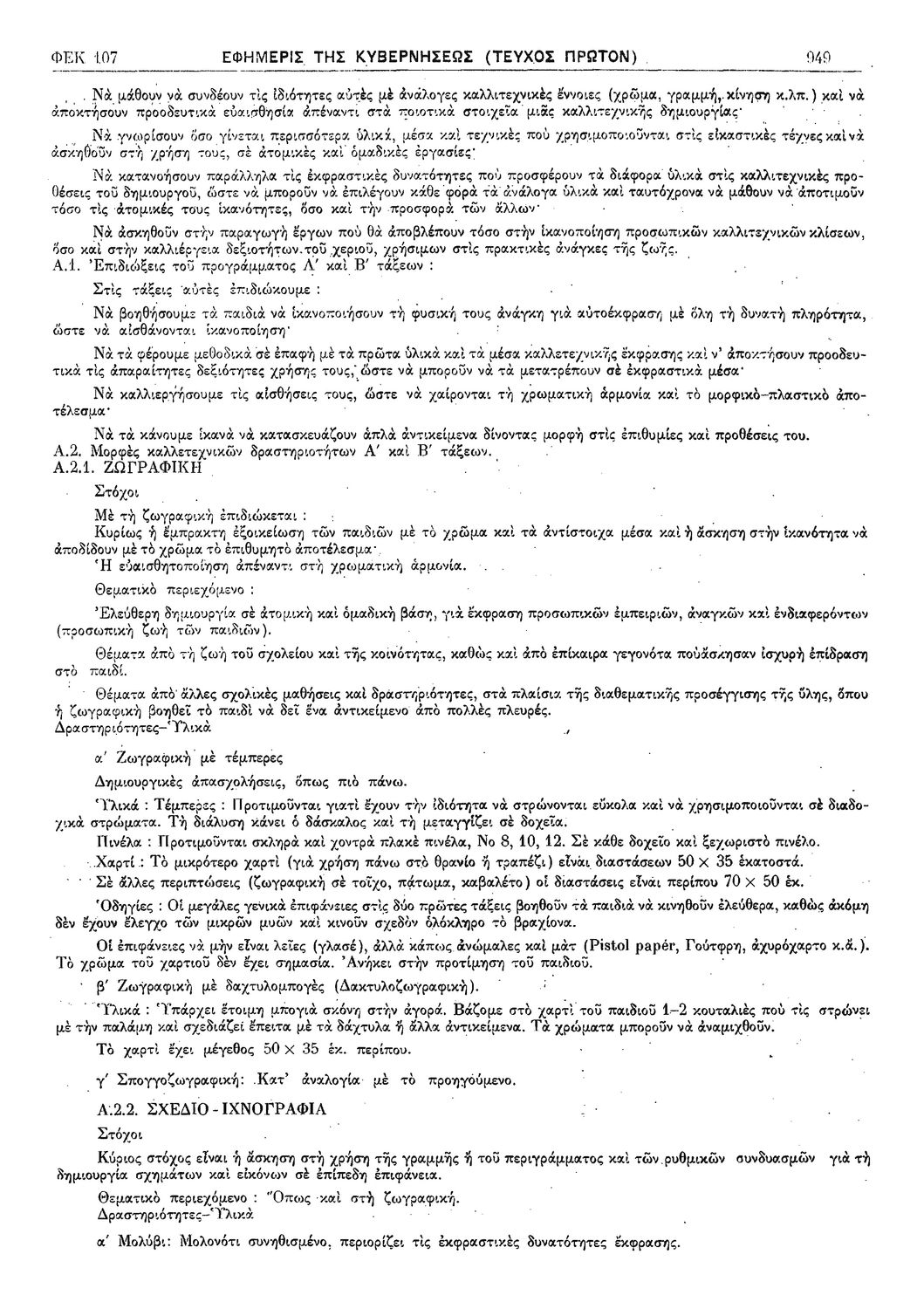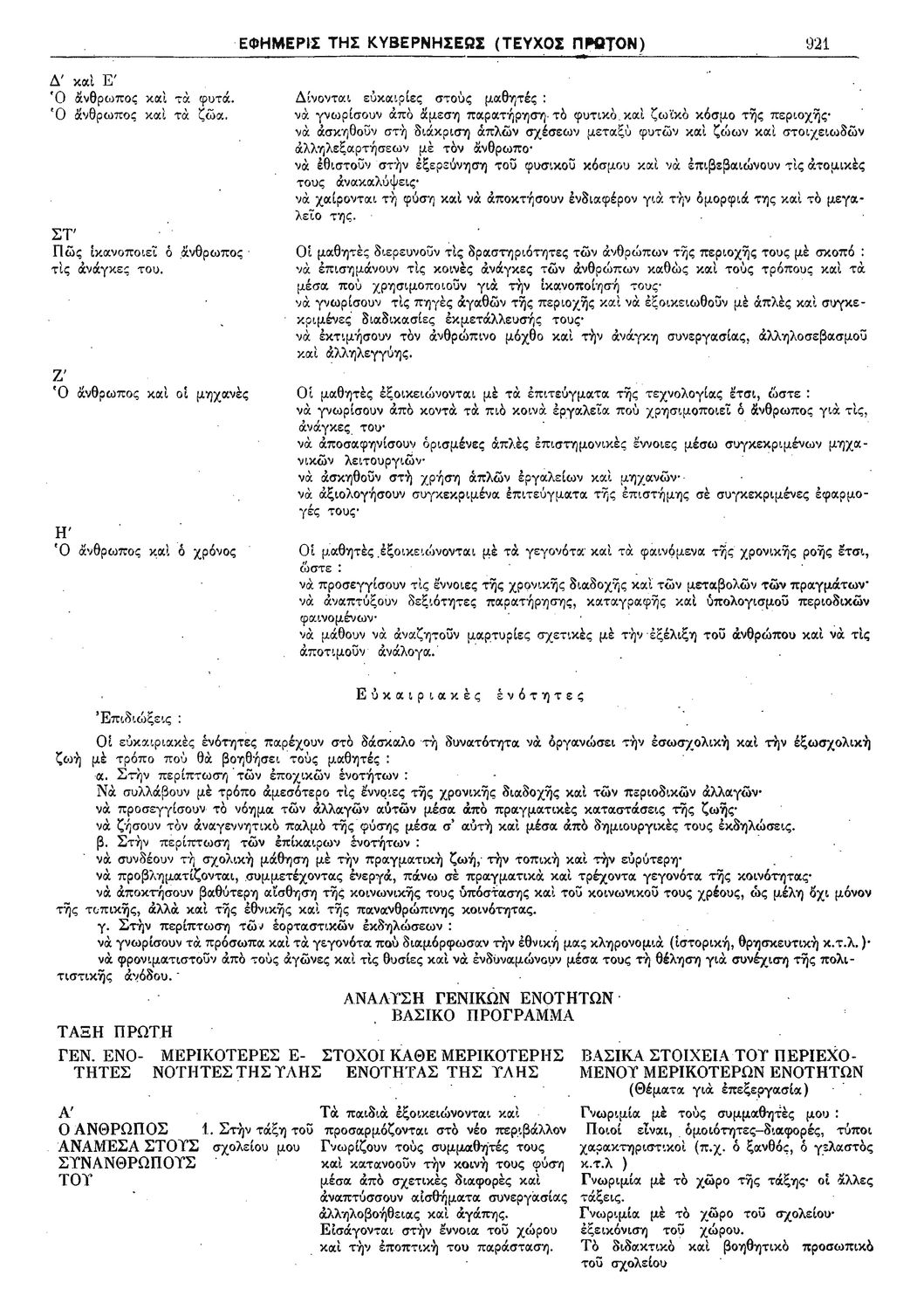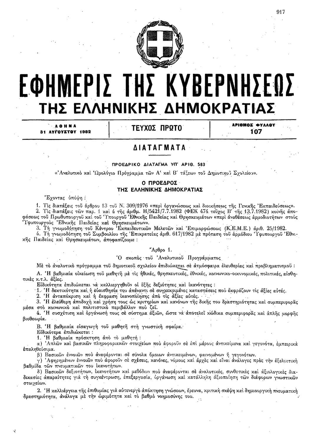 Π.Δ. 583 Αναλυτικό και Ωρολόγιο Πρόγραμμα των Α' και Β' τάξεων του Δημοτικού Σχολείου
