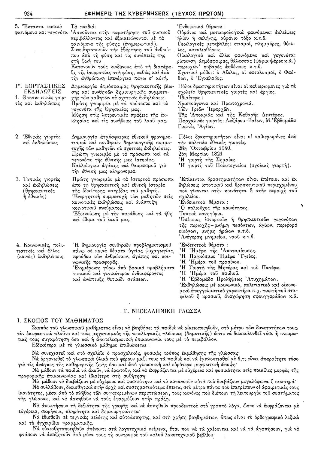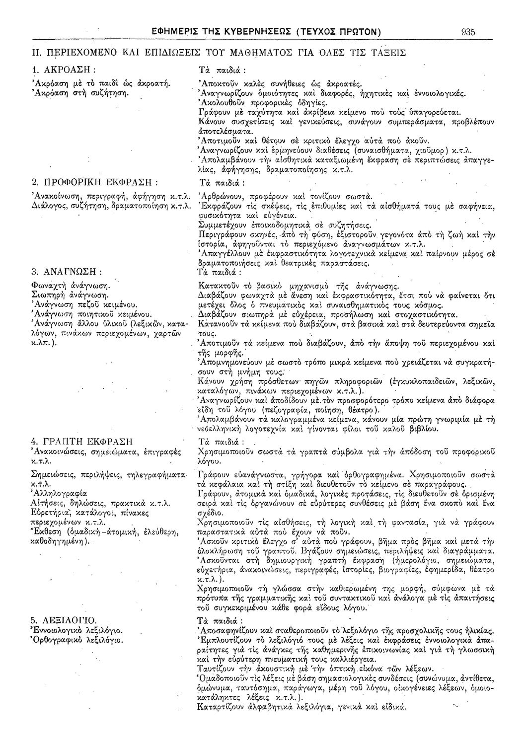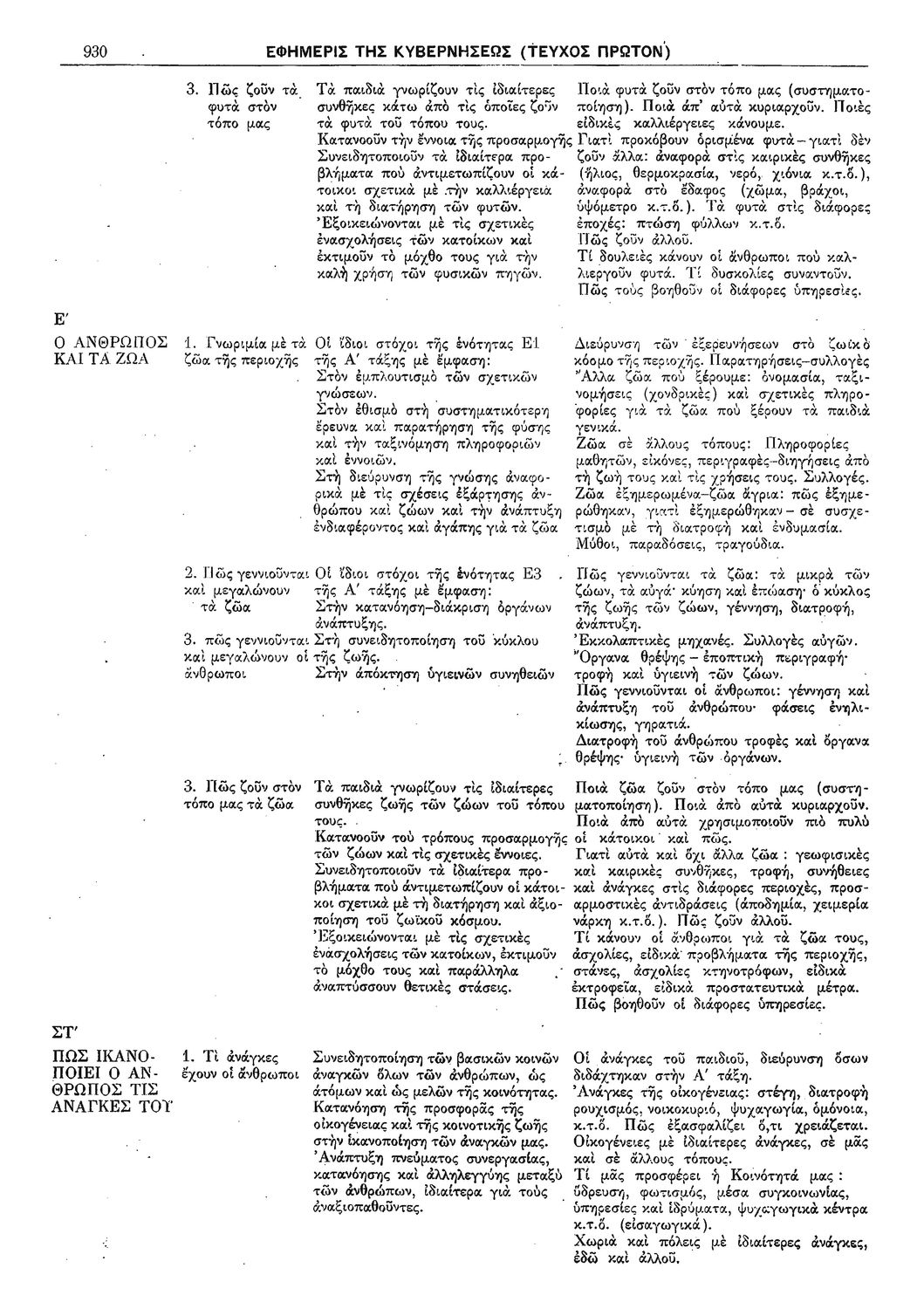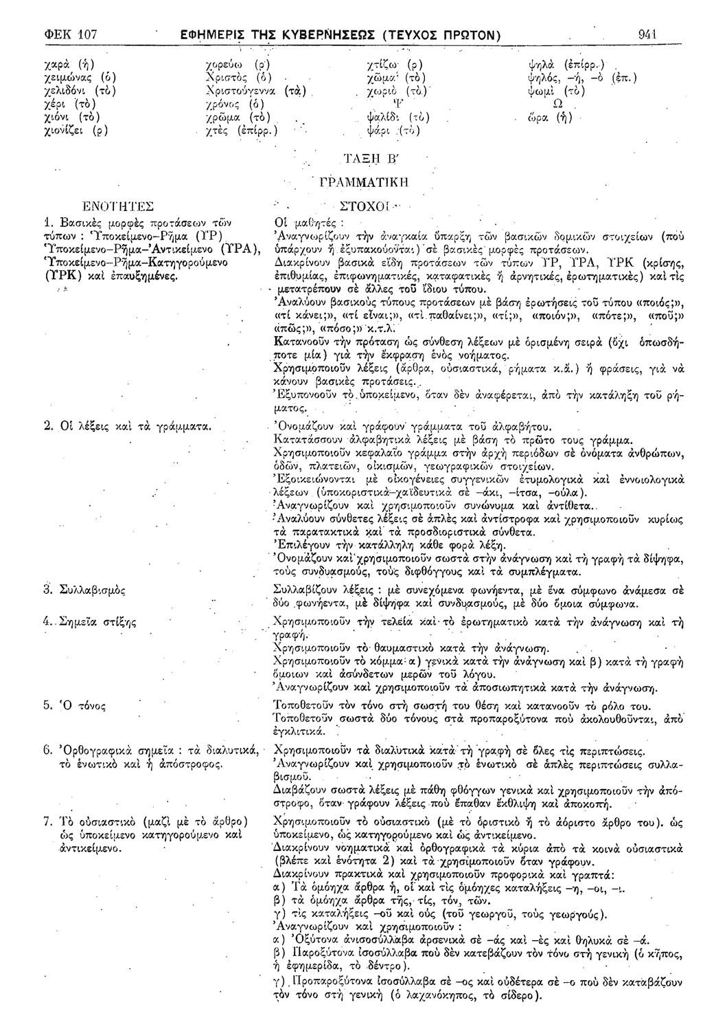 Π.Δ. 583 Αναλυτικό και Ωρολόγιο Πρόγραμμα των Α' και Β' τάξεων του Δημοτικού Σχολείου
