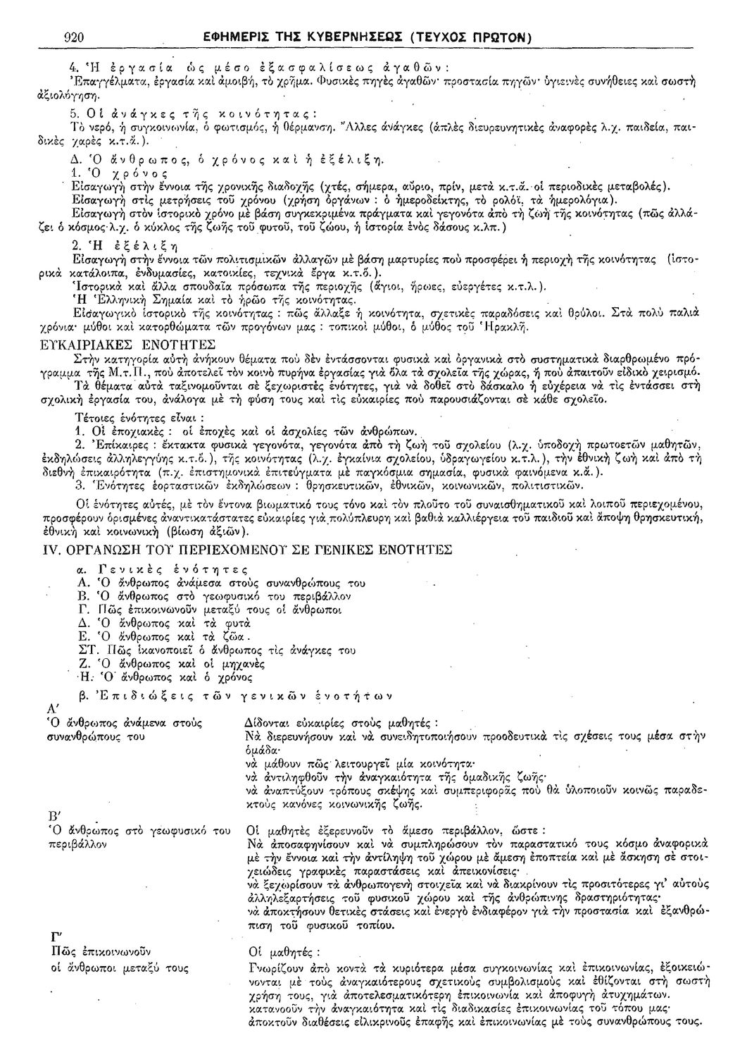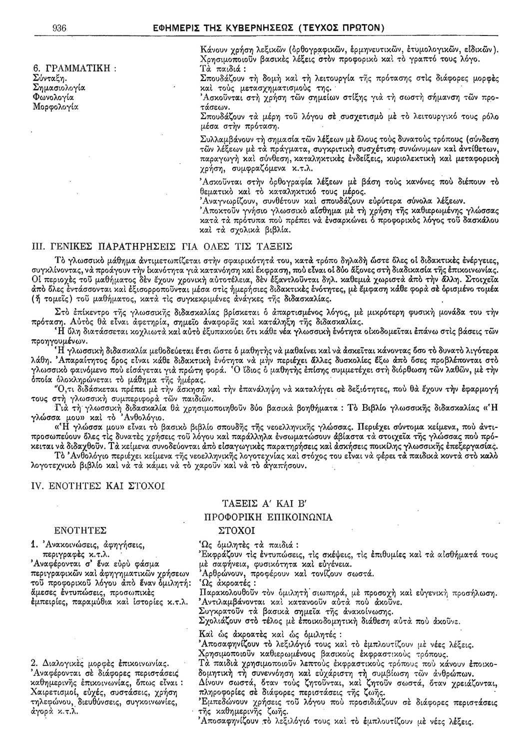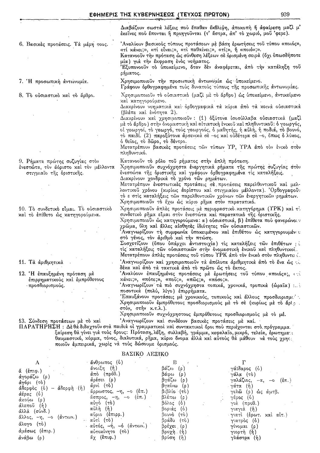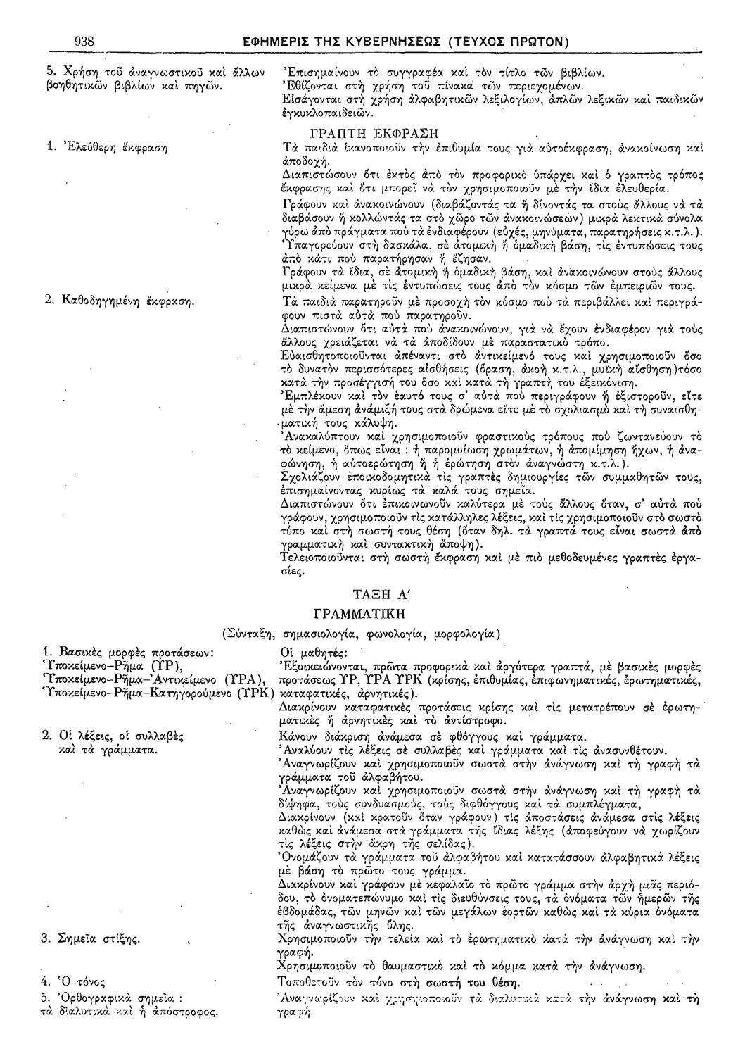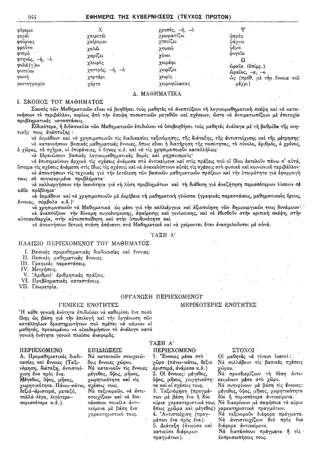 Π.Δ. 583 Αναλυτικό και Ωρολόγιο Πρόγραμμα των Α' και Β' τάξεων του Δημοτικού Σχολείου