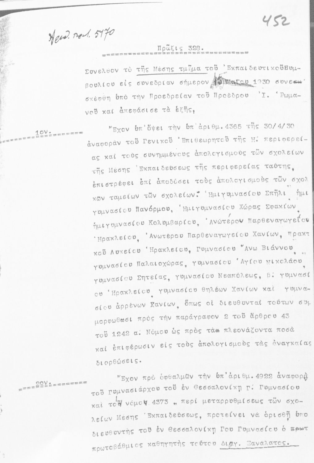 Κωδικός αναγνώρισης: 1930-0004 Τίτλος: ΠΡΑΚΤΙΚΑ ΕΚΠΑΙΔΕΥΤΙΚΟΥ ΣΥΜΒΟΥΛΙΟΥ Μέγεθος και υπόστρωμα: Πρακτικά αεσ, 235 σελίδες. |