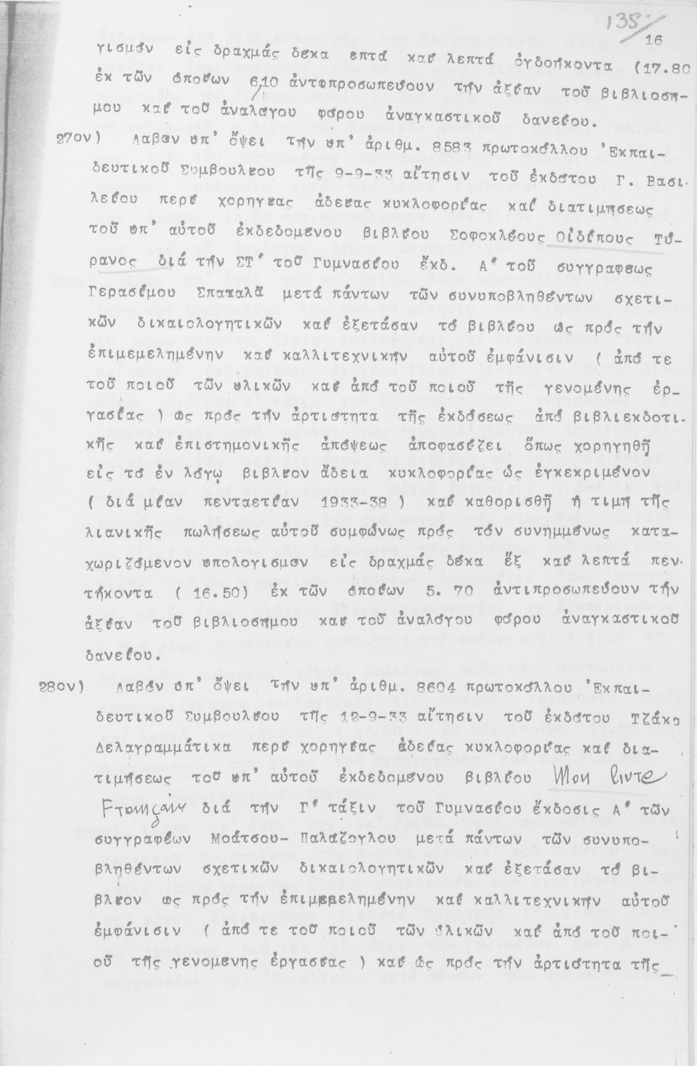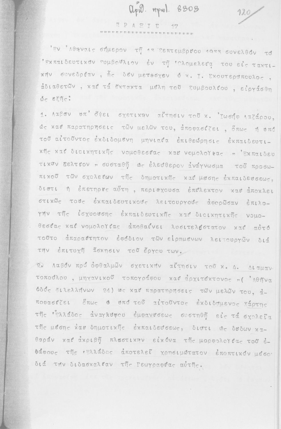 Κωδικός αναγνώρισης: 1933-0008 Τίτλος: ΠΡΑΚΤΙΚΑ ΕΚΠΑΙΔΕΥΤΙΚΟΥ ΣΥΜΒΟΥΛΙΟΥ/ ΠΡΑΚΤΙΚΑ ΟΛΟΜΕΛΕΙΑΣ ΕΚΠΑΙΔΕΥΤΙΚΟΥ ΣΥΜΒΟΥΛΙΟΥ Μέγεθος και υπόστρωμα: Πρακτικά αεσ, 260 σελίδες. |