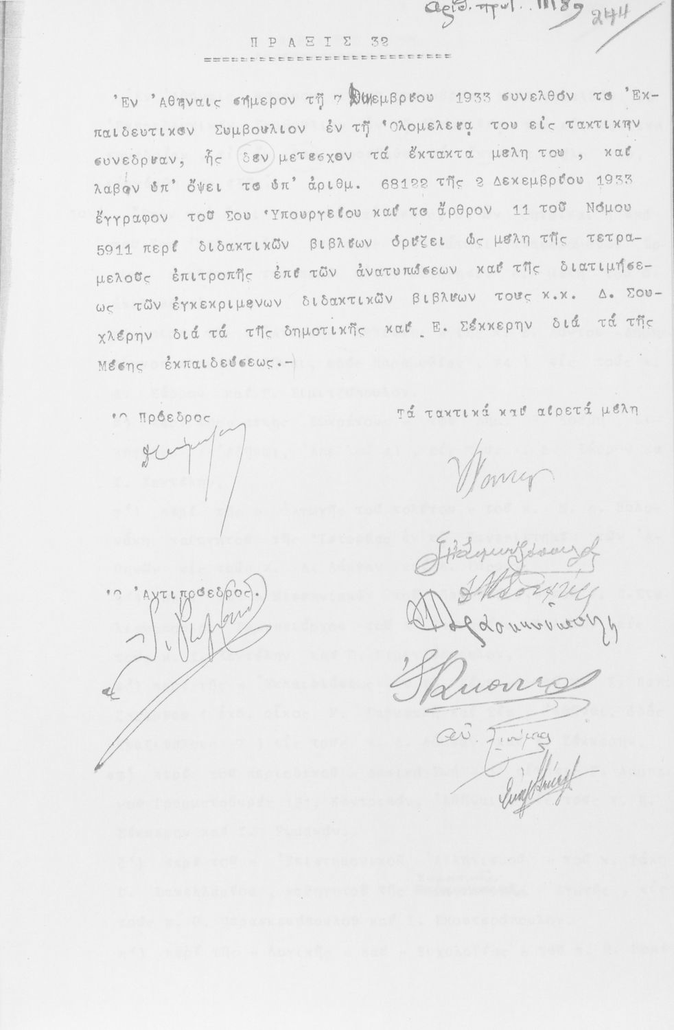 Κωδικός αναγνώρισης: 1933-0008 Τίτλος: ΠΡΑΚΤΙΚΑ ΕΚΠΑΙΔΕΥΤΙΚΟΥ ΣΥΜΒΟΥΛΙΟΥ/ ΠΡΑΚΤΙΚΑ ΟΛΟΜΕΛΕΙΑΣ ΕΚΠΑΙΔΕΥΤΙΚΟΥ ΣΥΜΒΟΥΛΙΟΥ Μέγεθος και υπόστρωμα: Πρακτικά αεσ, 260 σελίδες. |
